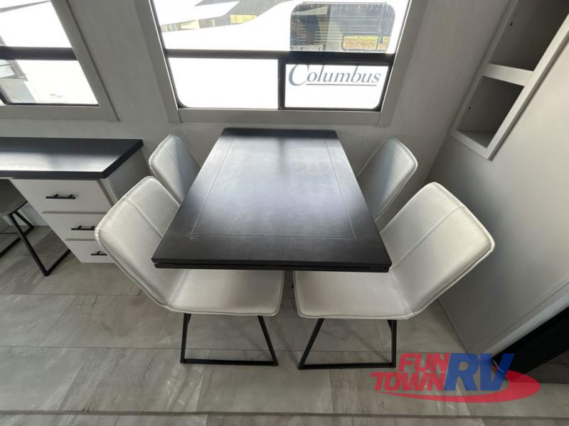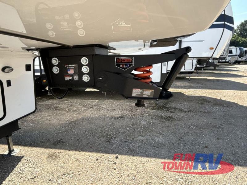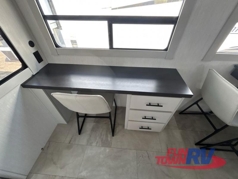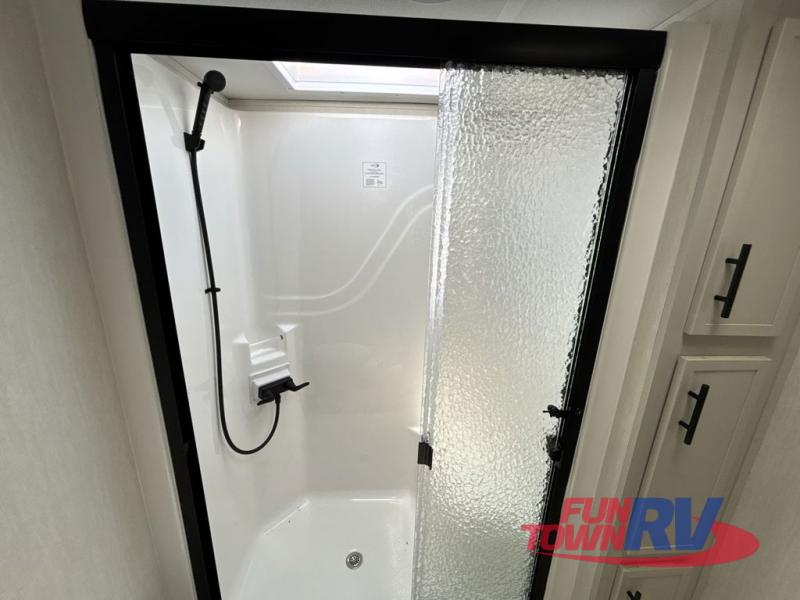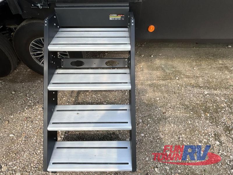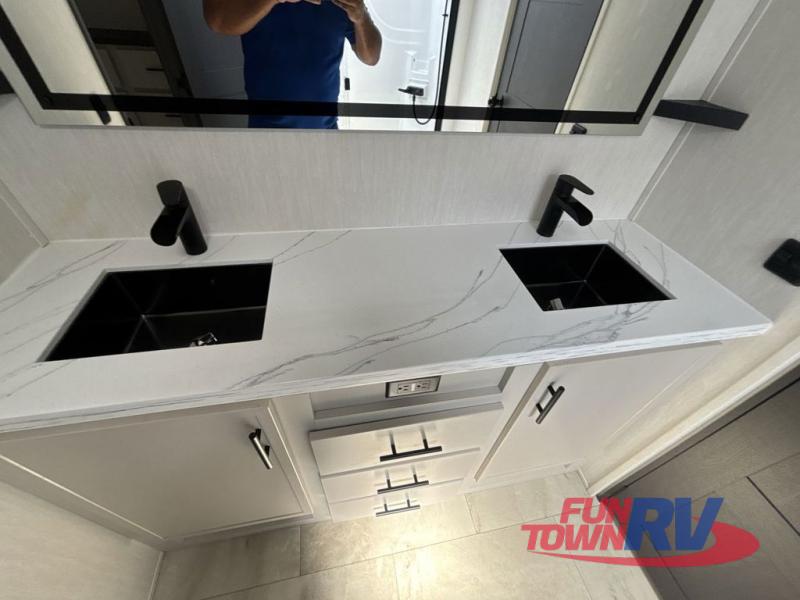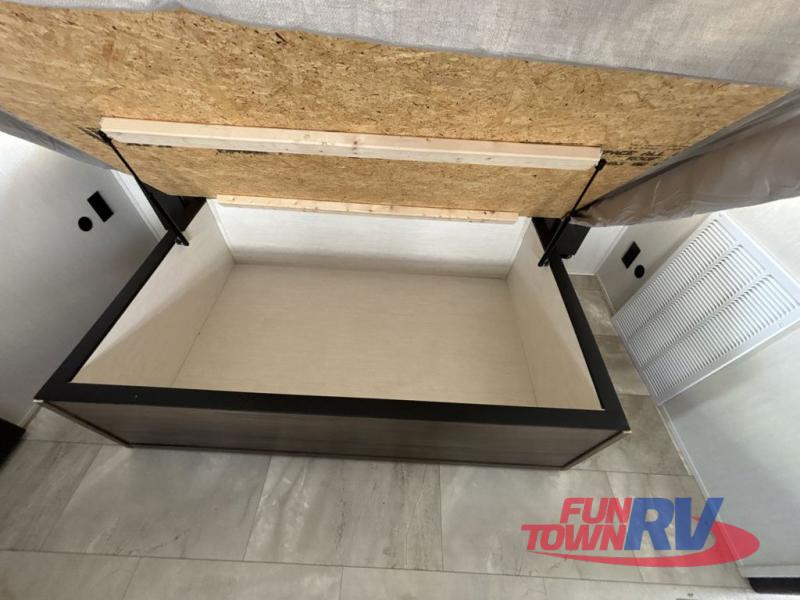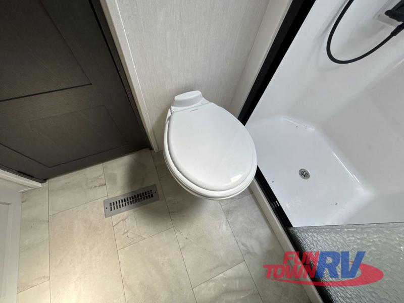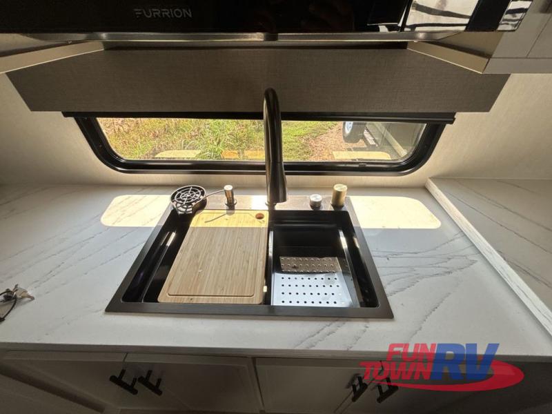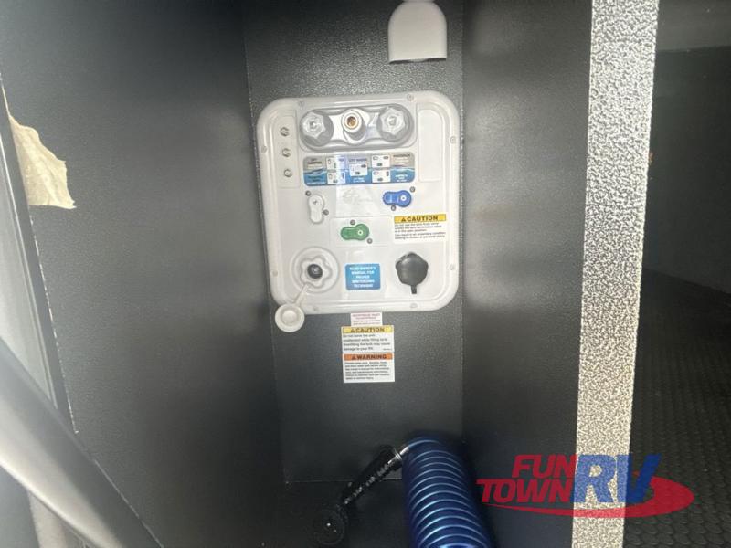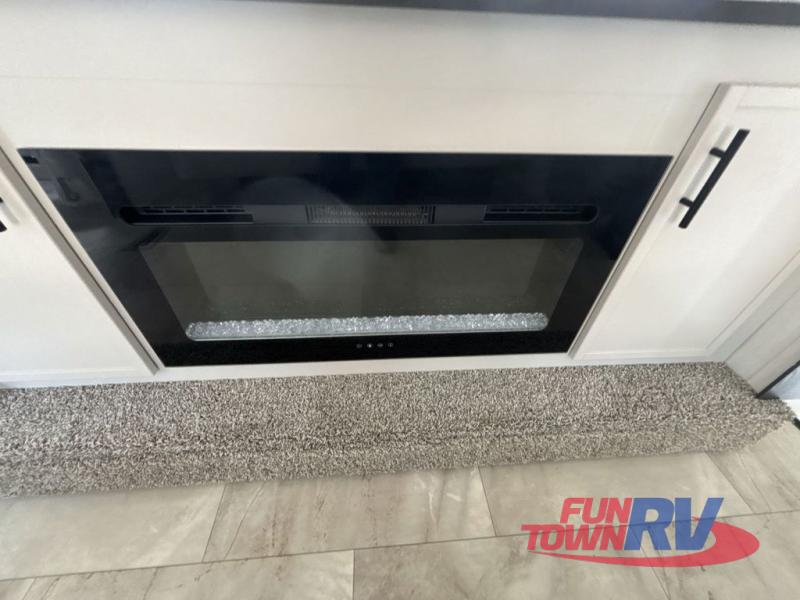 The Sanibel series stands out with a combination of unique and highly functional exterior and interior features designed for both convenience and durability. On the outside, a drop-frame pass-through storage area with a rubberized liner offers ample space while protecting your gear from moisture and wear. Setting up camp is effortless thanks to the one-touch auto-leveling system and rubberized suspension equalizer, which provide a smooth and stable foundation. Inside, comfort meets practicality with carpet less slides for easy cleaning and blackout roller shades for privacy and temperature control. The real wood cabinet doors and solid surface countertops add a touch of elegance, no matter where the road takes you.