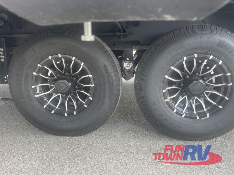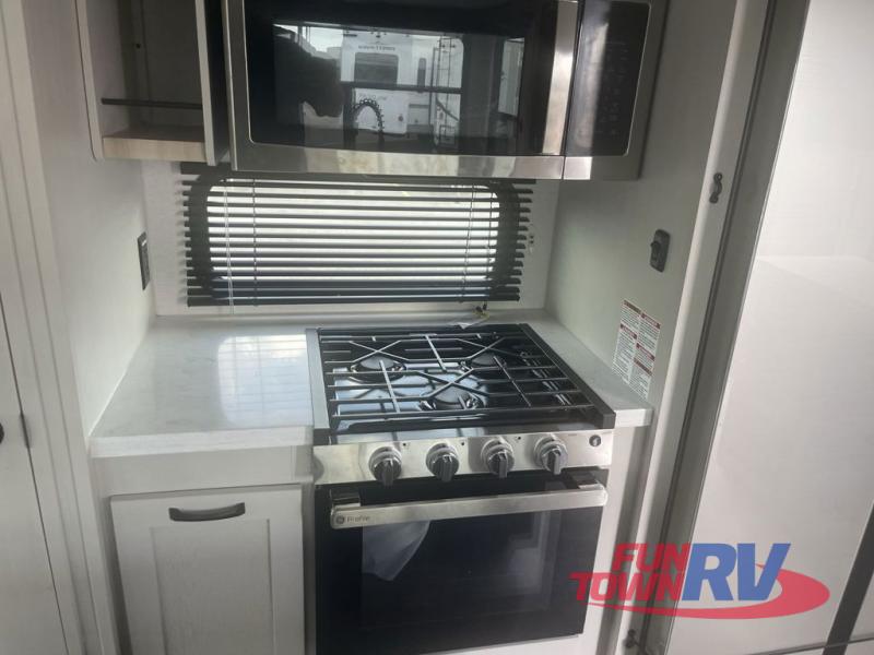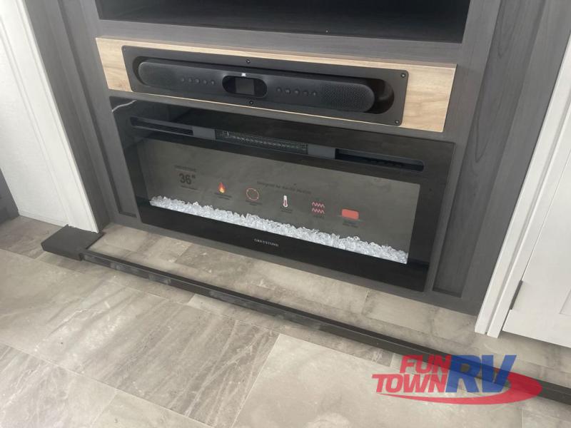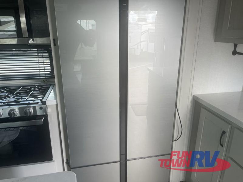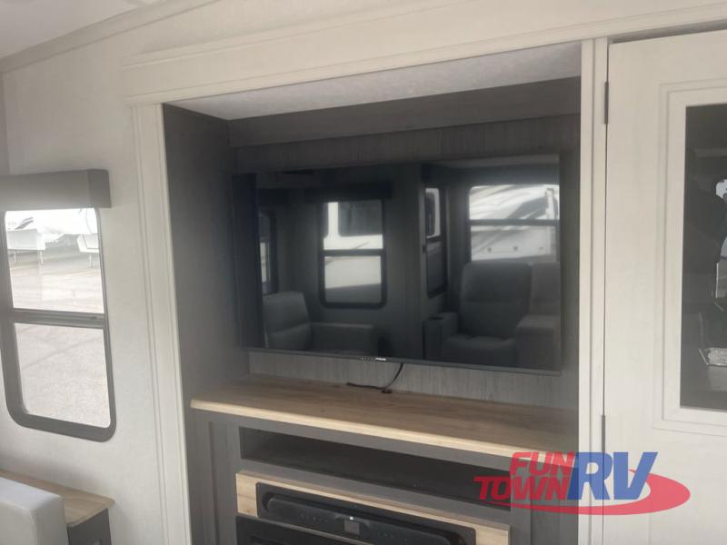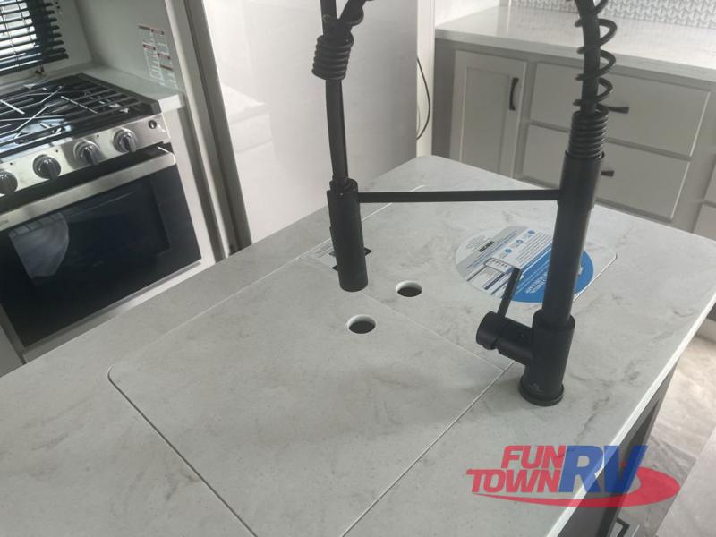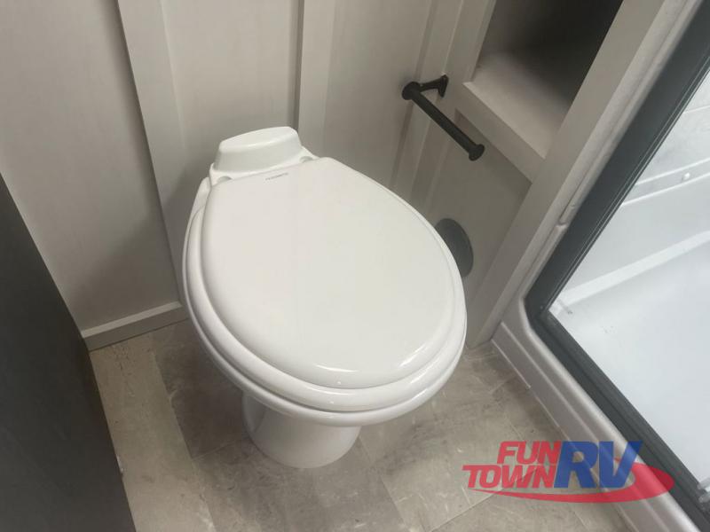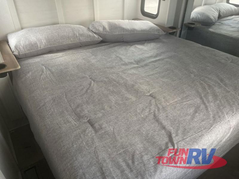 With any Phoenix mid-profile fifth wheel by Shasta RVs, the stand out construction features include residential 5" truss rafters, full walk-on roof decking, vacuum bonded and aluminum framed sidewalls with rot proof AZDEL composite sidewall panels. The Weather Shield+ offers cold and hot testing, 12V thermal tank heaters on all tanks, a sectionalized underbelly and heated gate valves and more so you can camp during any season you wish. The Road Armor Suspension by Trail Air will make towing easier than ever, and the upgraded marine-style convenience center includes a black tank flush plus a hot/cold shower to wash off hiking gear. Head inside to find solid surface countertops and sink covers, an upgraded 50" 4K Smart LED TV in the living room, USB/USB-C charging ports, and an upgraded 60K BTU on-demand water heater to name a few comforts!