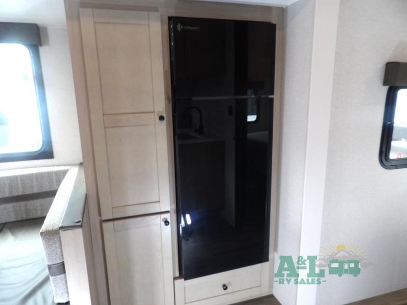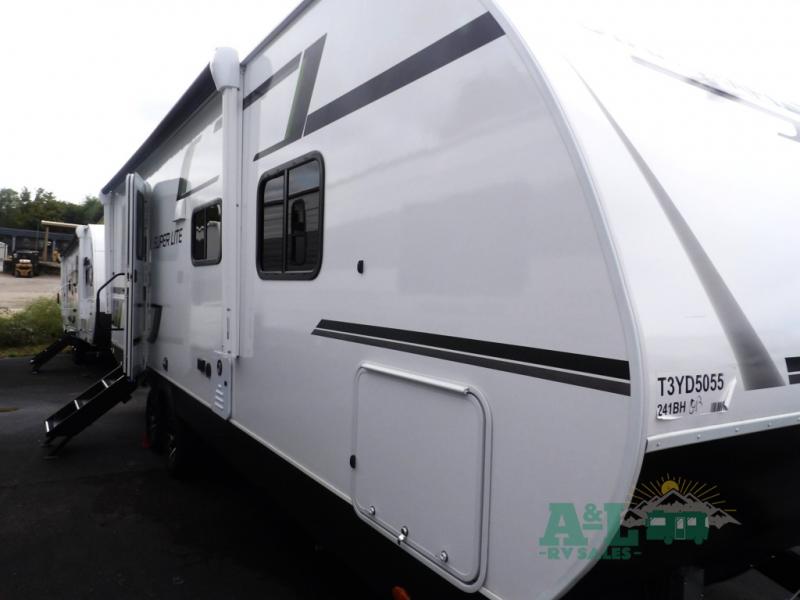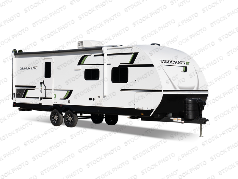With any Starcraft Super Lite travel trailer, the solid and lightweight construction includes a fully walkable roof with a PVC roofing membrane that easily reflects solar heat and UV rays and TuffShell vacuum bonded laminated construction, reinforced with heavy-duty fiberglass and welded aluminum frames. There is also a molded front cap with LED lighting to protect against elements, a power tongue jack for easy towing, plus a power awning with LED lighting. The interior is spacious with an 81" living room ceiling height, hardwood cabinet doors, and flush floor slides with residential vinyl flooring and pressed membrane countertops for easy cleanup. Don't wait for your next adventure, take a Super Lite with you today!