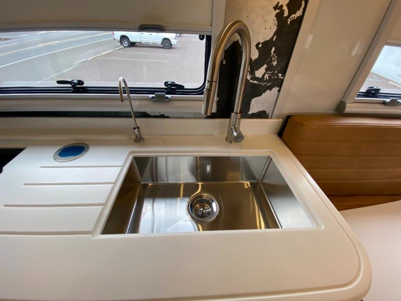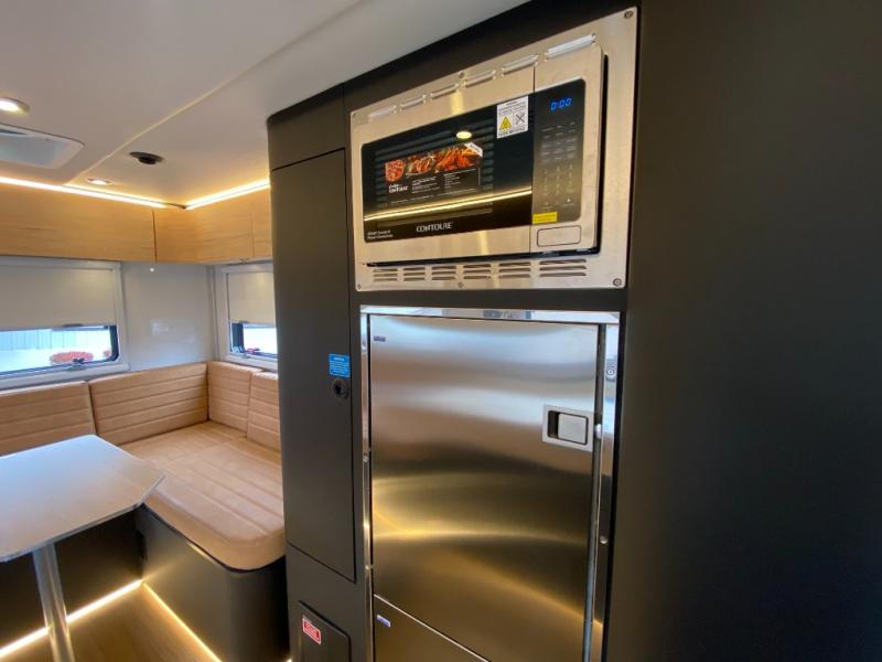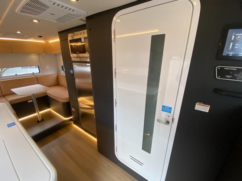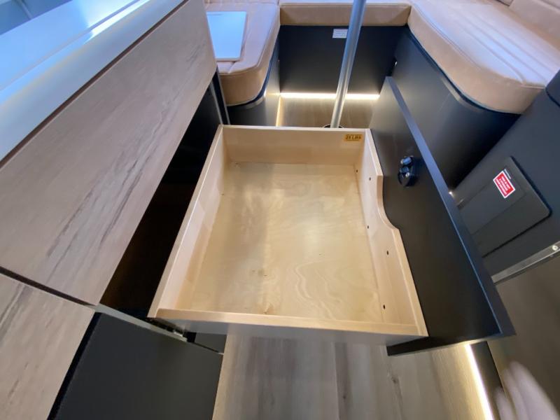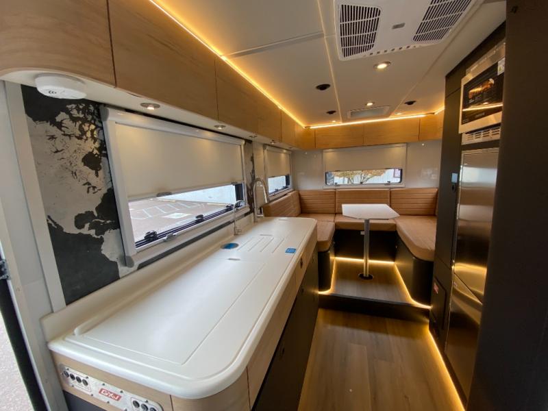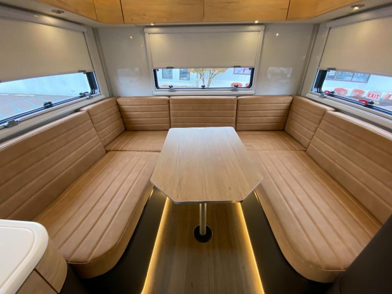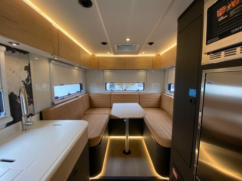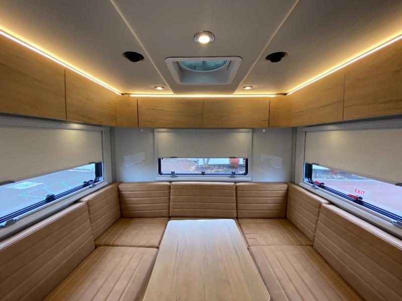 Rugged on the outside, refined on the inside is what you will find with this motorhome truck! Enjoy home cooked meals in the wilderness with the stainless steel convection oven, microwave, air fryer, and 1800 watt dual burner induction cooktop, plus a stainless steel 6.9 cu. ft. fridge/freezer. The U-shaped dinette is great for gathering around together during the day and at night it can transform into an extra sleeping space. Fall asleep under the stars with the loft queen bed which has a window right above it for your viewing pleasure and 3.7 cu. ft. of total bin storage below it. It also has 12V USBs, 110V outlets, and wireless charging stations next to the bed. Freshen up each morning in the spacious wet bathroom with 6' 5" of standing room and120 gallons of fresh water on board!