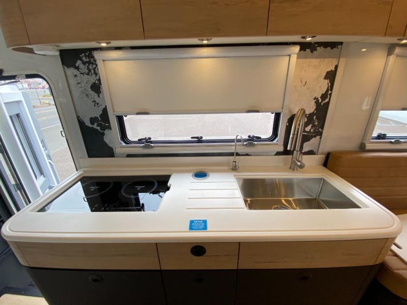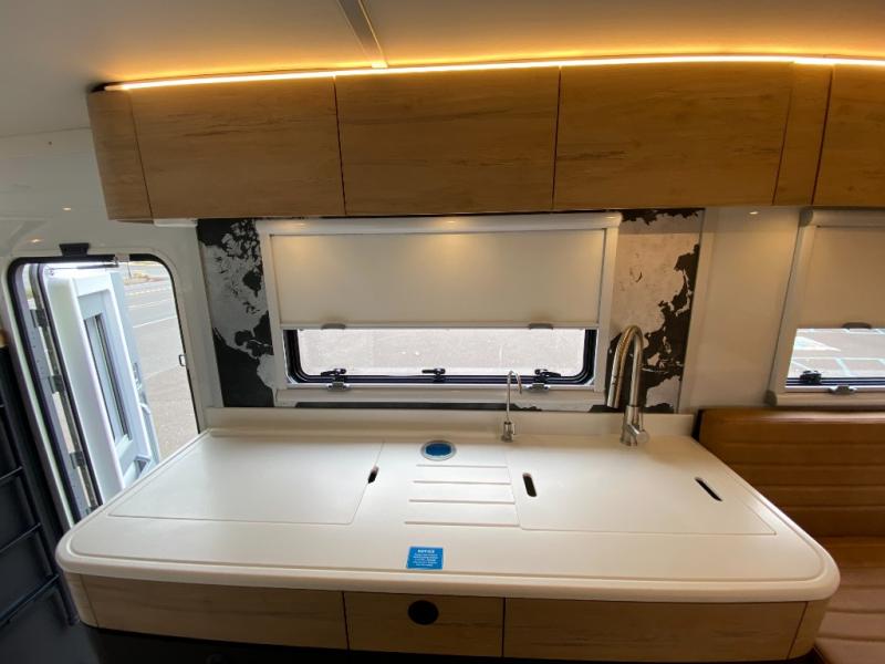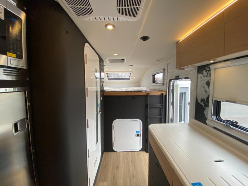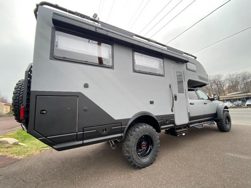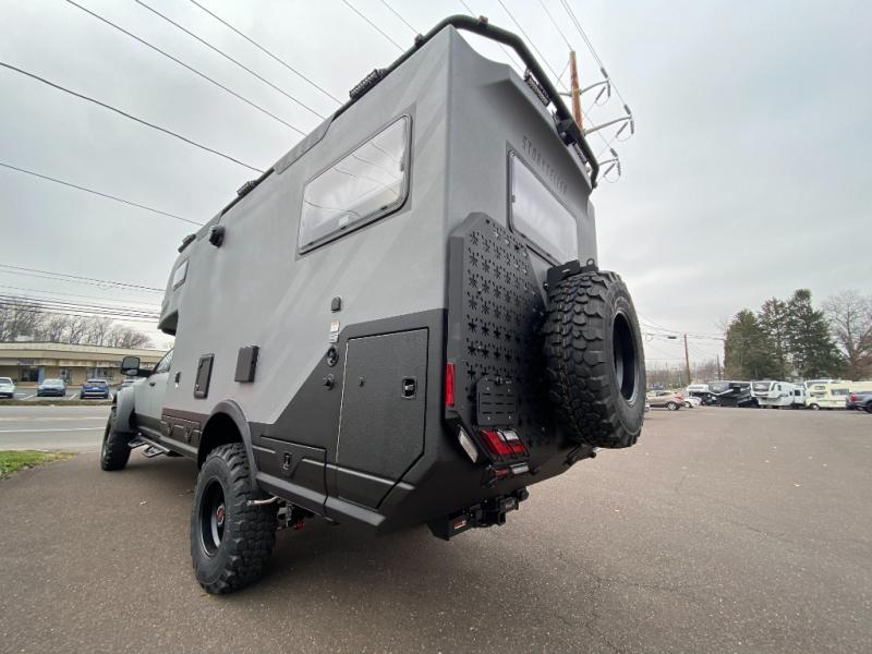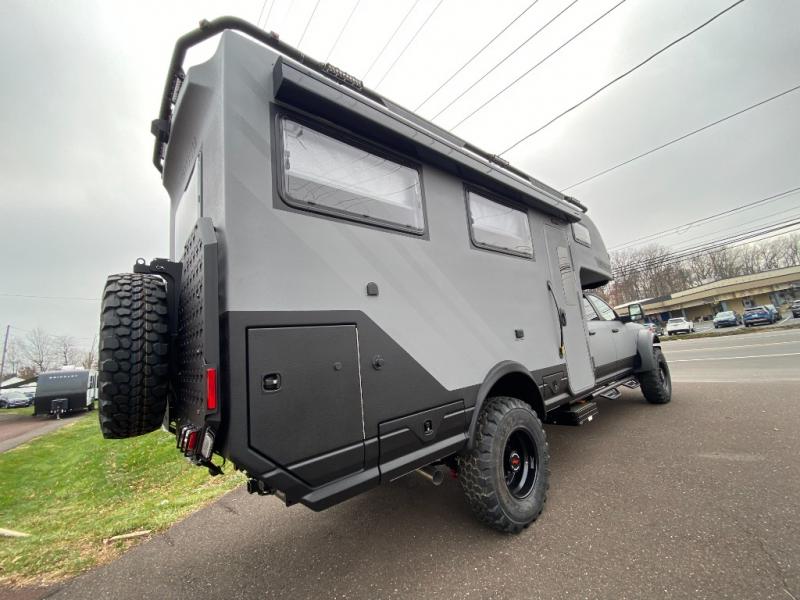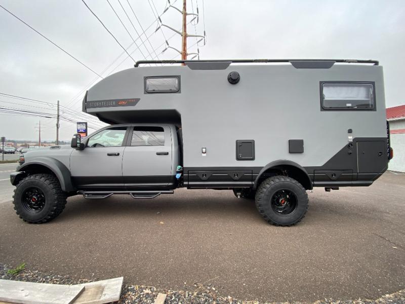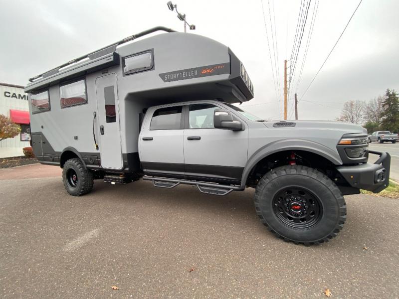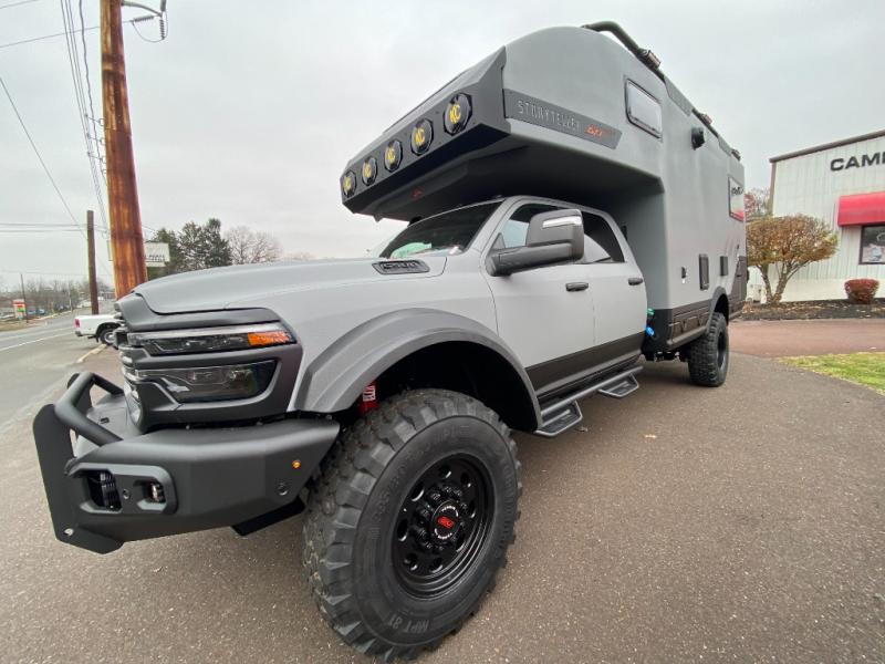 These Storyteller Overland GXV Hilt Class C diesel motorhome trucks are upping the game on quality while also lowering the barrier to entry price! They are highly engineered with a Liquid Springs smart suspension system that optimizes your ride quality and handling characteristics for a peace of mind. The proprietary zero torsion subframe allows independent movement from the Ram 5500 chassis to reduce overall stress and improve off-road traction. Speaking of off-road, you can go off the grid thanks to the 1325W Merlin solar panels on the roof and the Lithionics 16.8 kWh M-power system comes with two 3,000W heavy-duty, high-efficiency inverters to power you to every adventure. Come see all of the other handy features they offer!