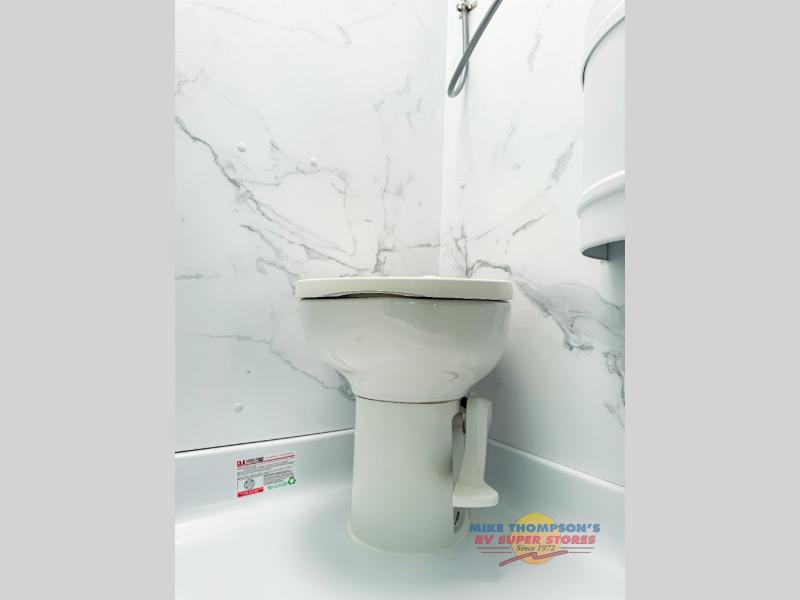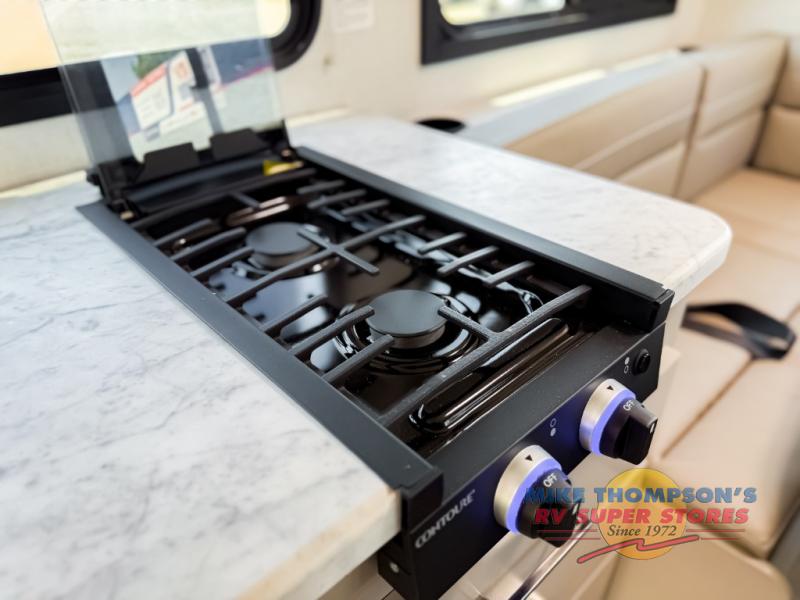 This compact, yet cozy coach is perfect for trips to the campground each weekend! Once you've reached your destination, you can set up the 11' power awning, unload the exterior storage compartments, and relax in your camp chairs. The two burner gas cooktop and convection microwave with an air fryer will let you make meals each day, and there is a 12V refrigerator to keep food fresh. A flip-up counter is another great feature that will give you more prep space! You can freshen up in the wet bath, grab your night clothes from the closet, then convert the U-shaped dinette into a 54" x 77" bed for a great night's rest!