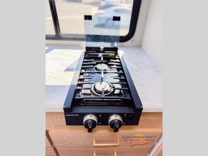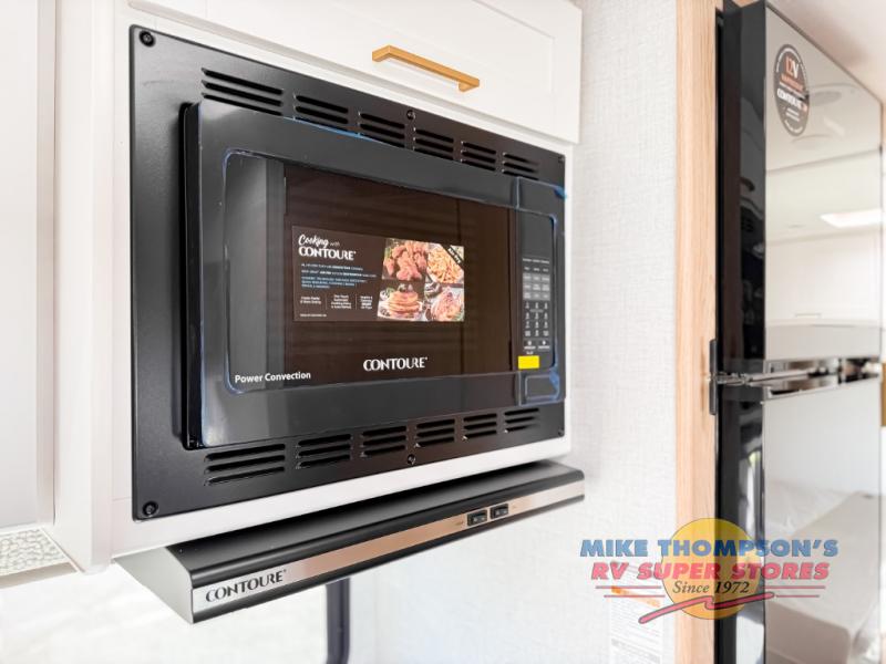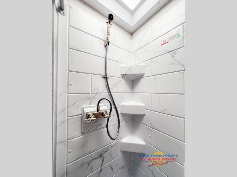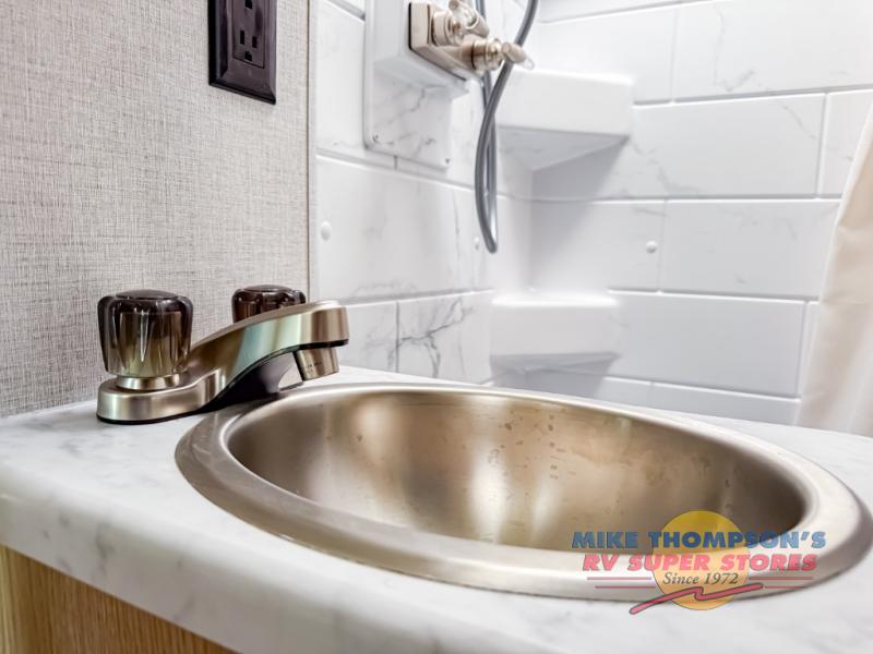 It won't be hard to find comfort in this coach for five! You can freshen up in the mid-coach full bath once you've set up camp, then make lunch on the two burner gas cooktop or convection microwave with an air fryer. There is also a 12V refrigerator for cold items and a flip-up countertop for more space. Whether you dine at the Dream Dinette slide out or take your plate outdoors under the 17' 6" power awning, you're sure to have a great time in this motorhome. The semi-private rear bedroom includes a privacy curtain, two twin beds with a king-size bed conversion, plus TV prep if you want the option to watch shows in bed. And any guests you may have can sleep on the dinette and 52" x 96" cab-over sleeping space!