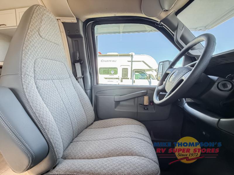 With any Chateau ESpec Class C gas motorhome by Thor Motor Coach, you will find convenient amenities, a modern interior, and a reliable Ford E-Series chassis, with an optional Chevy chassis on select models to power your adventures. There is welded tubular aluminum roof and sidewall cage construction, a one-piece fiberglass front cap, and a premium one-piece domed roof membrane for added strength. Residential vinyl flooring will be easy to keep clean, and you'll love the sleek look of the Hampton Collection two-toned cabinets. These motorhomes also include a 50 State 4.0 kW dual gas/LP generator and a 30-amp shoreline power cord to keep you going, along with a tankless water heater and 13,500 roof front A/C to ensure your comfort!