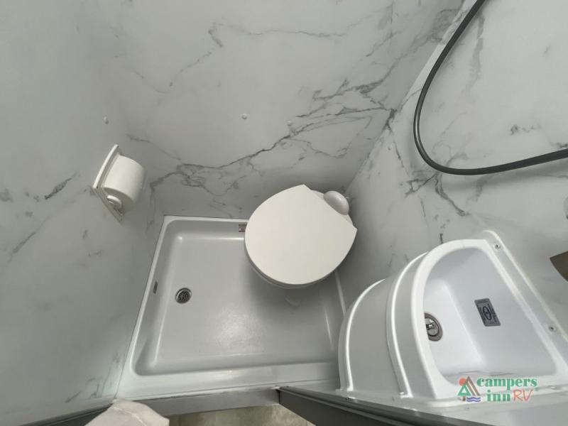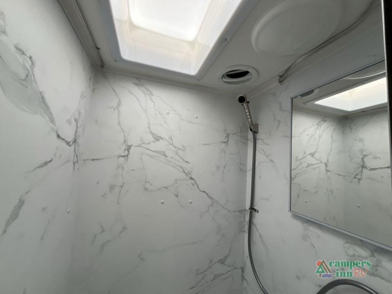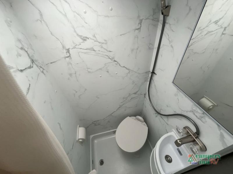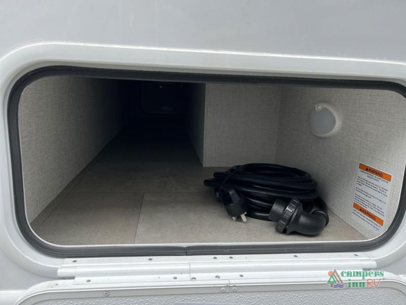 This compact, yet cozy coach is perfect for trips to the campground each weekend! Once you've reached your destination, you can set up the 11' power awning, unload the exterior storage compartments, and relax in your camp chairs. The two burner gas cooktop and convection microwave with an air fryer will let you make meals each day, and there is a 12V refrigerator to keep food fresh. A flip-up counter is another great feature that will give you more prep space! You can freshen up in the wet bath, grab your night clothes from the closet, then convert the U-shaped dinette into a 54" x 77" bed for a great night's rest!