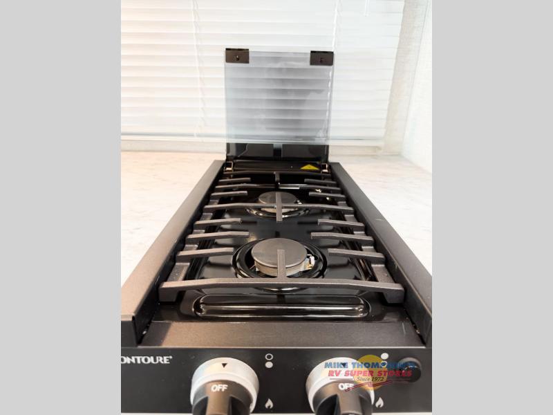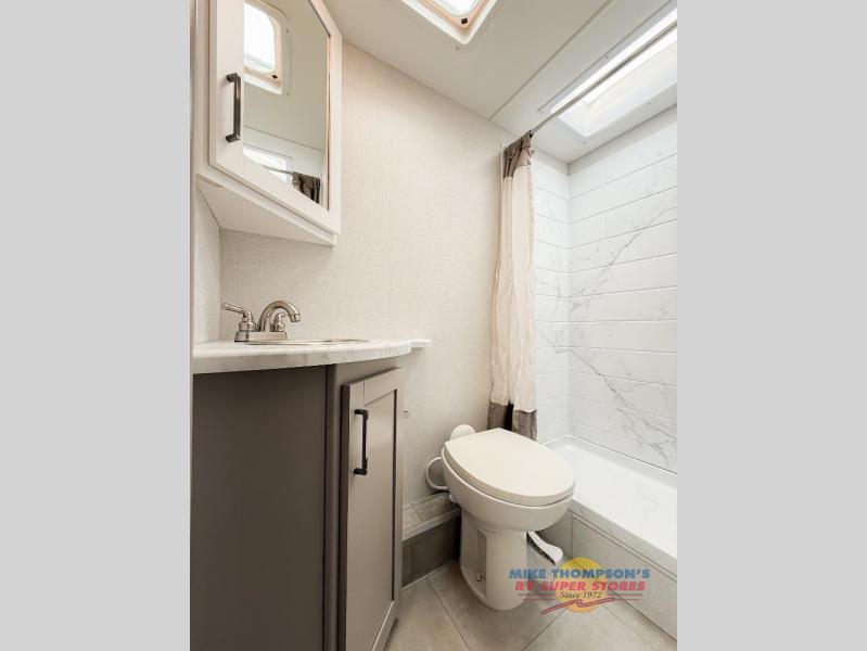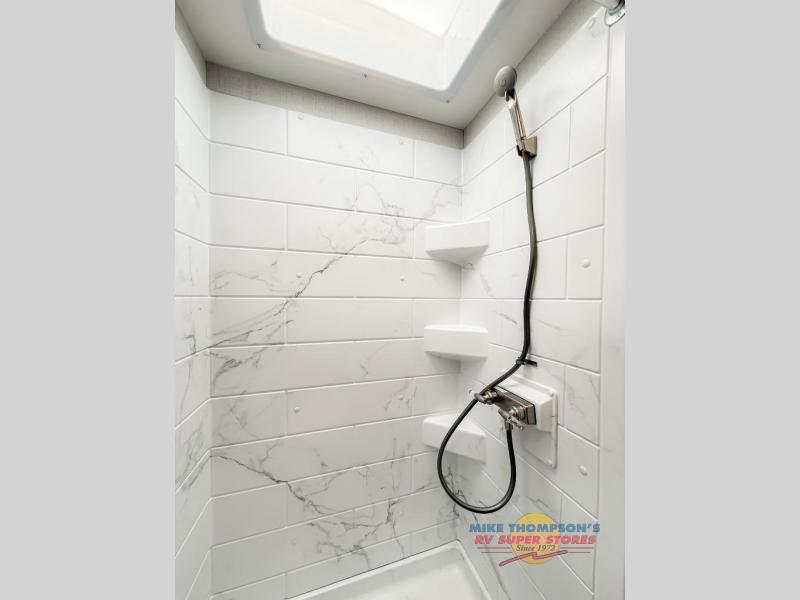 It won't be hard to find comfort in this coach for five! You can freshen up in the rear corner full bath once you've set up camp, then make lunch on the two burner gas cooktop or convection microwave with an air fryer. There is also a 12V refrigerator for cold items and a flip-up countertop for more space. Whether you dine at the Dream Dinette or take your plate outdoors under the 15' power awning, you're sure to have a great time in this motorhome. There is a semi-private bedroom with a 60" x 74" RV queen bed slide and bedroom TV prep if you want the option to watch movies in bed. And your guests can take the Dream Dinette and cab-over bunk at night!