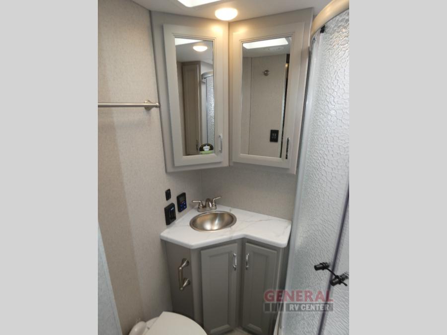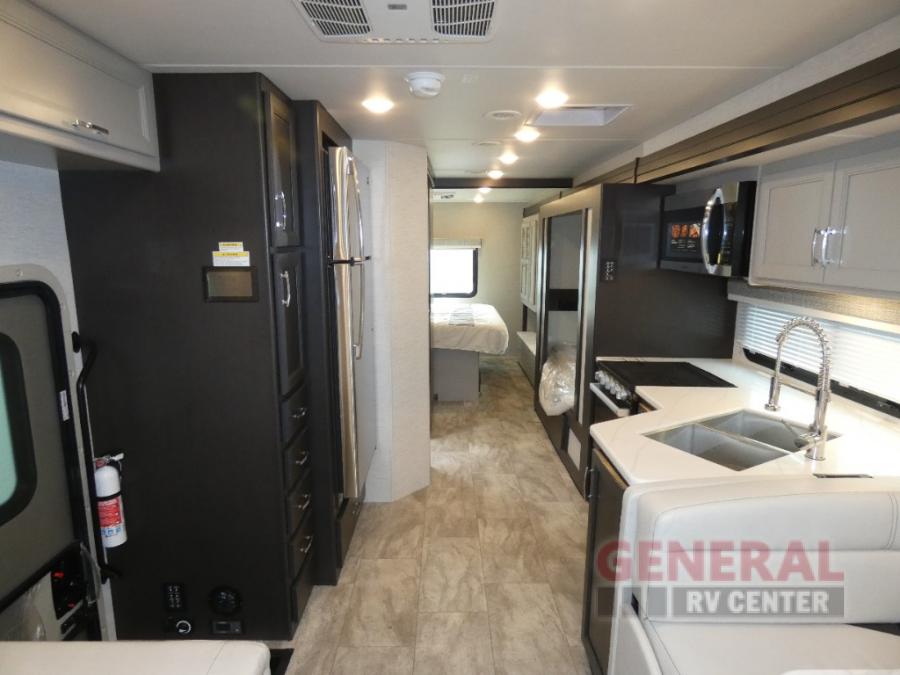 The Magnitude GRAND Super C diesel motorhomes by Thor Motor Coach are built to last, featuring Vacu-bond laminated roofs and floors with block foam insulation for unparalleled durability and climate control which ensures a comfortable and quiet living space. Stay connected and entertained on the go with the innovative sync-enhanced voice recognition communication and entertainment system. With just the sound of your voice, you can control everything from navigation to music playlists. Setting up camp has never been easier, thanks to our automatic leveling jacks with a touchpad, simply press a button and let the system do the work for you. Inside, you'll enjoy incredible interior features like a spacious 84” interior ceiling height, perfect for comfortable living, solid countertops, designer headboard, bedspread, and pillow shams. Plus you can beat the heat with the dual 13,500 BTU roof air conditioners, providing superior cooling power to keep you comfortable in even the warmest climates. Explore our motorhome collection today and discover a new standard of luxury and adventure.