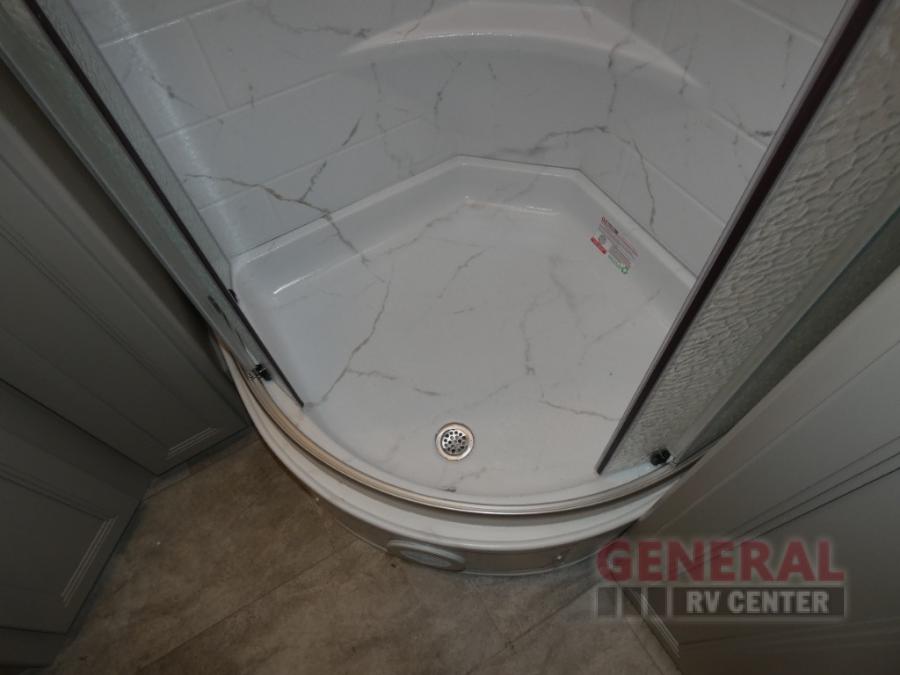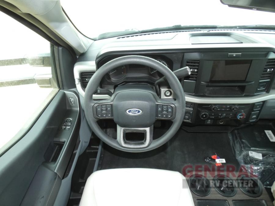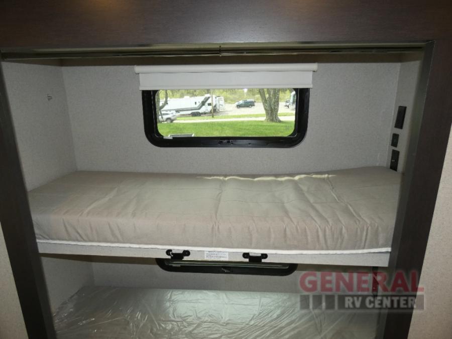The rear bedroom is a peaceful oasis, featuring a plush king bed, a spacious closet with a washer and dryer prep, a dresser, and a 32” Smart TV. You can accommodate the whole family with 26” x 72” bunk beds which also convert to a closet, in front, you will find a full bathroom with linen closet which ensures everyone stays fresh on the go. The kitchen is a gourmet's delight, boasting a residential refrigerator, a pantry perfect for keeping your stuff organized, a three-burner cooktop, microwave, and a 70” dream dinette ideal for grabbing meals with family and friends. Relax in the 68” theater seating area, while watching a movie in the 40” Smart TV. Additional sleeping space is available in the front bunk over the cab, plus you can spend entertaining yourself on the outside thanks to the 32” Smart TV on the exterior.