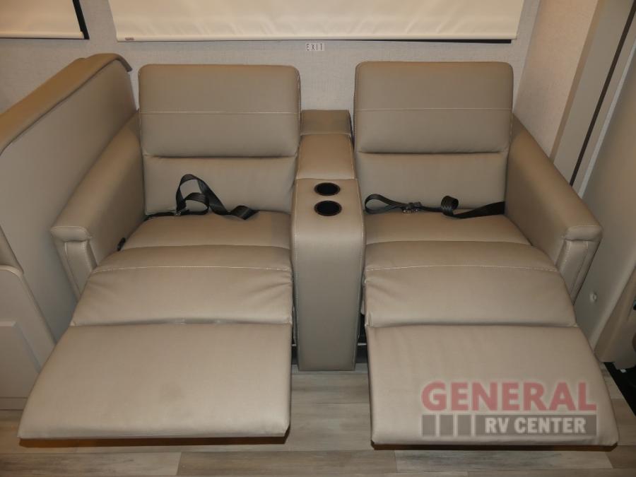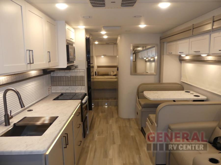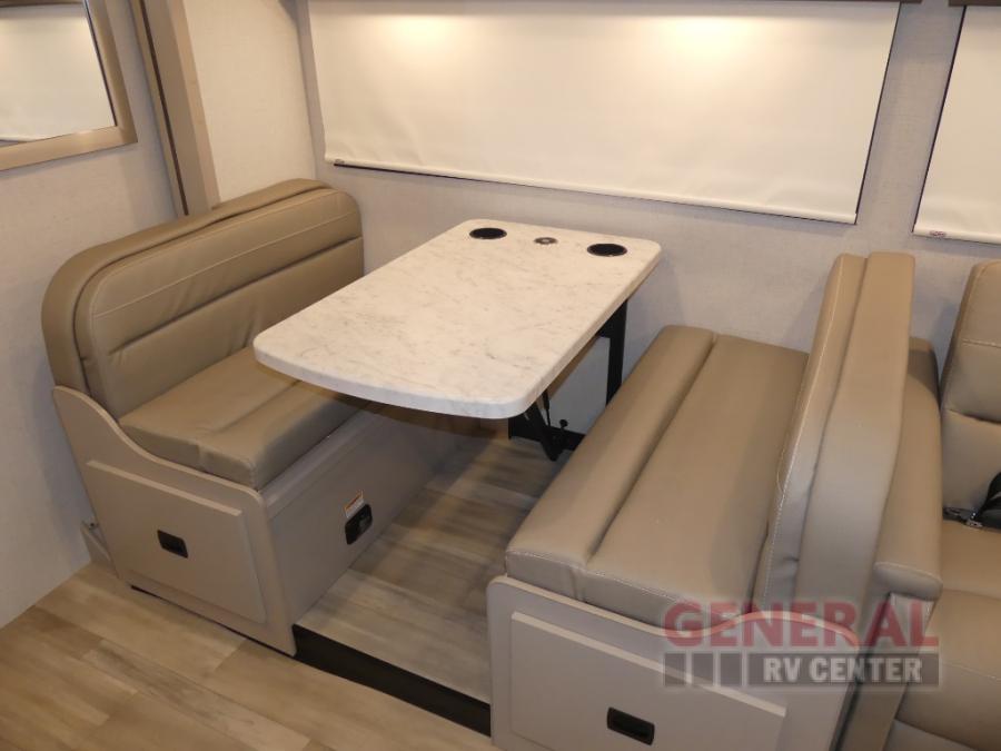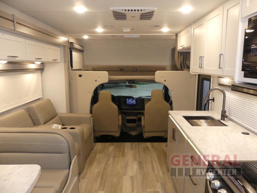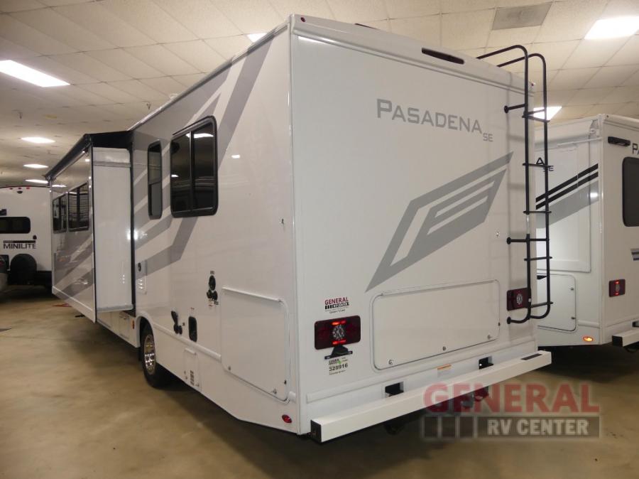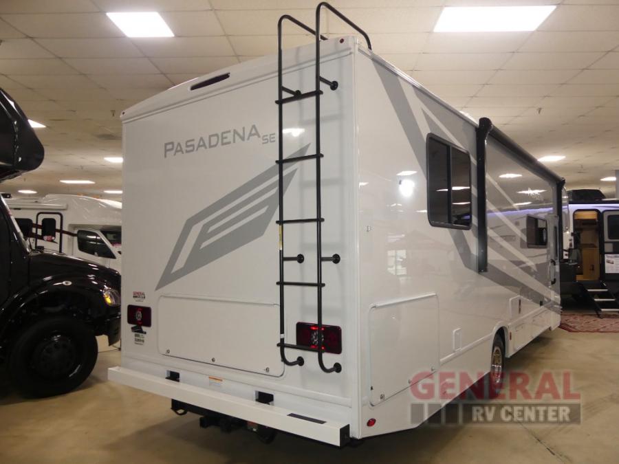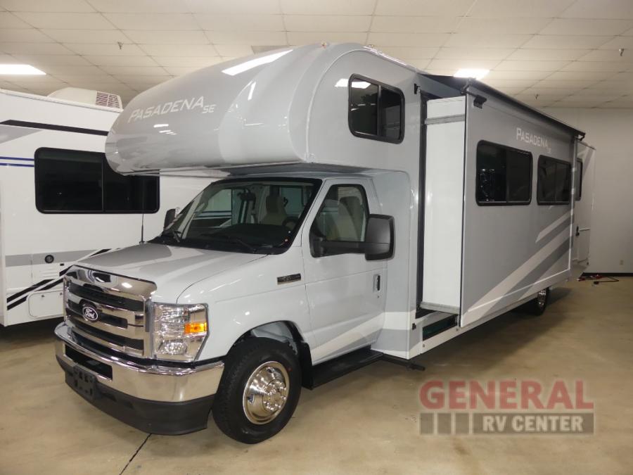 With any Pasadena SE Class C gas motorhome by Thor Motor Coach, you will find convenient amenities, a modern interior, and a reliable Ford E-Series chassis on select models to power your adventures. There is a one-piece fiberglass front cap, and premium one-piece roofing for added strength. Residential vinyl flooring will be easy to keep clean, and you'll love the LED lighting, pressed laminate countertops throughout, and full-extensions ball-bearing drawer guides. These motorhomes also include a generator and a 30-amp shoreline power cord to keep you going, along with a tankless water heater to ensure your comfort!