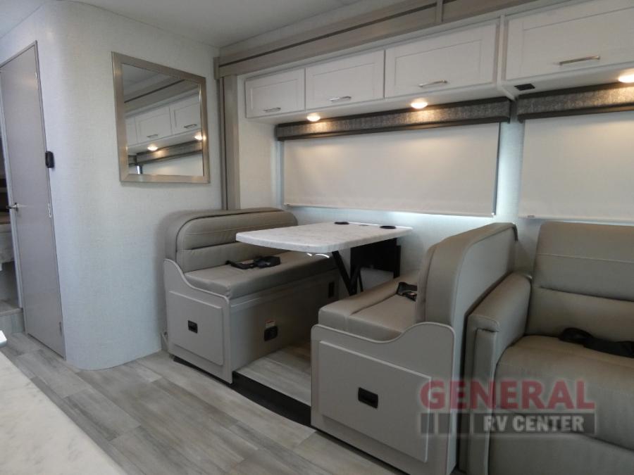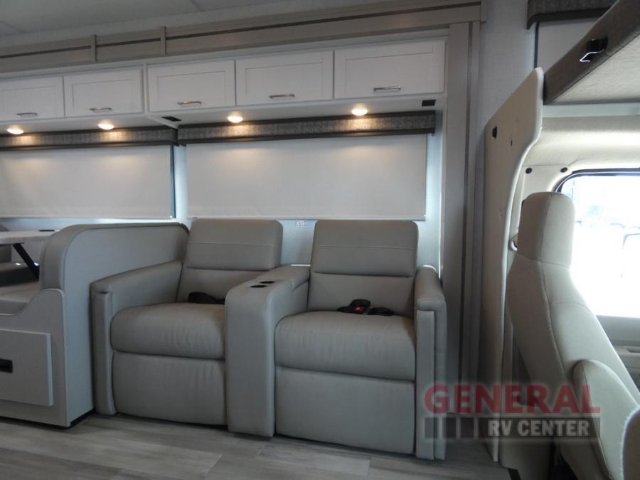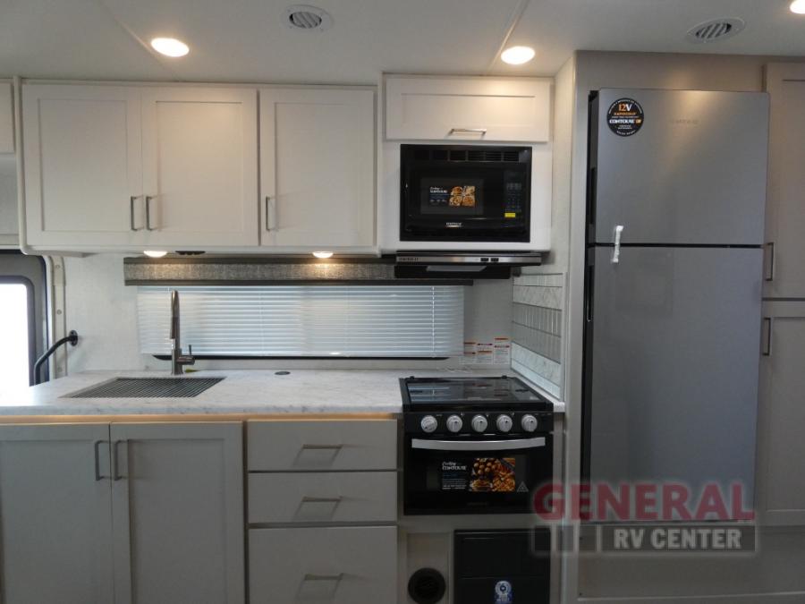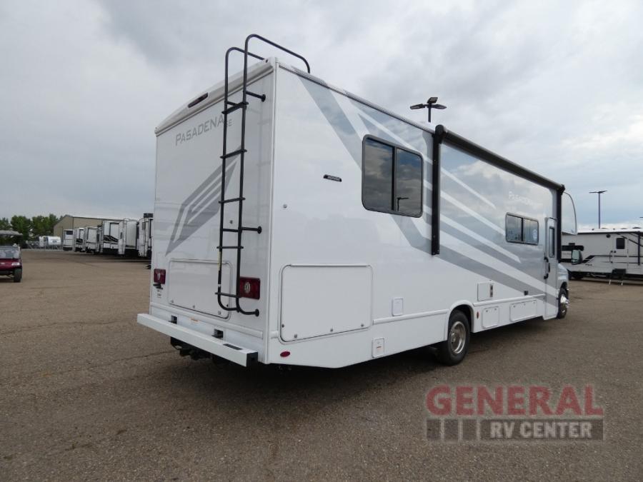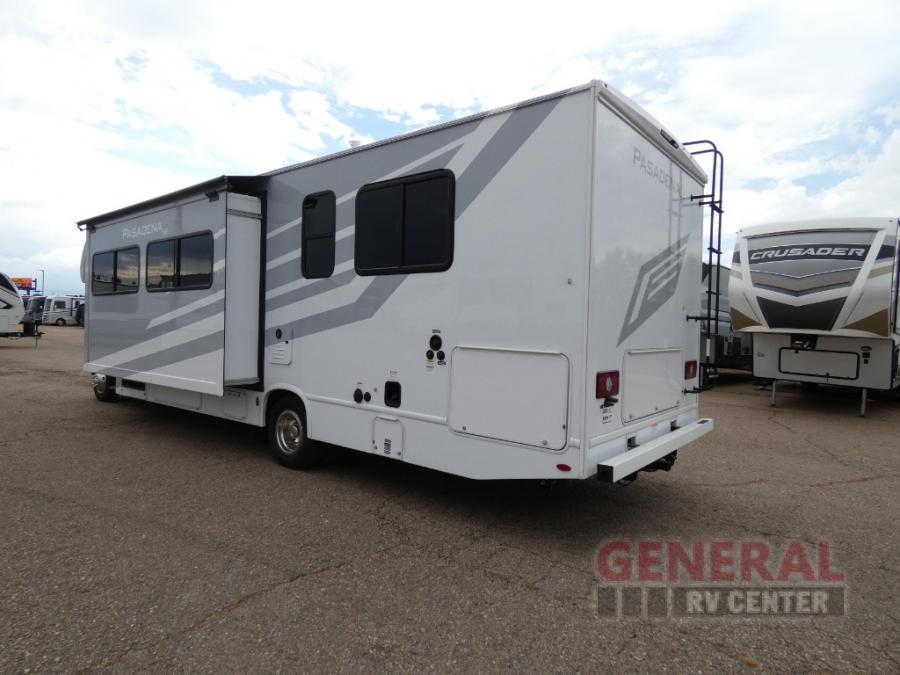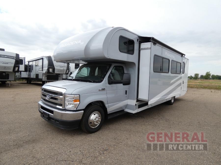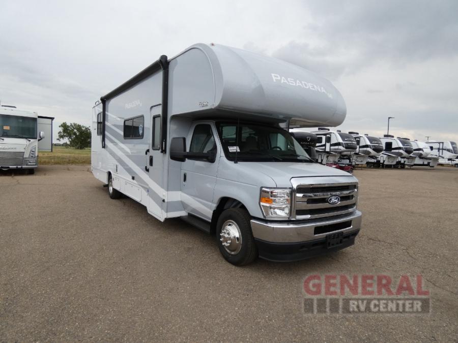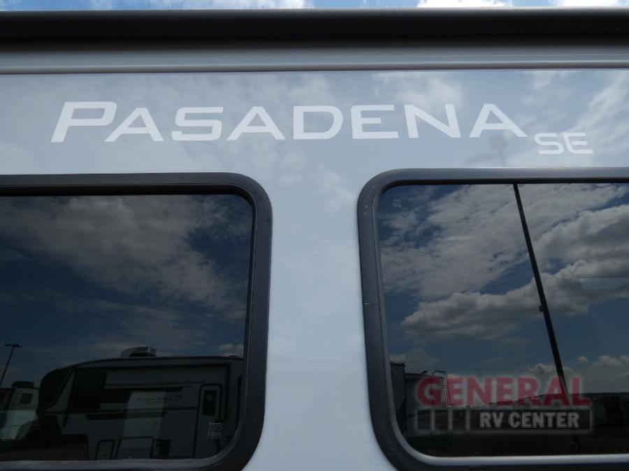 With any Pasadena SE Class C gas motorhome by Thor Motor Coach, you will find convenient amenities, a modern interior, and a reliable Ford E-Series chassis on select models to power your adventures. There is a one-piece fiberglass front cap, and premium one-piece roofing for added strength. Residential vinyl flooring will be easy to keep clean, and you'll love the LED lighting, pressed laminate countertops throughout, and full-extensions ball-bearing drawer guides. These motorhomes also include a generator and a 30-amp shoreline power cord to keep you going, along with a tankless water heater to ensure your comfort!
