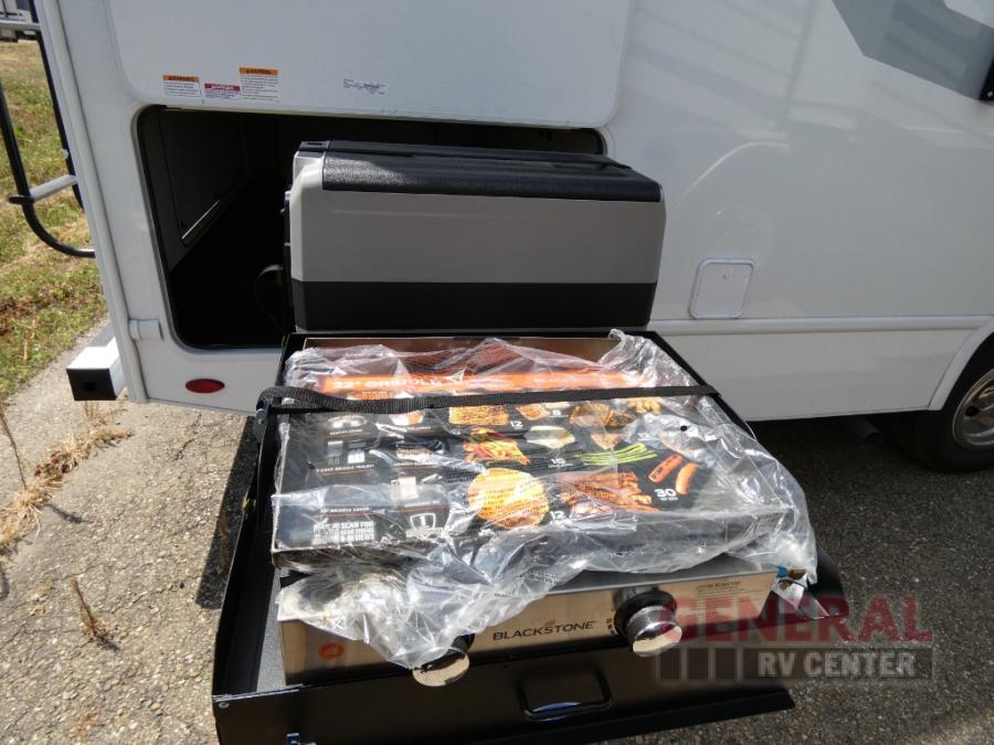 You're sure to have a great time in this coach that can sleep six each night! The rear bedroom includes an RV queen bed and dual closets to keep your things organized, plus the bath is close by for easy nighttime use. Here, you'll find a private toilet and sink, with the independent shower right across the hall. Your guests can sleep on the 68" jack knife sofa and 70" dream dinette within the large slide out, or the cab-over bunk up front! A three burner gas cooktop and microwave oven will let you make meals for your crew, and a 12V refrigerator will keep perishables fresh. This unit also includes an exterior kitchen, allowing you to cook in the open fresh air!