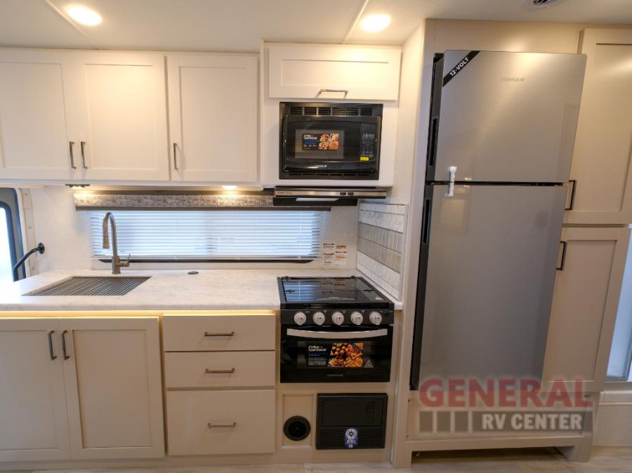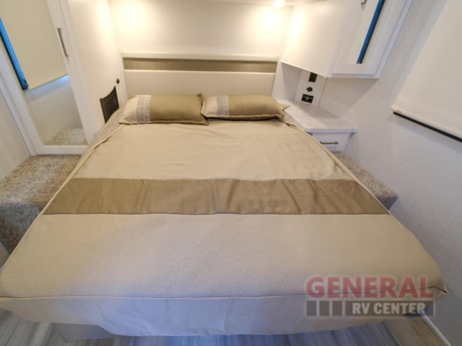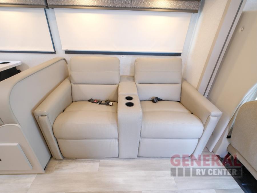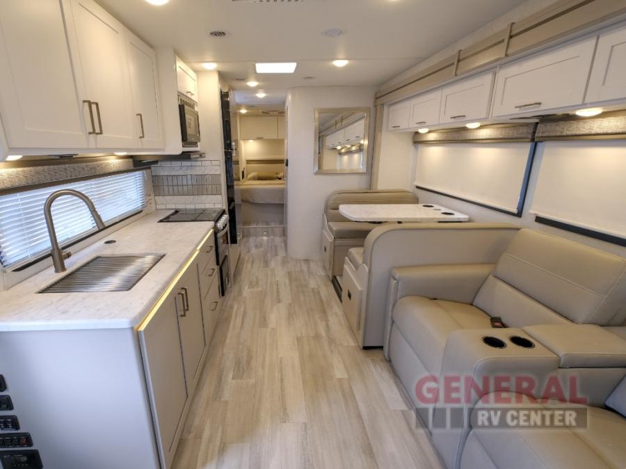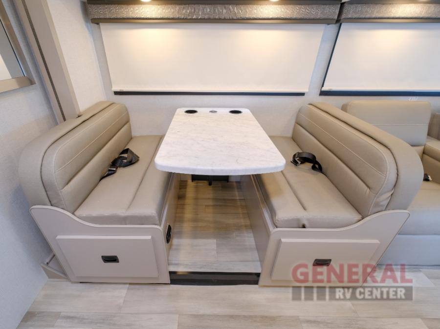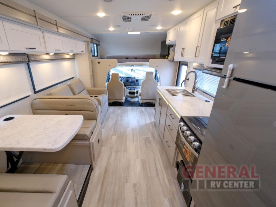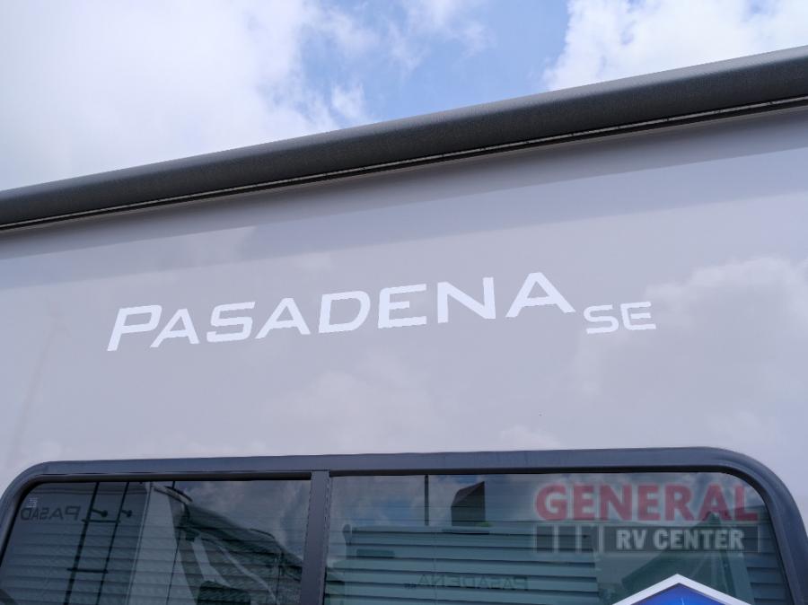 With any Pasadena SE Class C gas motorhome by Thor Motor Coach, you will find convenient amenities, a modern interior, and a reliable Ford E-Series chassis on select models to power your adventures. There is a one-piece fiberglass front cap, and premium one-piece roofing for added strength. Residential vinyl flooring will be easy to keep clean, and you'll love the LED lighting, pressed laminate countertops throughout, and full-extensions ball-bearing drawer guides. These motorhomes also include a generator and a 30-amp shoreline power cord to keep you going, along with a tankless water heater to ensure your comfort!