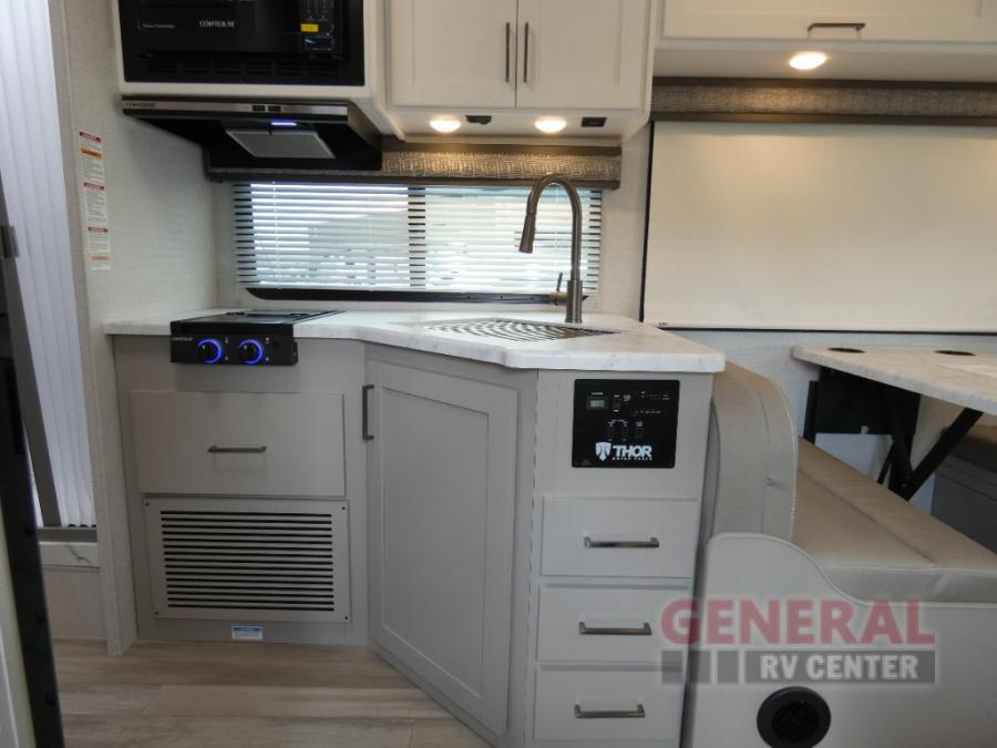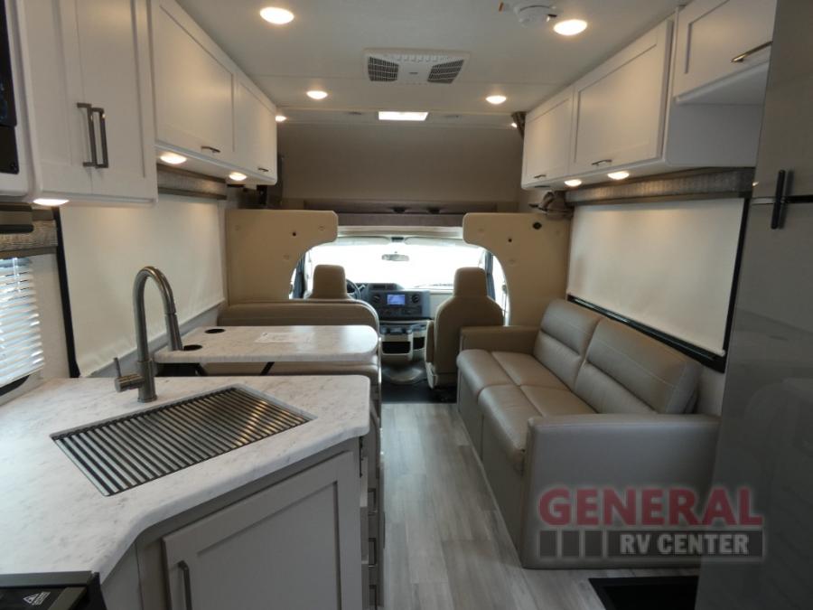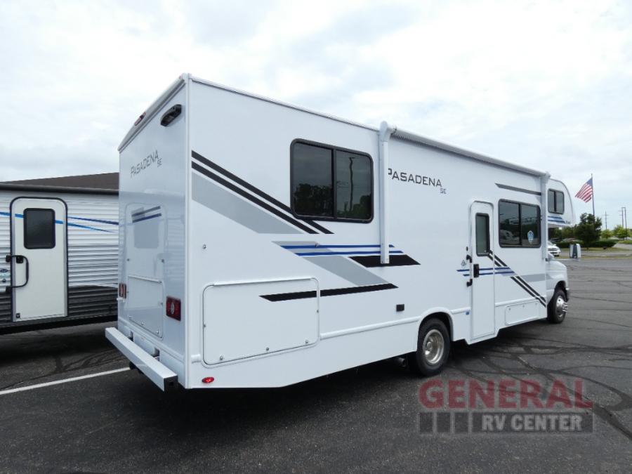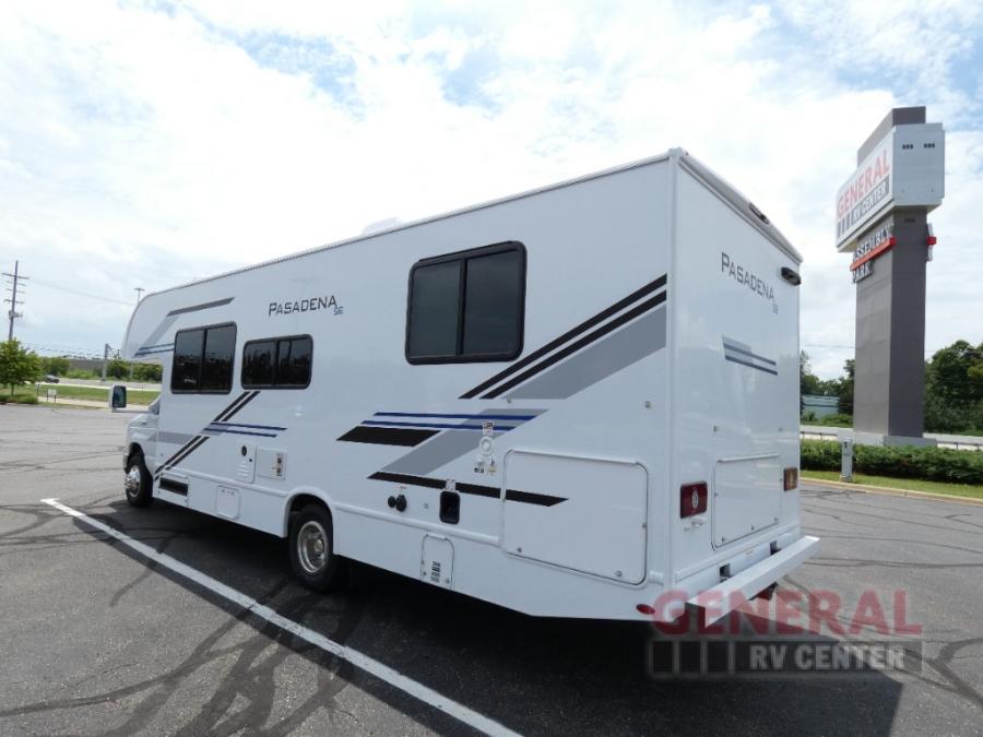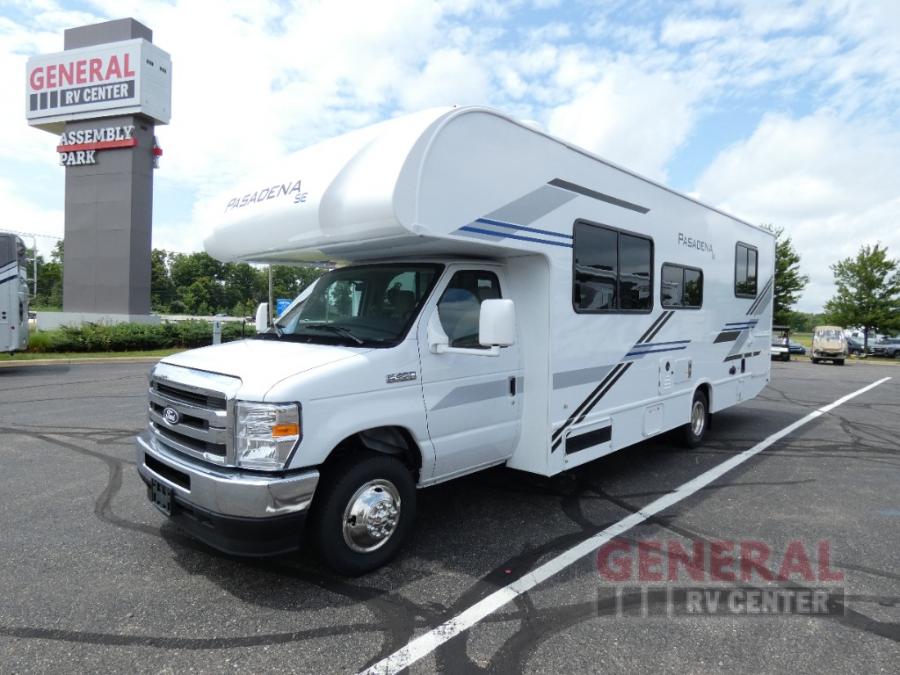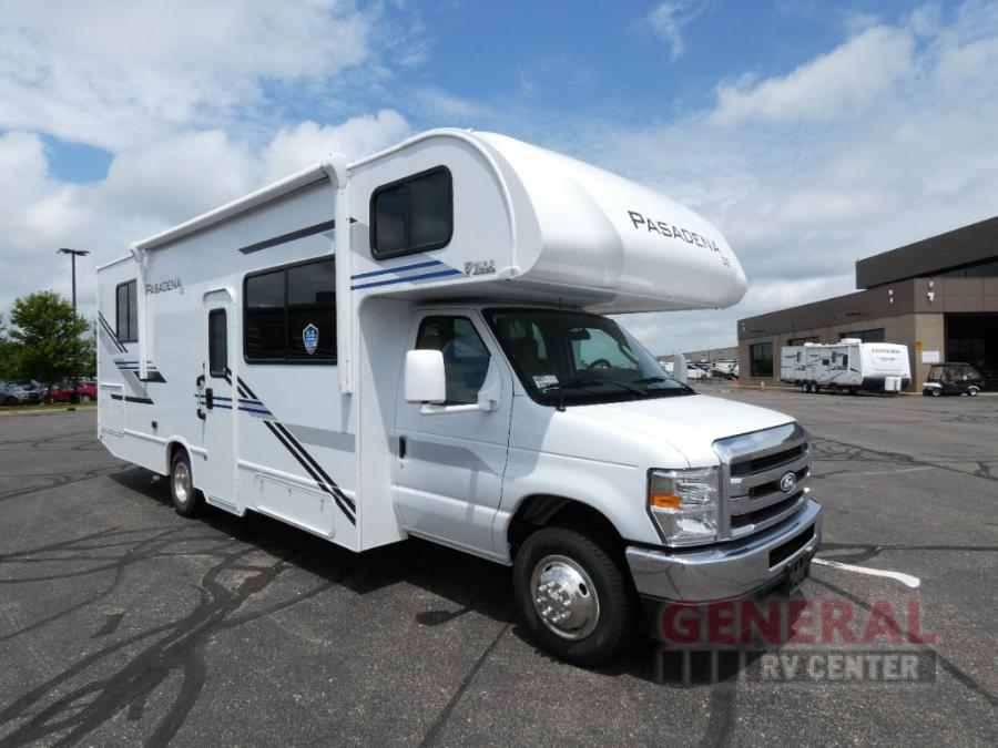 With any Pasadena SE Class C gas motorhome by Thor Motor Coach, you will find convenient amenities, a modern interior, and a reliable Ford E-Series chassis to power your adventures. There is a one-piece fiberglass front cap, and premium one-piece roofing for added strength. Residential vinyl flooring will be easy to keep clean, and you'll love the LED lighting, pressed laminate countertops throughout, and full-extensions ball-bearing drawer guides. These motorhomes also include a generator and a 30-amp shoreline power cord to keep you going, along with a tankless water heater to ensure your comfort!