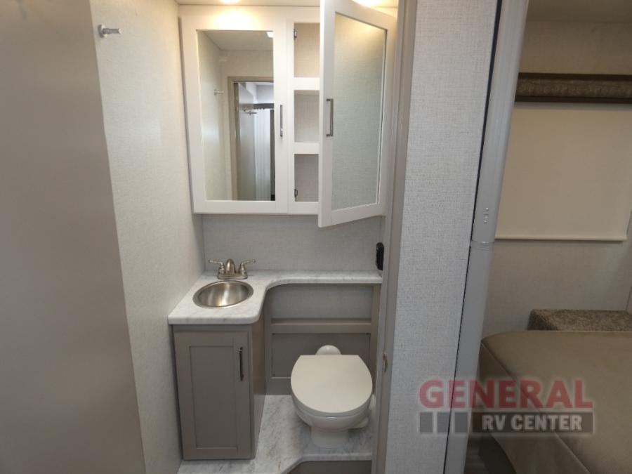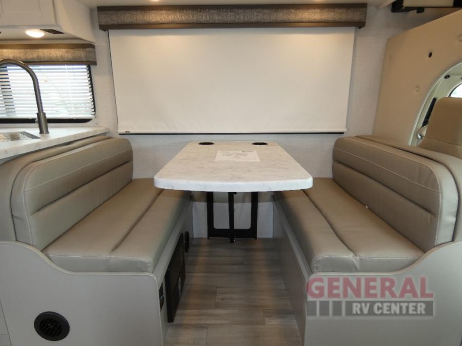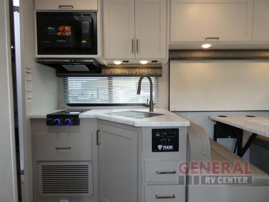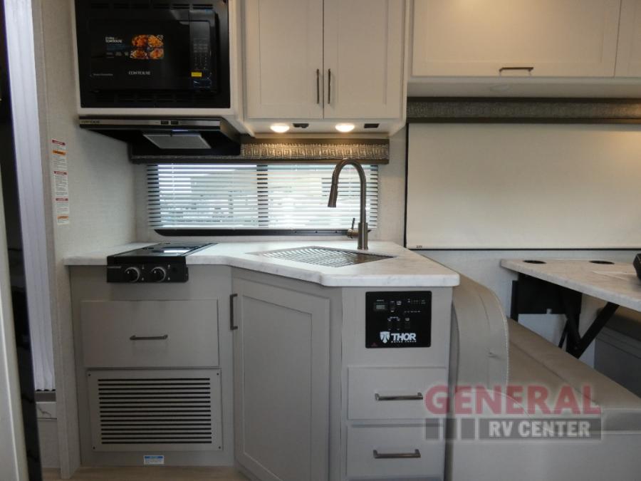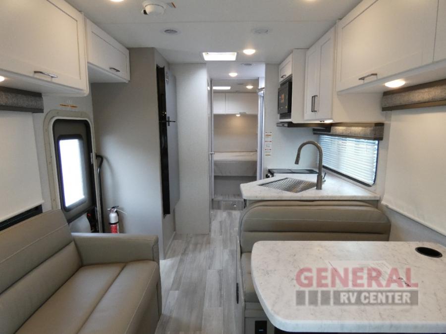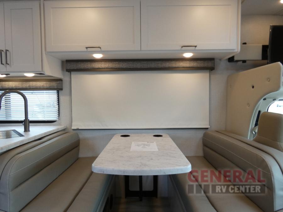 With any Pasadena SE Class C gas motorhome by Thor Motor Coach, you will find convenient amenities, a modern interior, and a reliable Ford E-Series chassis to power your adventures. There is a one-piece fiberglass front cap, and premium one-piece roofing for added strength. Residential vinyl flooring will be easy to keep clean, and you'll love the LED lighting, pressed laminate countertops throughout, and full-extensions ball-bearing drawer guides. These motorhomes also include a generator and a 30-amp shoreline power cord to keep you going, along with a tankless water heater to ensure your comfort!