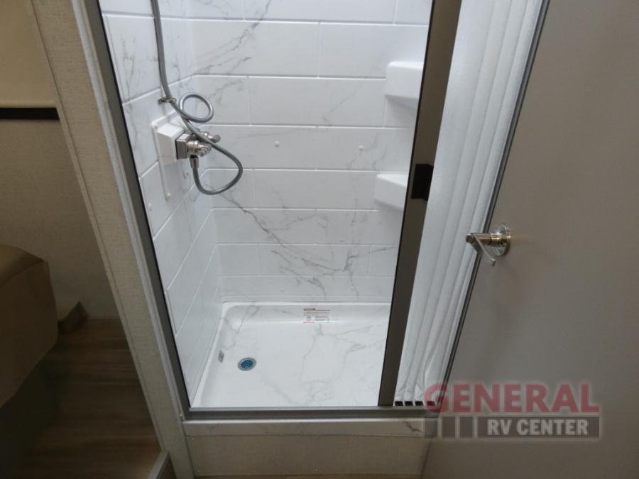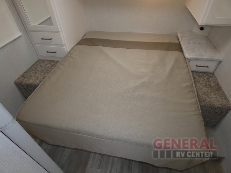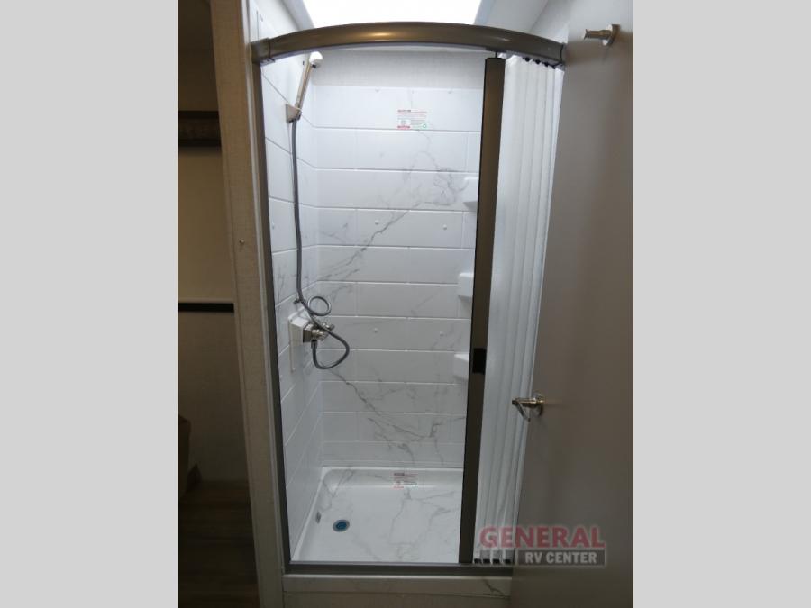 You're sure to have a great time in this coach that can sleep six each night! The rear bedroom includes an RV queen bed and dual closets to keep your things organized, plus the bath is close by for easy nighttime use. Here, you'll find a private toilet and sink, with the independent shower right across the hall. Your guests can sleep on the 68" sofa, 70" dream dinette, or the cab-over bunk! A two burner gas cooktop and convection microwave with an air fryer will let you make meals for your crew, and a 12V refrigerator will keep perishables fresh.