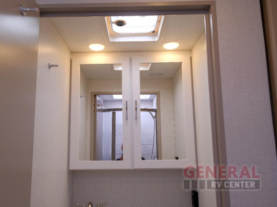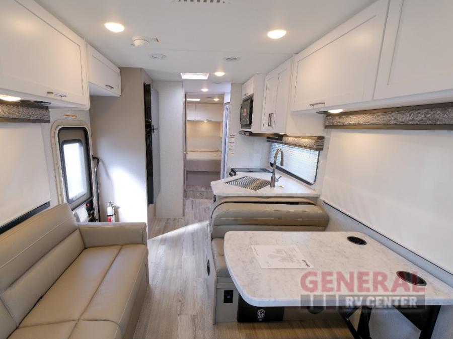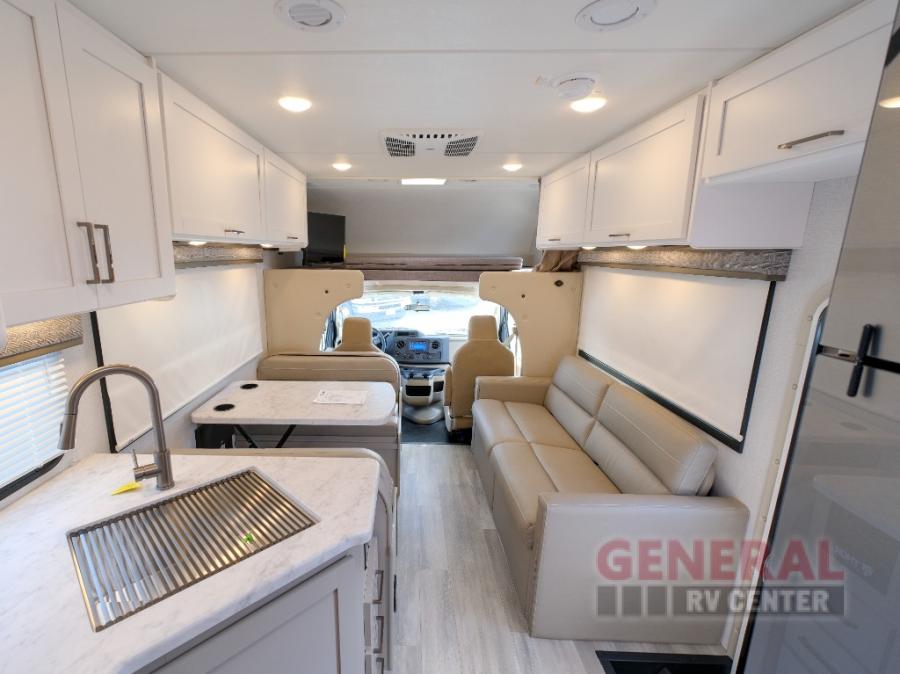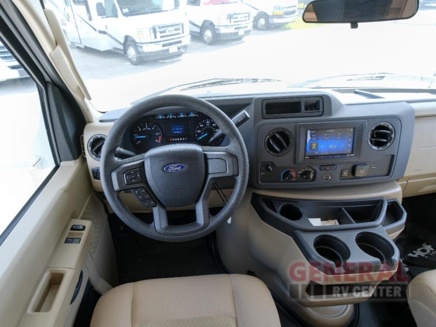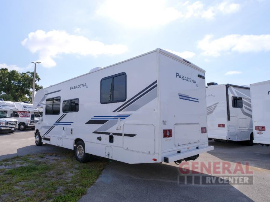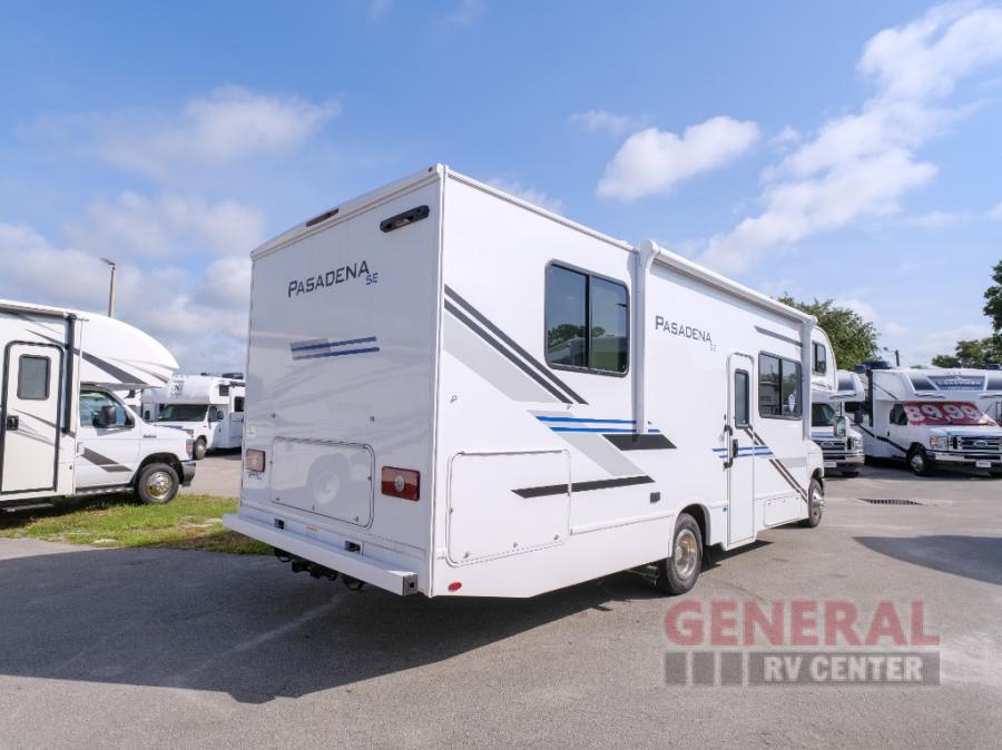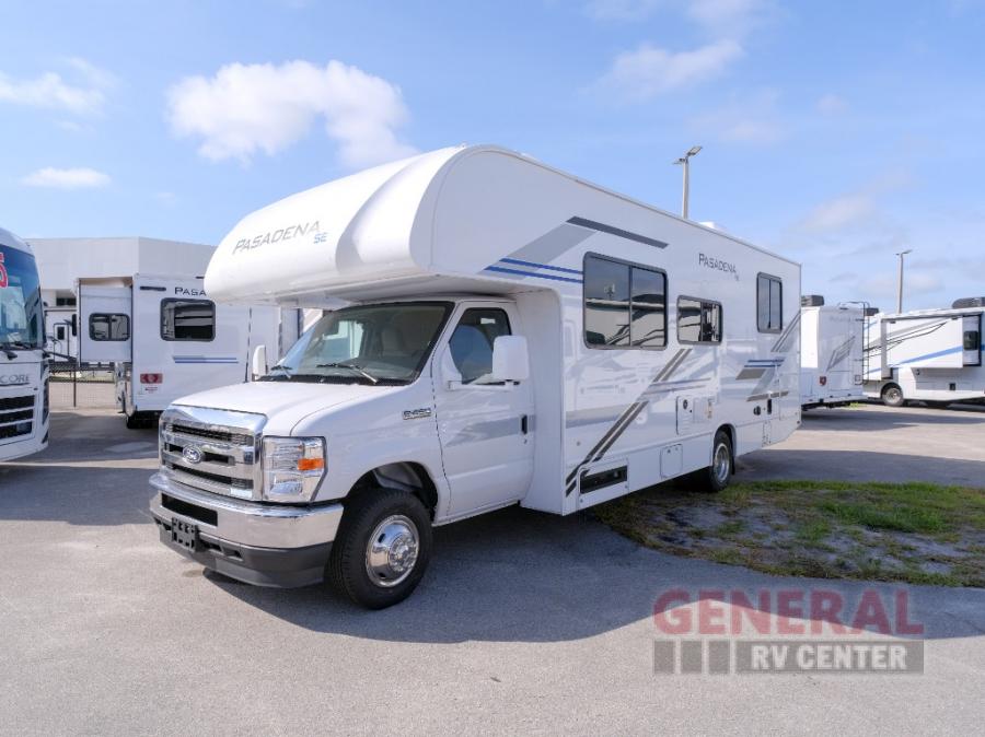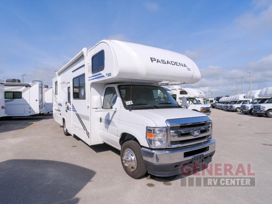 With any Pasadena SE Class C gas motorhome by Thor Motor Coach, you will find convenient amenities, a modern interior, and a reliable Ford E-Series chassis on select models to power your adventures. There is a one-piece fiberglass front cap, and premium one-piece roofing for added strength. Residential vinyl flooring will be easy to keep clean, and you'll love the LED lighting, pressed laminate countertops throughout, and full-extensions ball-bearing drawer guides. These motorhomes also include a generator and a 30-amp shoreline power cord to keep you going, along with a tankless water heater to ensure your comfort!
