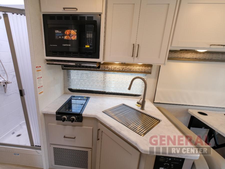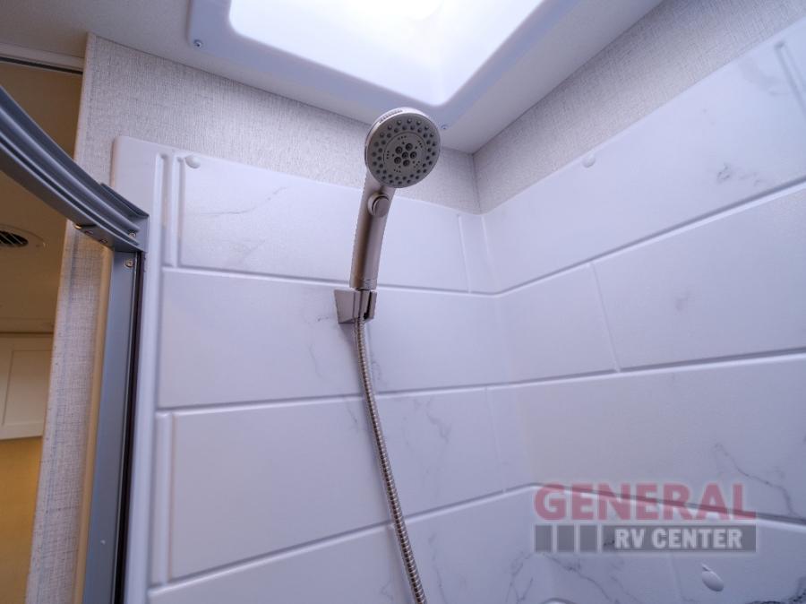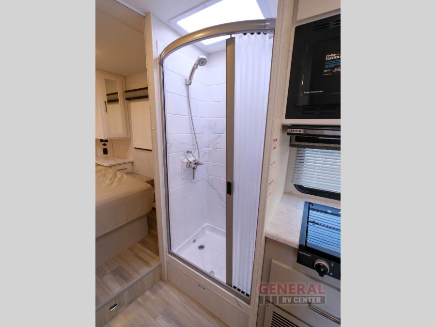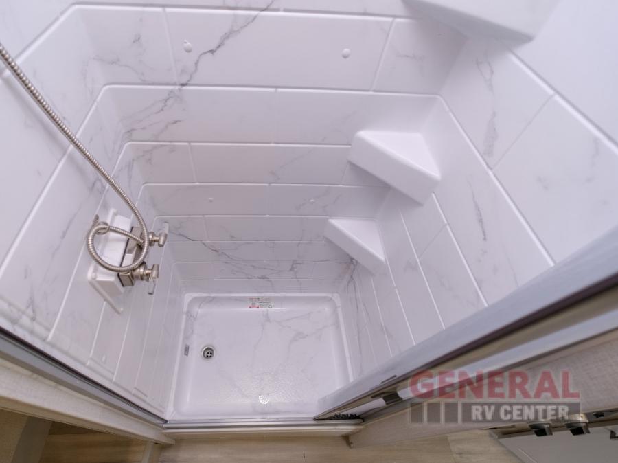 You're sure to have a great time in this coach that can sleep six each night! The rear bedroom includes an RV queen bed and dual closets to keep your things organized, plus the bath is close by for easy nighttime use. Here, you'll find a private toilet and sink, with the independent shower right across the hall. Your guests can sleep on the 68" sofa, 70" dream dinette, or the cab-over bunk! A two burner gas cooktop and convection microwave with an air fryer will let you make meals for your crew, and a 12V refrigerator will keep perishables fresh.