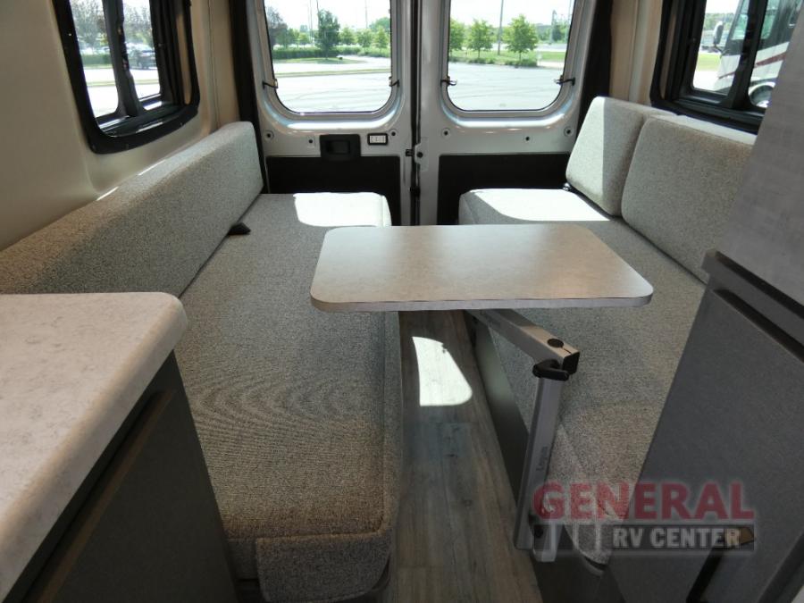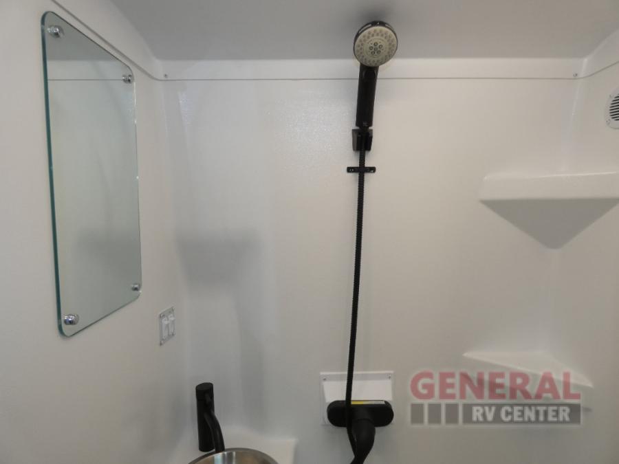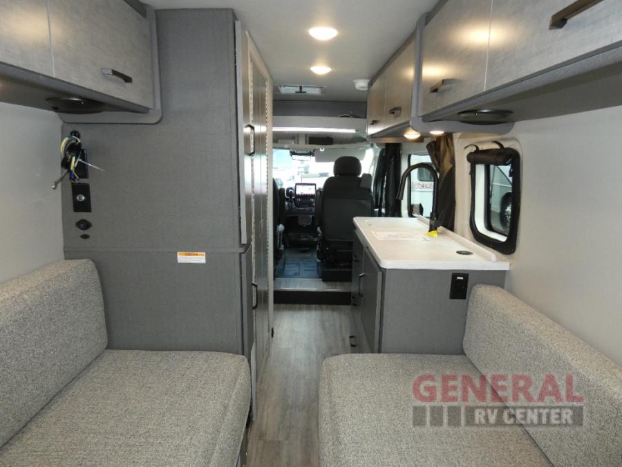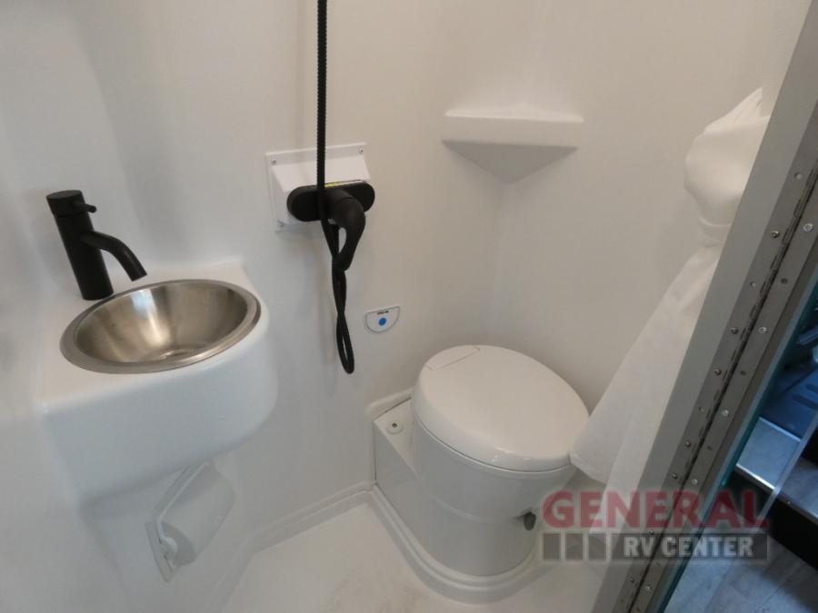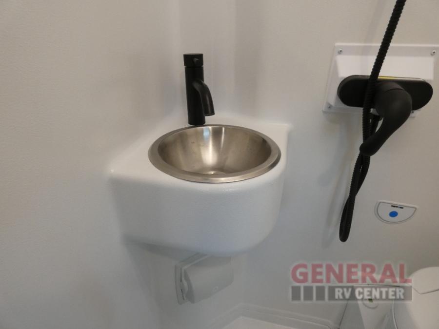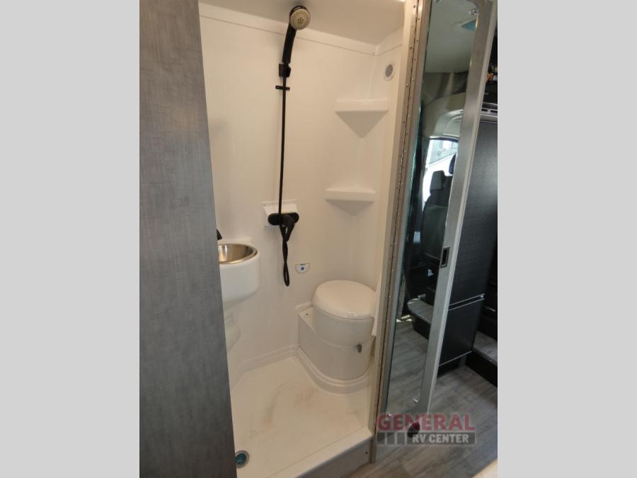 You'll love traveling in this cozy coach for two! The rear sofas convert to a full-width bed when you're ready, and an optional retractable roof rack with Sky Bunk can be added if you're needing additional sleeping space. You can whip up your best breakfast on the single burner induction cooktop or in the microwave oven, and there is a double door refrigerator to keep food fresh. The wet bath includes a cassette toilet, power bath vent with a wall switch and a deluxe shower curtain so you can freshen up each day.