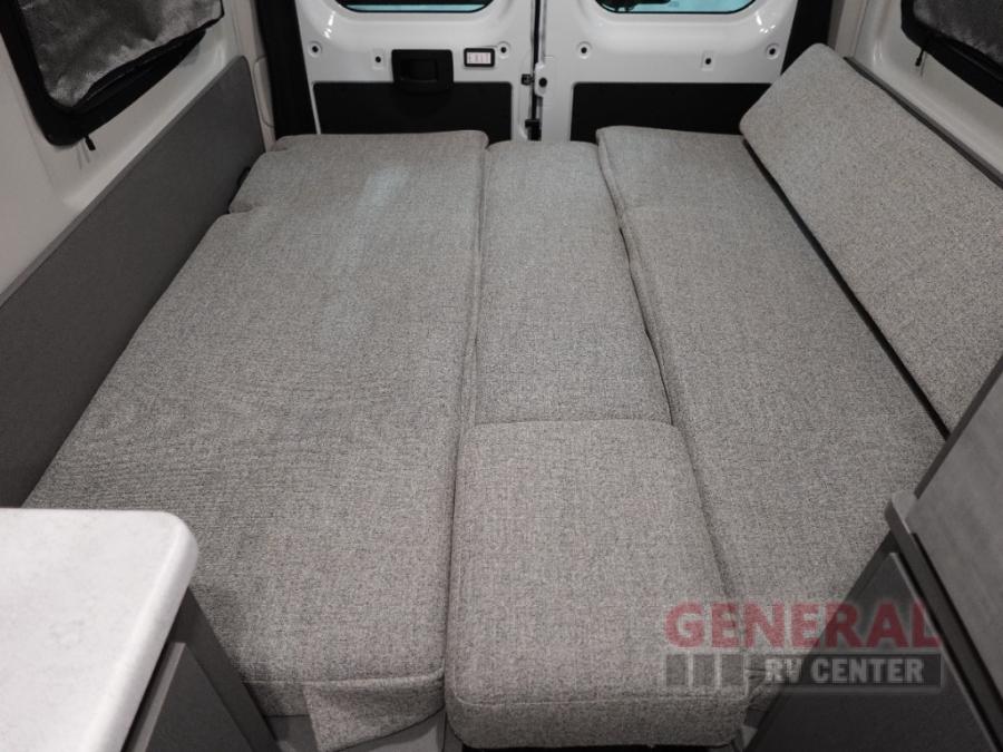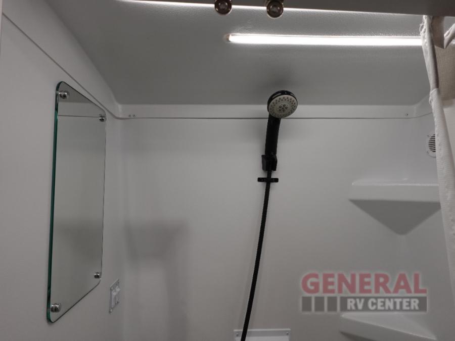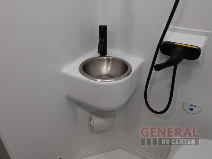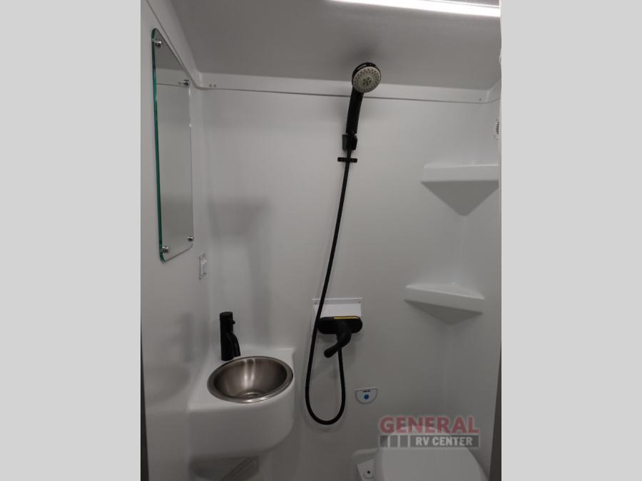 You'll love traveling in this cozy coach for two! The rear sofas convert to a full-width bed when you're ready, and an optional retractable roof rack with Sky Bunk can be added if you're needing additional sleeping space. You can whip up your best breakfast on the single burner induction cooktop or in the microwave oven, and there is a double door refrigerator to keep food fresh. The wet bath includes a cassette toilet, power bath vent with a wall switch and a deluxe shower curtain so you can freshen up each day.