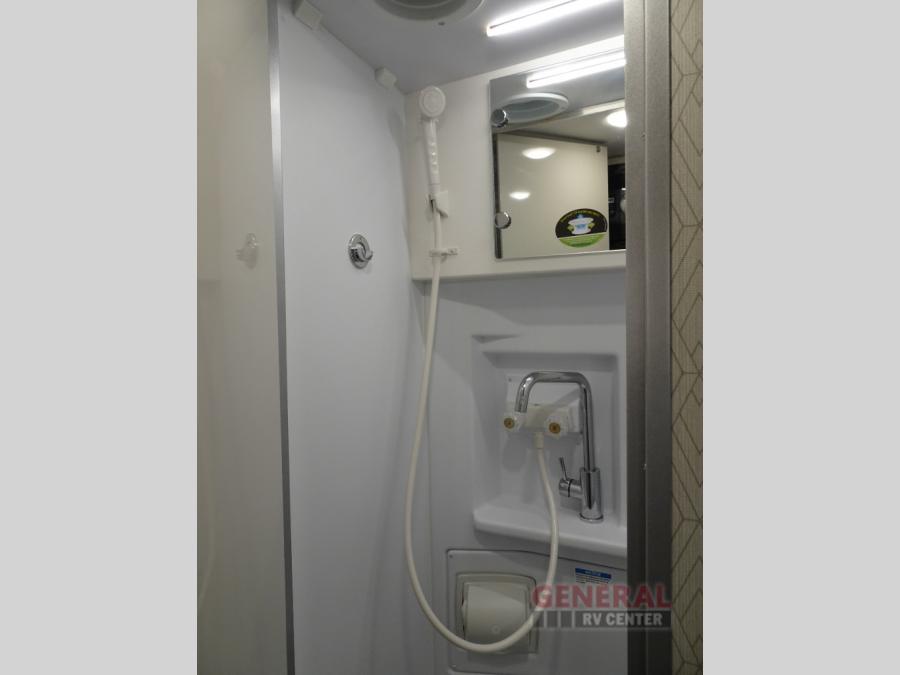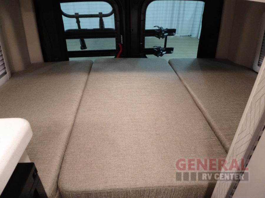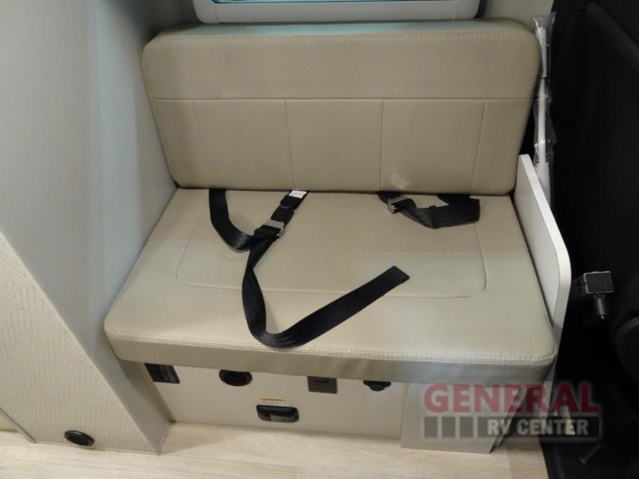 You're going to love every minute in this coach that can sleep two people each night. The fold up rear bed will provide more space during the day, and the wet bath will let you clean up before heading off to explore. After you've worked up an appetite, you can prepare lunch on the single burner induction cooktop or use the microwave oven. There is also a fold out exterior table and a 10' 8" awning if you'd like to take your plate outdoors. There are dual lap belts in the dinette plus a removeable table if you want to stretch your legs out. And you'll never go bored with a 24" Smart TV onboard for movies!