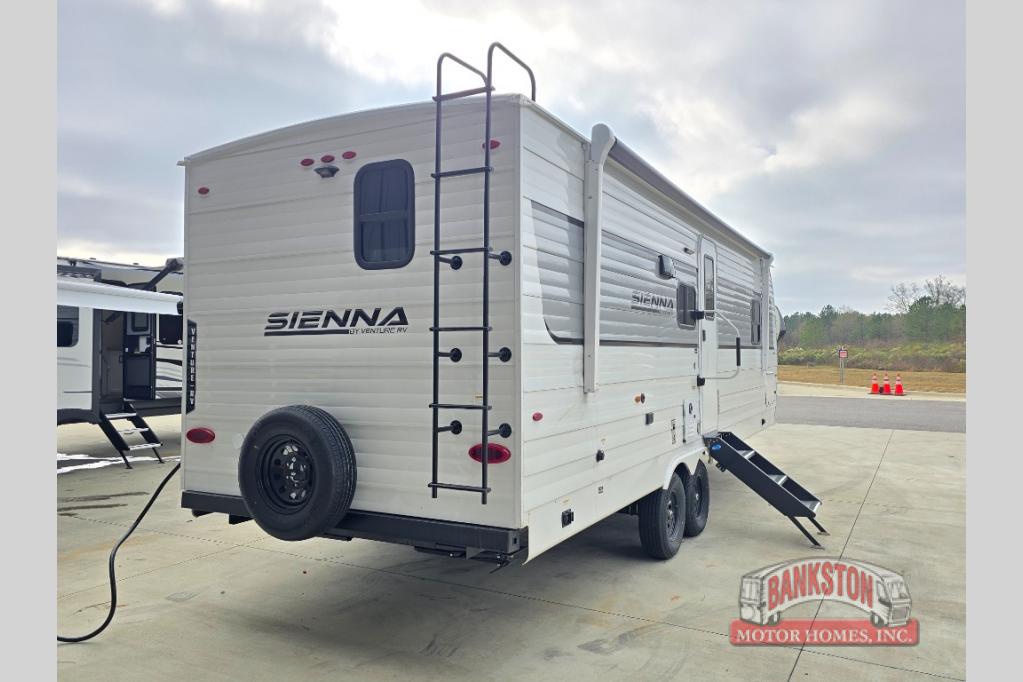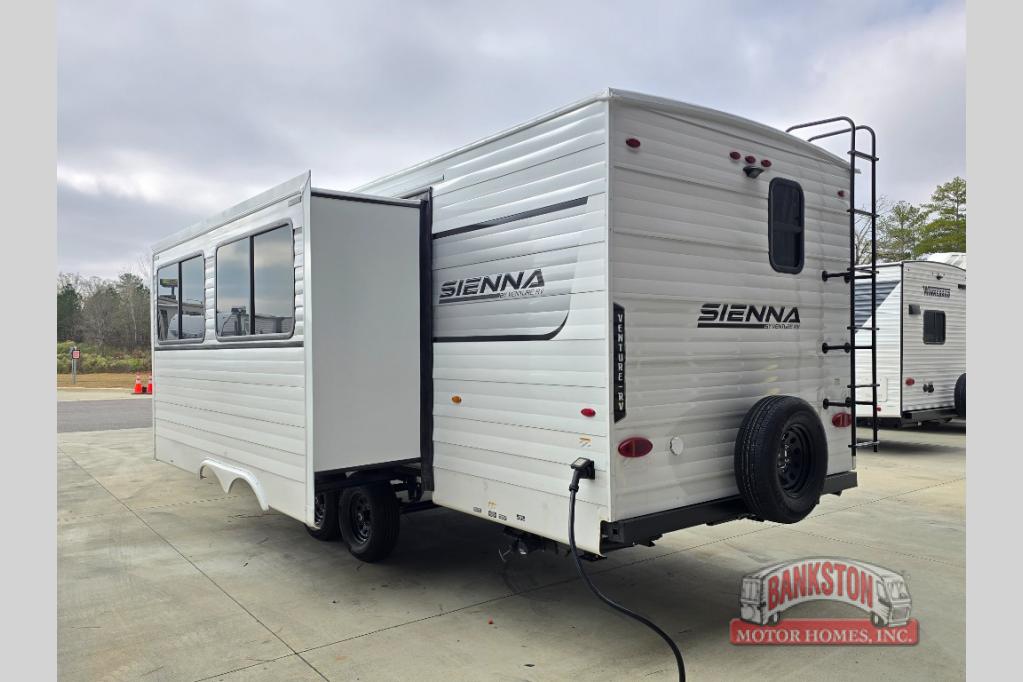 With any Sienna travel trailer by Venture RV, you will enjoy a lightweight unit, convenient amenities, and a durable construction that includes a BAL NXG-bolted frame. There is also a heated and enclosed one-piece underbelly, residential fiberglass insulation, and a reflective PVC roof membrane within the Weather-Shield Package to help extend your camping season. Outside, the BAL 5.0 power stabilizer jacks and power tongue jack will have you set up in no-time, and the Venture RV bottle opener/dog tie down will make it easy to bring your furry friends along. Head inside to enjoy the modern farmhouse design, along with Beauflor throughout with no carpet, custom backsplash, large underbed storage, and a bath skylight to name a few comforts!