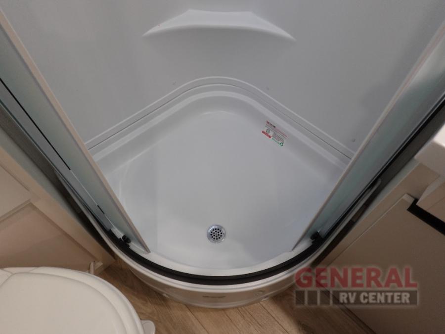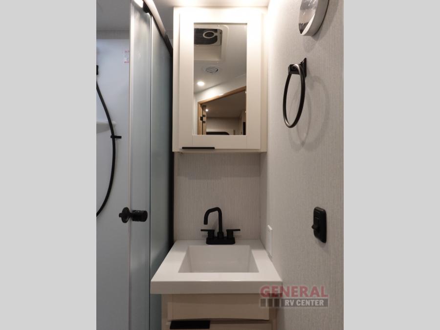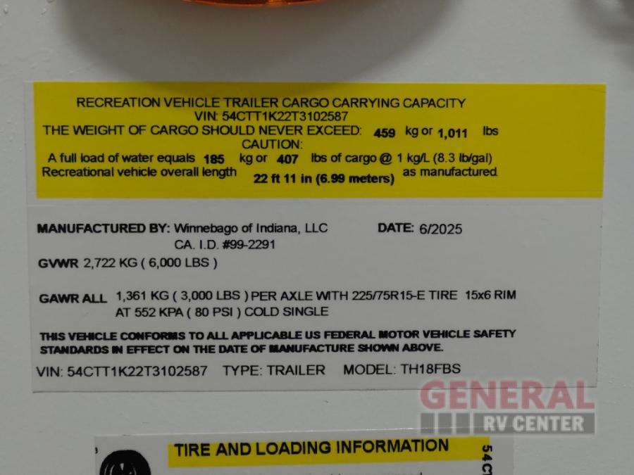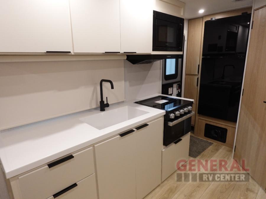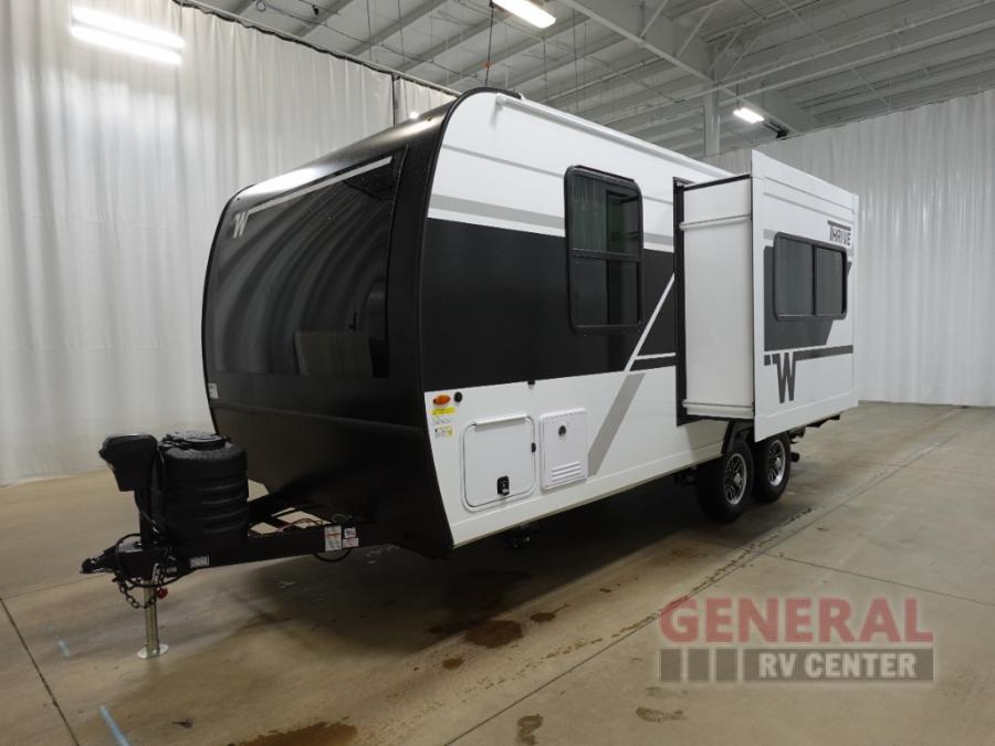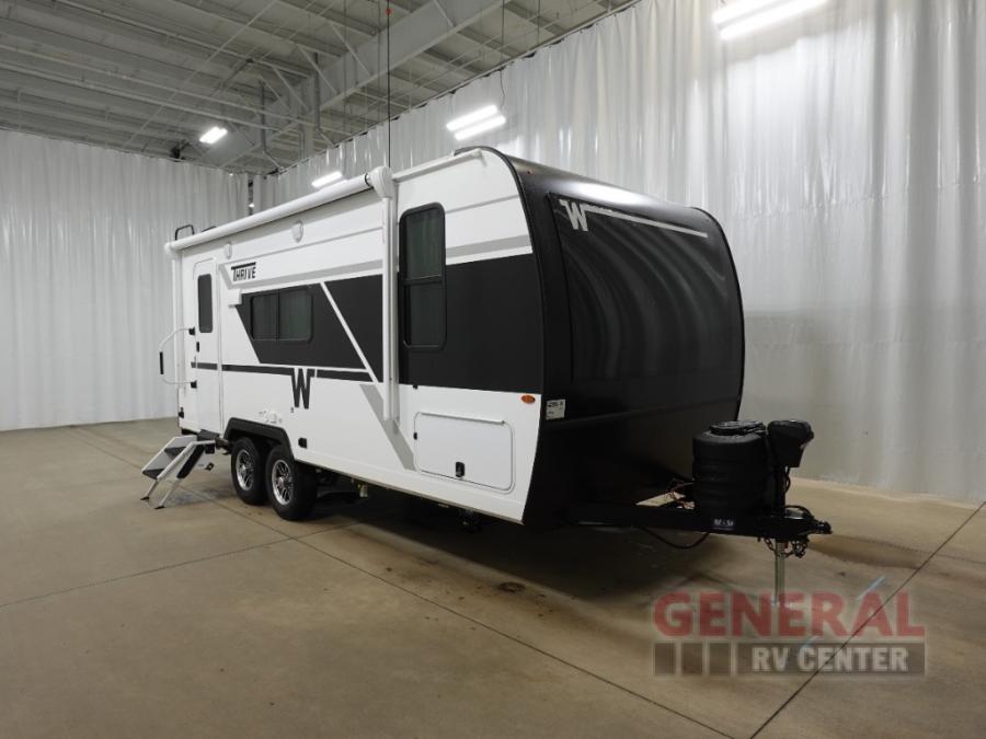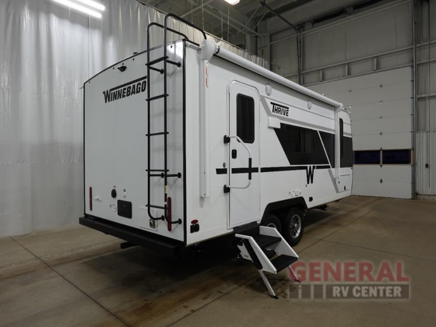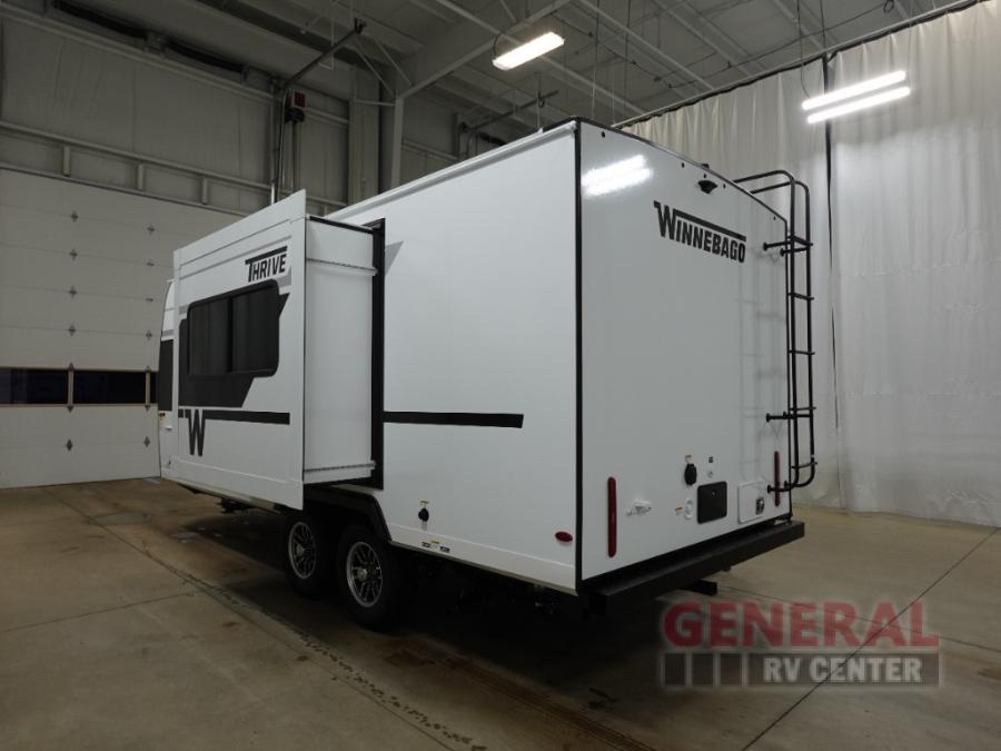 With any Thrive travel trailer by Winnebago, you can camp with functionality, comfort, and convenience! The tinted and frameless front window will be the first thing that catches your eye, and the fiberglass sidewalls with Azdel Onboard provide a durable trailer made to last. There is also an exterior ladder, along with front radius profile lights, power stabilizer jacks, and a powered awning with LED lighting to name a few exterior features. You will stay powered up by the 30-amp power cord and 200-watt solar panel, plus there is a tankless water heater for endless hot showers. Inside, you'll love the custom Winnebago furniture, carpetless side outs, molded fiberglass countertops, and residential recessed ceiling lights to keep your space well lit!