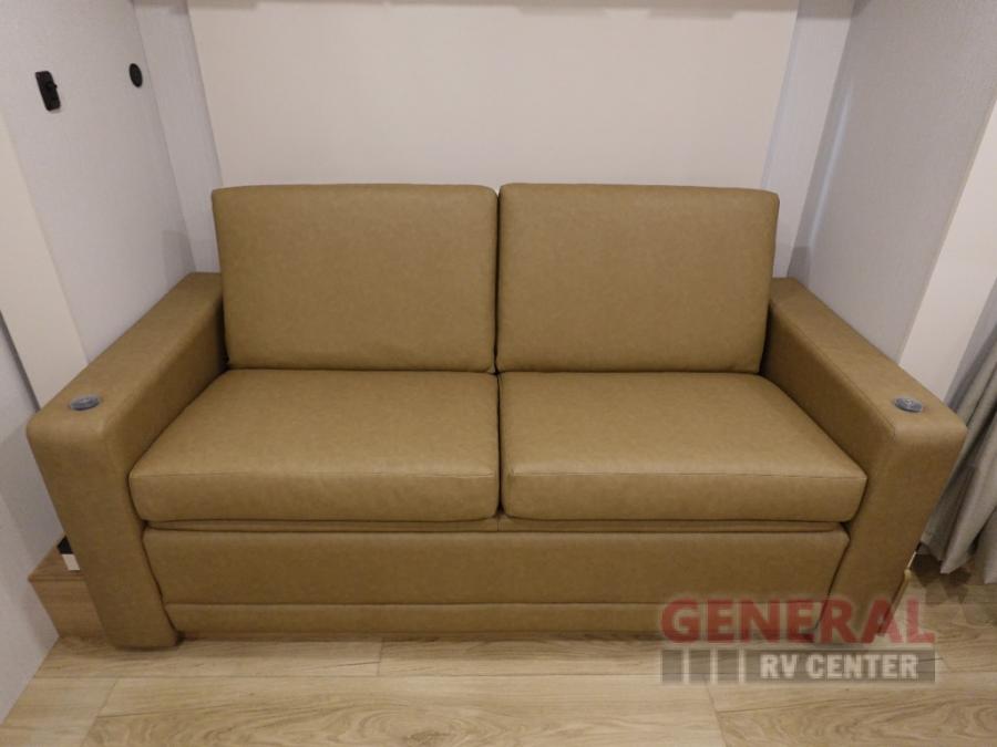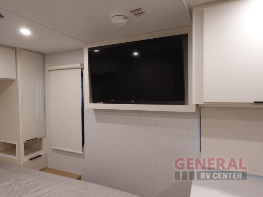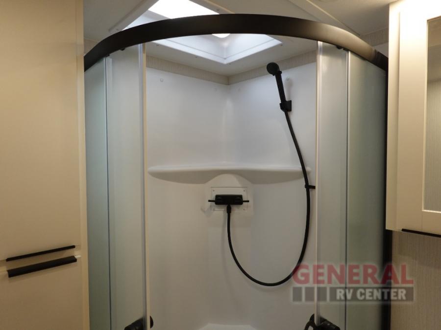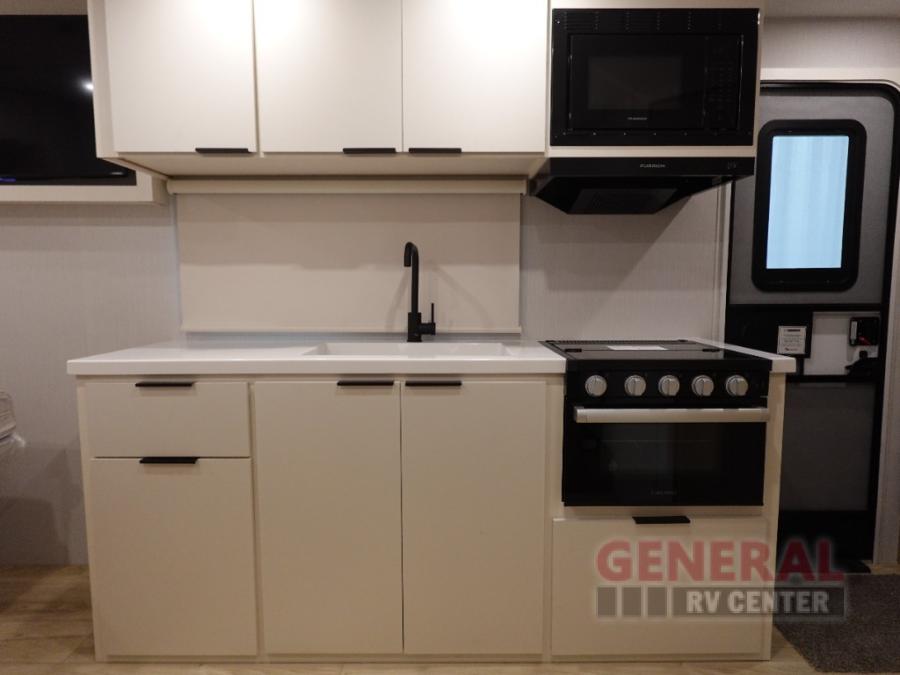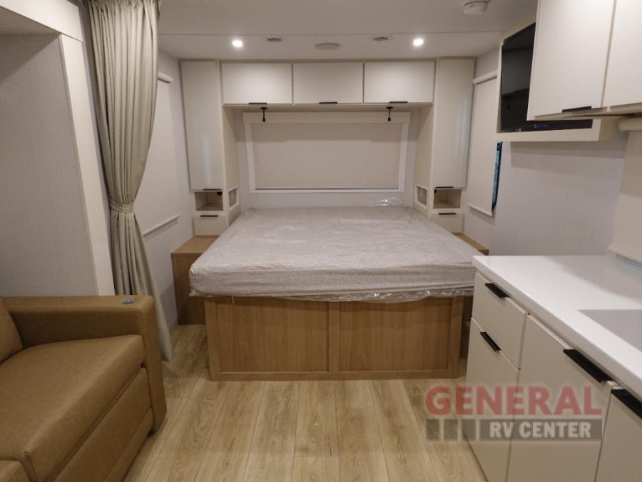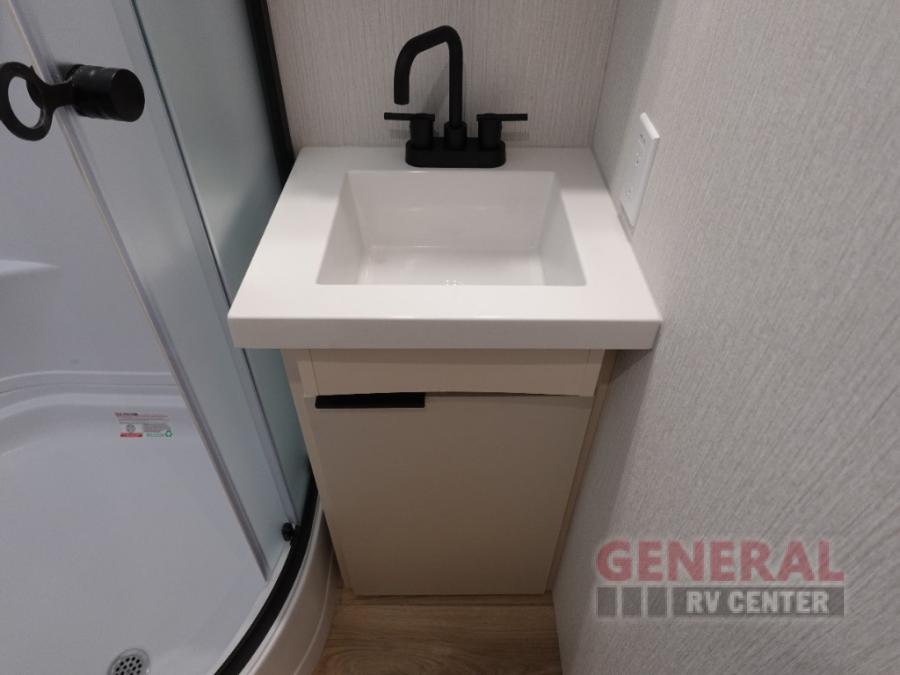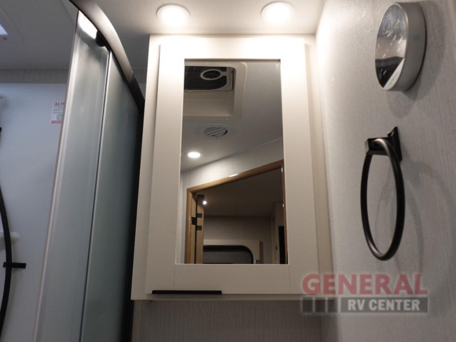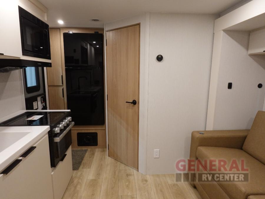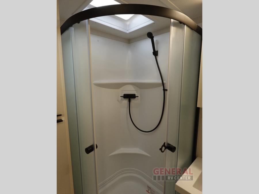 With any Thrive travel trailer by Winnebago, you can camp with functionality, comfort, and convenience! The tinted and frameless front window will be the first thing that catches your eye, and the fiberglass sidewalls with Azdel Onboard provide a durable trailer made to last. There is also an exterior ladder, along with front radius profile lights, power stabilizer jacks, and a powered awning with LED lighting to name a few exterior features. You will stay powered up by the 30-amp power cord and 200-watt solar panel, plus there is a tankless water heater for endless hot showers. Inside, you'll love the custom Winnebago furniture, carpetless side outs, molded fiberglass countertops, and residential recessed ceiling lights to keep your space well lit!
