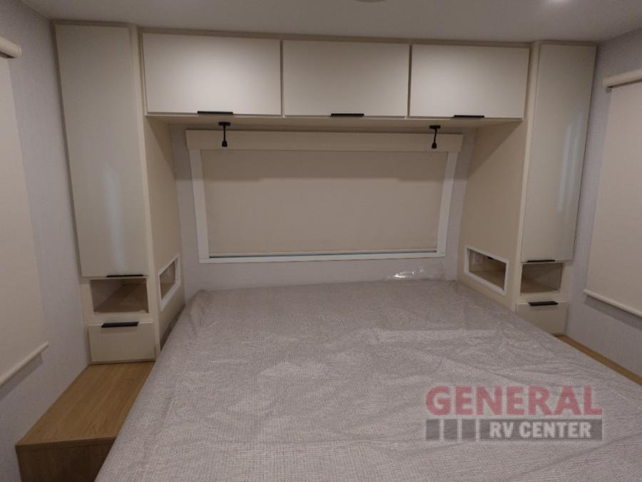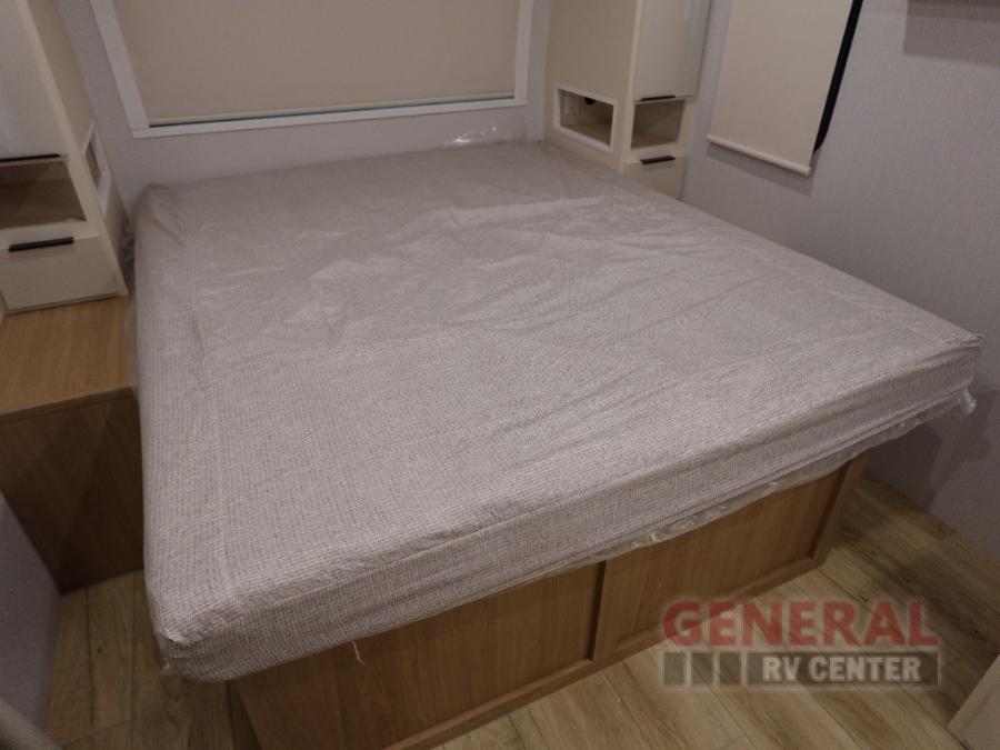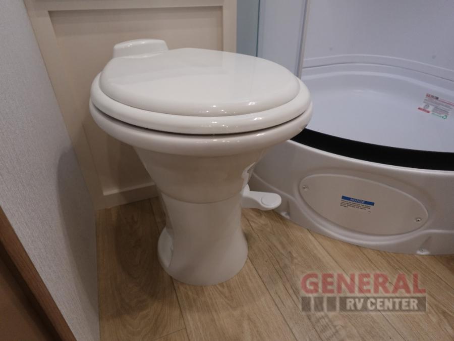 It will be so easy to enjoy camping trips in this compact travel trailer. The jack knife sofa slide provides more floor space plus a place for an overnight guest to sleep. You'll find a king-size bed up front with a privacy curtain and dual bedroom wardrobes to keep your things tidy. A recessed three burner cooktop with an oven will let you make meals each day, and the 10.6 cu. ft. 12V refrigerator will keep your cold items fresh. There is also a pantry with pull-out and removable shelves for added storage space. The full bath includes a power vent fan and a shower skylight that will give you more lighting and extra head room as you get ready each day!