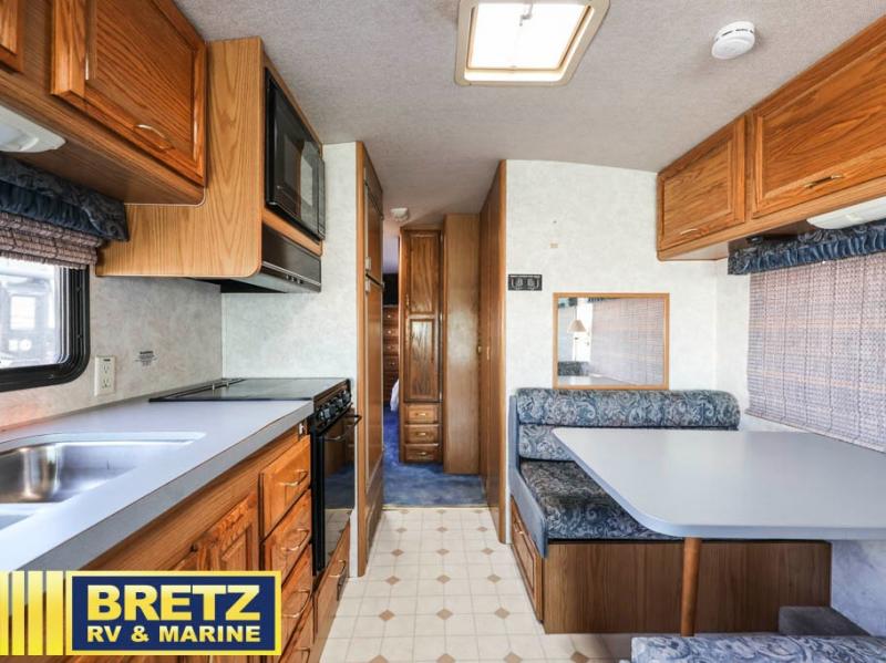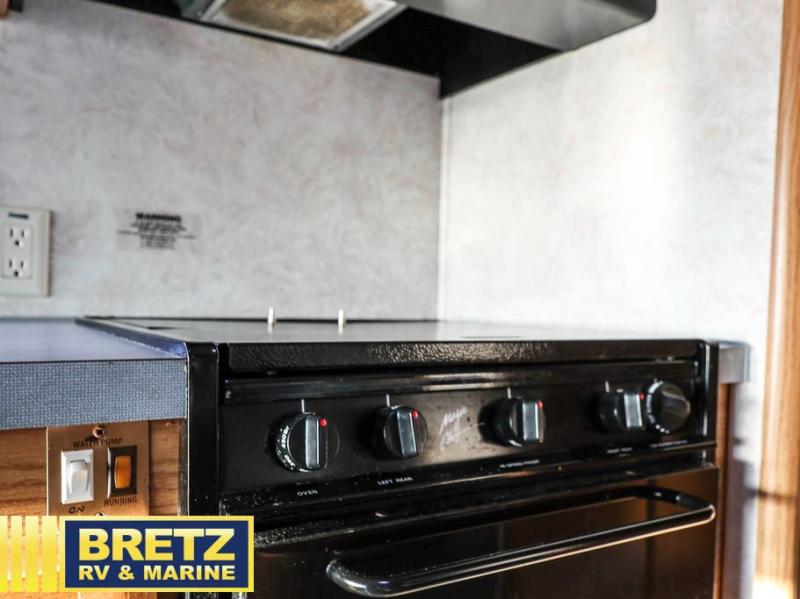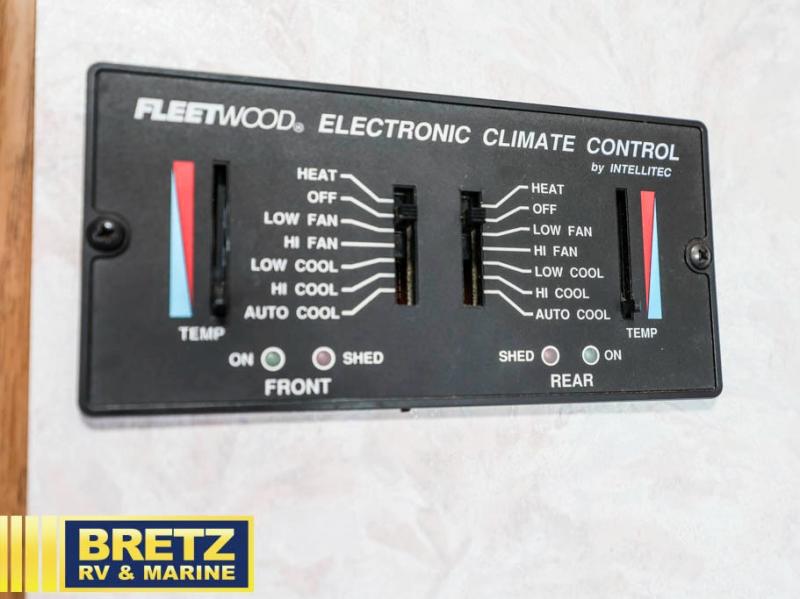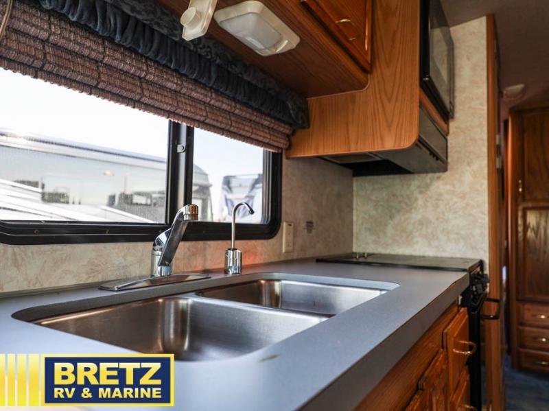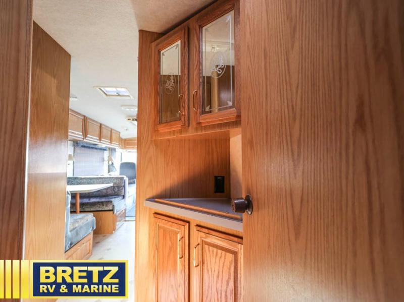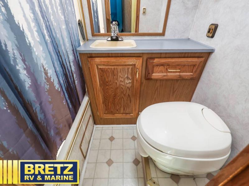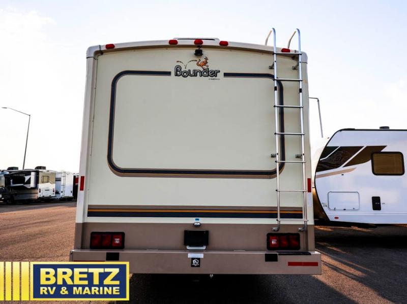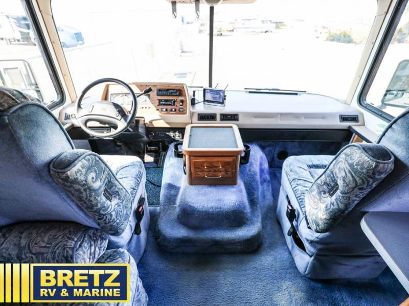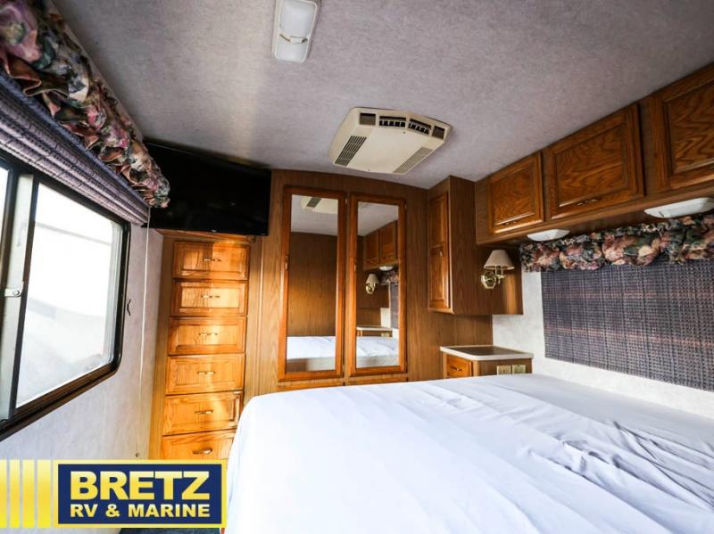 The 1995 Bounder 34J is a 34-foot, Class A motorhome built by Fleetwood on either a Chevrolet or Ford chassis, featuring a queen-size bed, full kitchen and bath, and 2 air conditioners powered by a generator. It offers significant onboard storage, hydraulic leveling jacks, and an awning. While specific features vary by unit, many were equipped with amenities like a microwave, oven, stovetop, and a large refrigerator with a freezer.