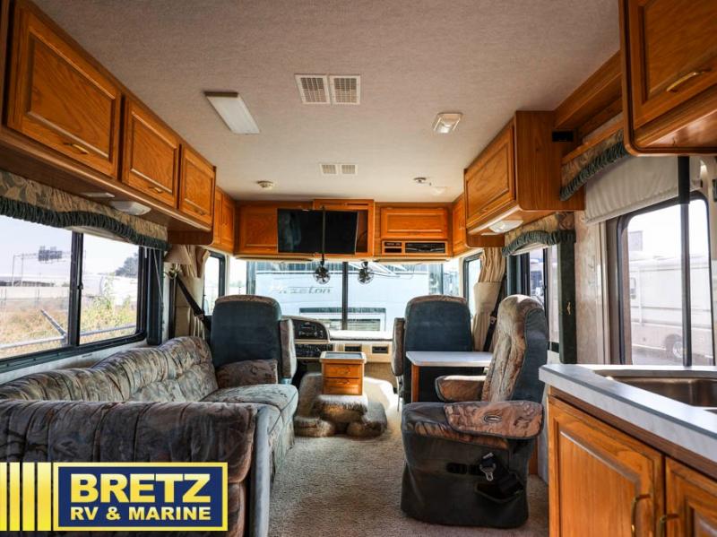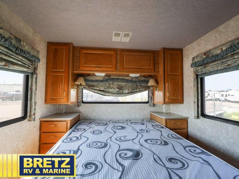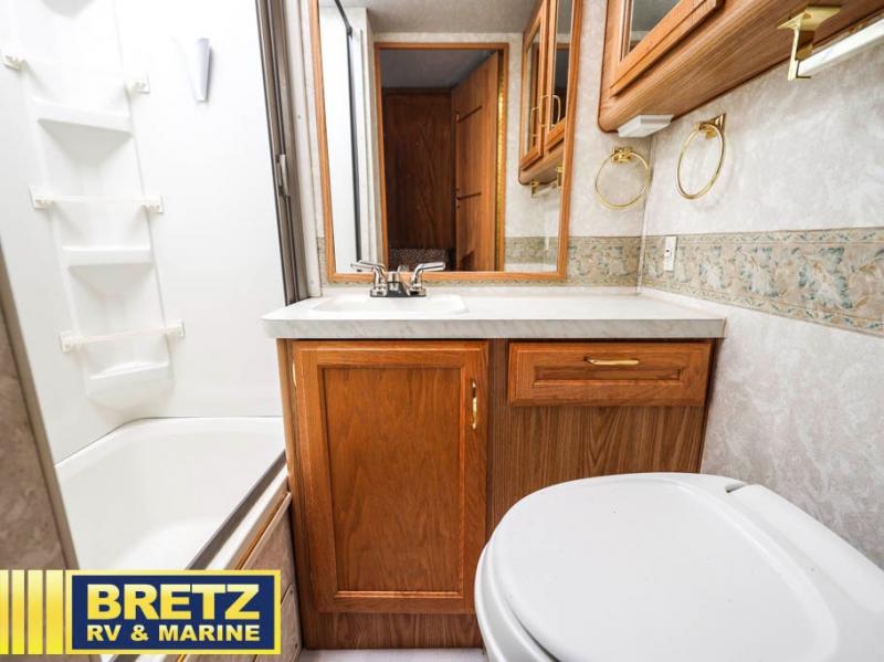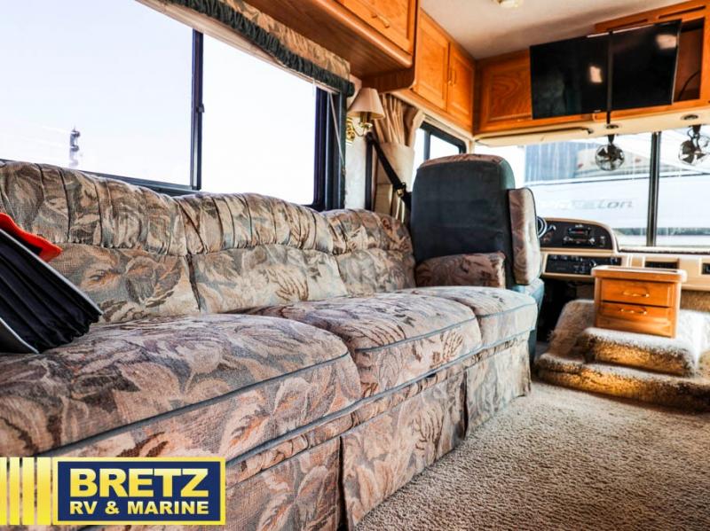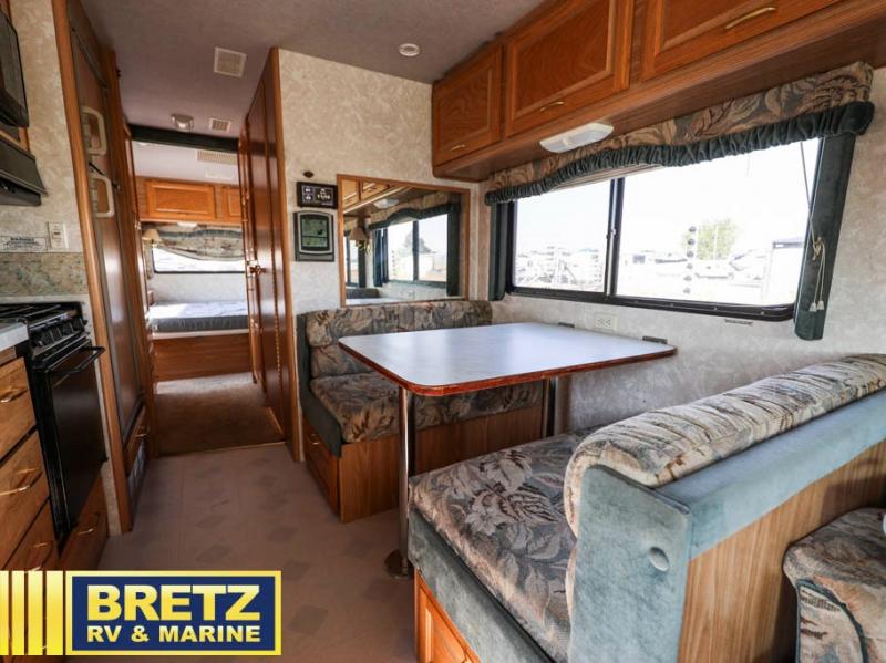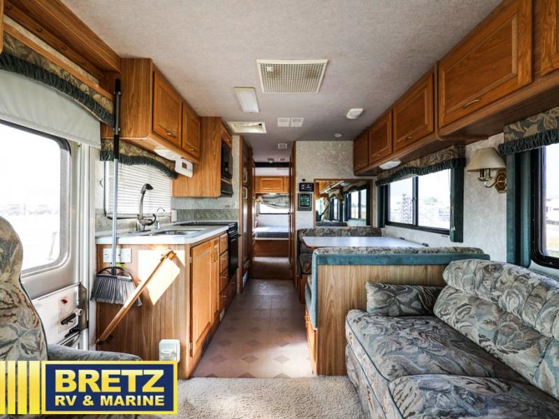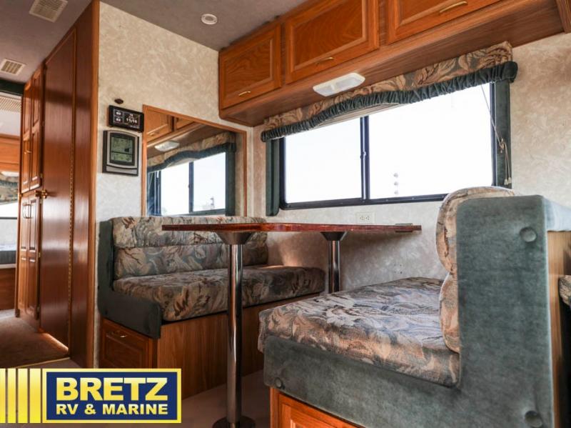 Rear Bedroom Bounder, Shirt Wardrobe, Queen Bed, Wardrobe, Shower, Toilet, Sink, Refrigerator, 3 Burner Range, Double Kitchen Sink, Swivel Chair w/Table, Booth Dinette, Sofa and More.