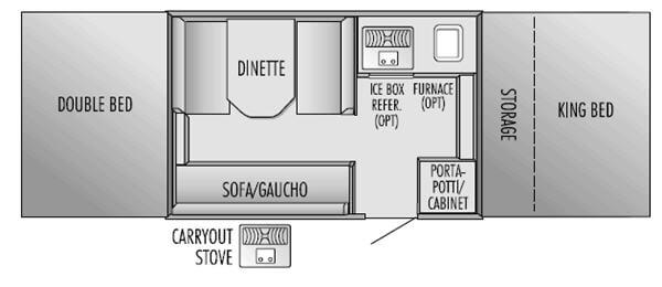 Double Slide, Rear Double Bed Slideout, Booth Dinette, Sofa/Gaucho, Ice Box, Opt. Refrigerator, Carryout Stove, Opt. Furnace, Porta-Potti/Cabinet, Storage, Front King Bed Slideout, 21 Ft. 6 In. Exterior Length, and Much More!