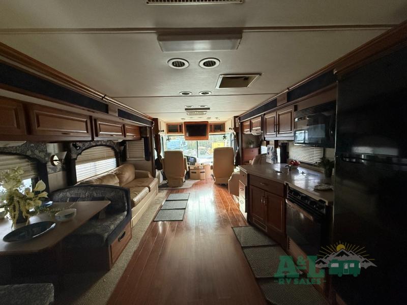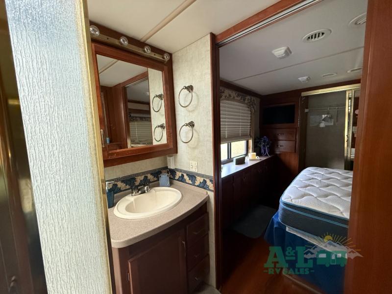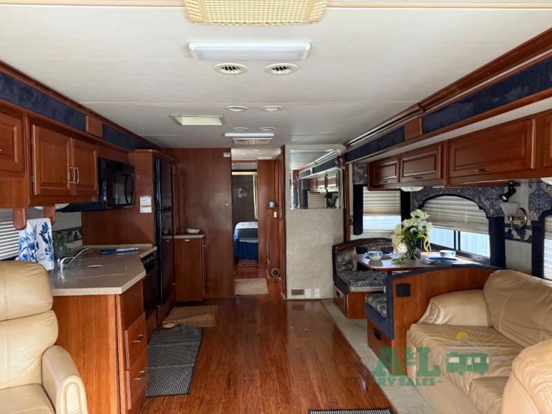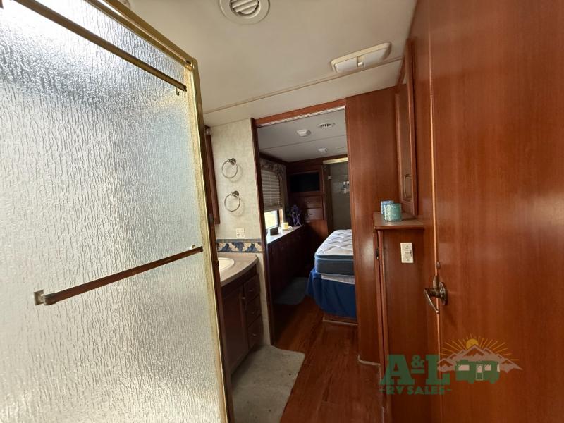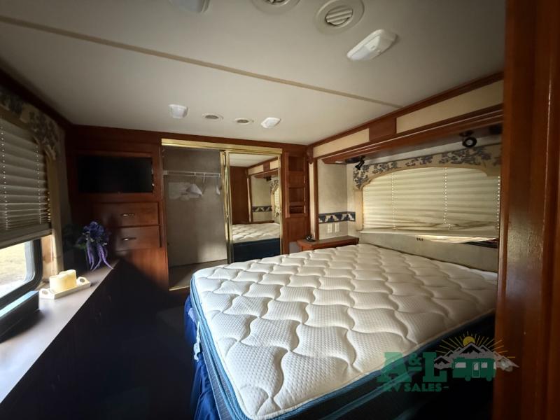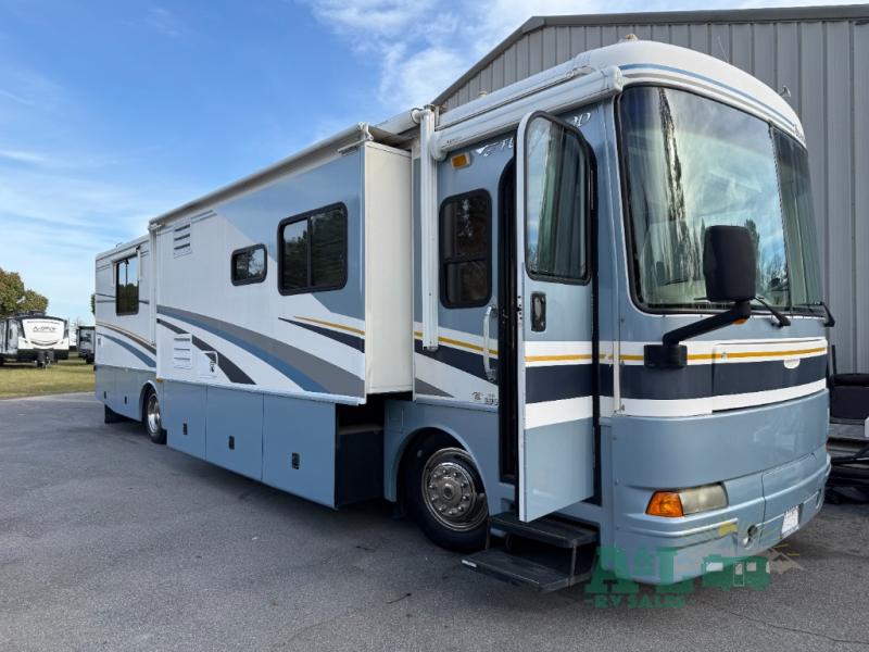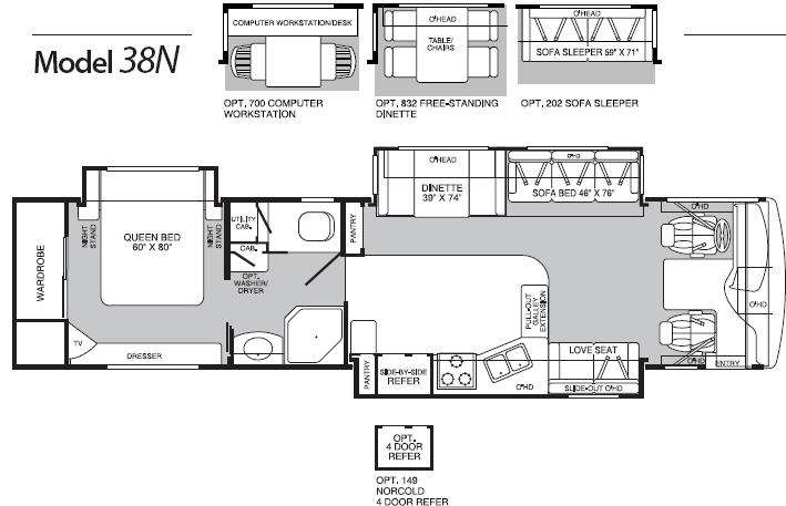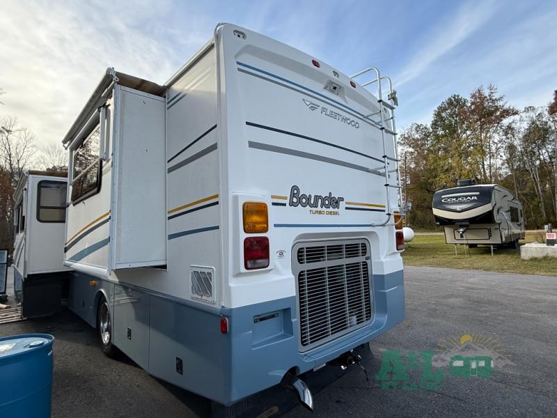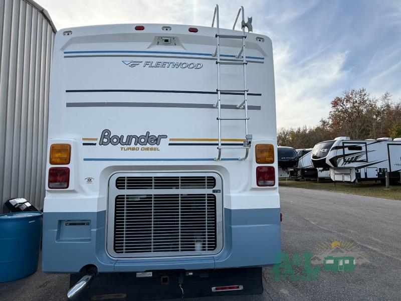 Triple Slide Fleetwood Bounder Diesel w/Rear Queen Bed Slideout w/Nightstands, Wardrobe w/TV, Dresser, Lav., Angle Shower, Private Toilet Area, Utility Cabinet, Opt. Washer/Dryer, Pantry, Booth Dinette & Sofa Bed Slideout or Opt. Sofa Sleeper & Table w/Chairs or Computer Workstation w/Table & Chairs, Love Seat/Double Kitchen Sink/3 Burner Range/Side-By-Side Refrig. or Opt. 4-Door & Pantry Slideout and Much More!