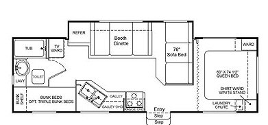 Single Slide, Sleeps 8, Queen Bed, Bunk Beds, Wardrobe, Sofa Bed, Shower/Tub, Dinette, Stove, Refrigerator, Microwave, and More!