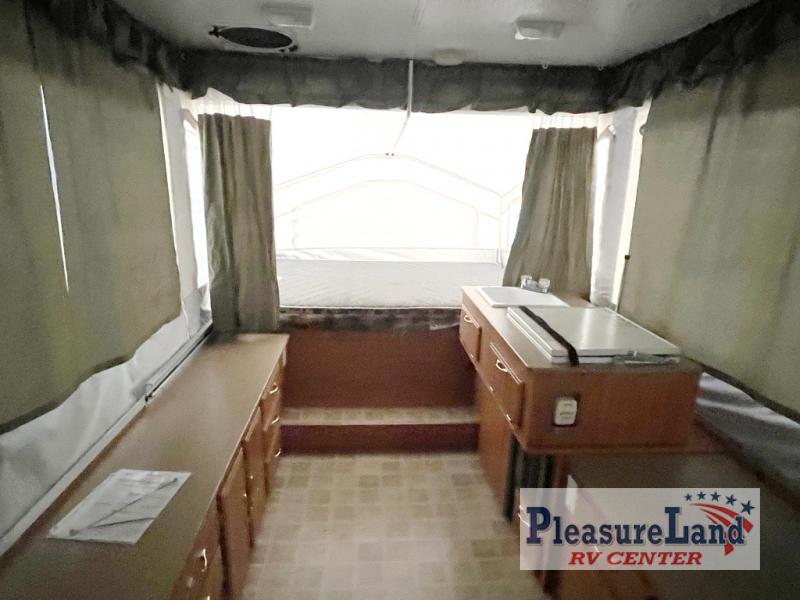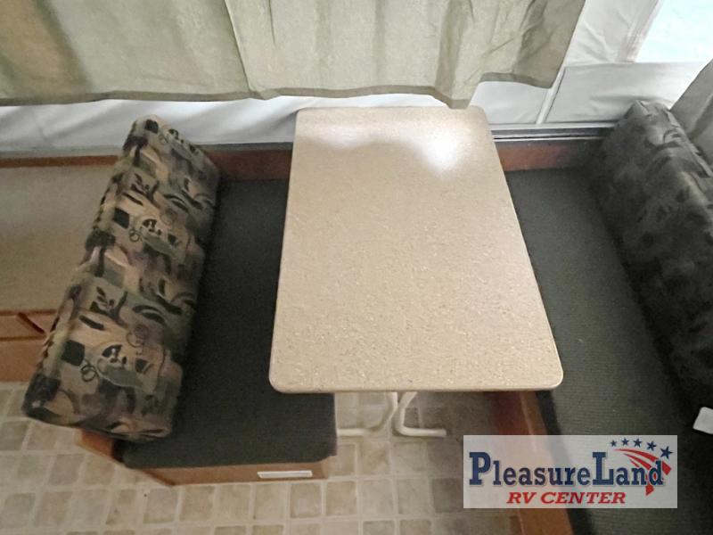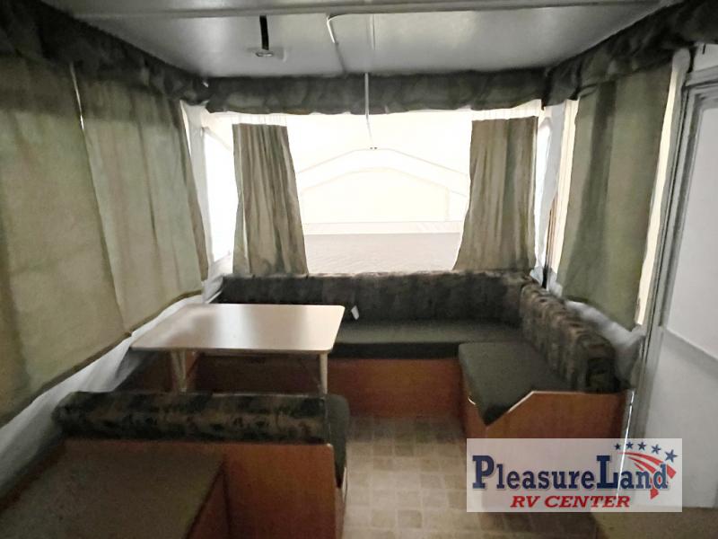 Rear Queen & Front King Tent End Beds, 3 Burner Stove, Refrigerator & Heater Opt. Large Storage Cabinet, Dinette, Gaucho Style Sofa, Front Sliding Storage, Gas Grill, and Much More!