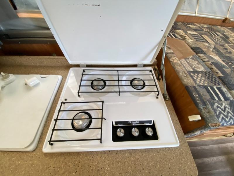 Rear Queen & Front King Tent End Beds, Galley w/Icebox, Opt. Refrigerator, Slideout Booth Dinette, Storage, Sofa, Shower/Port-A-Potty, Front Sliding Storage, RVQue Gas Grill, and Much More!