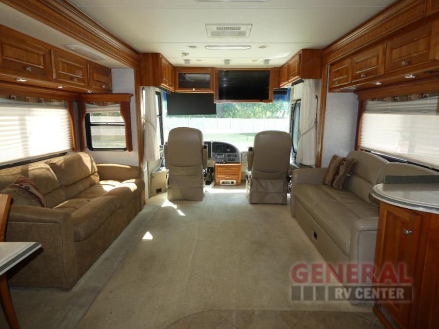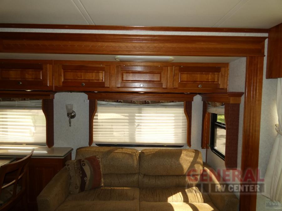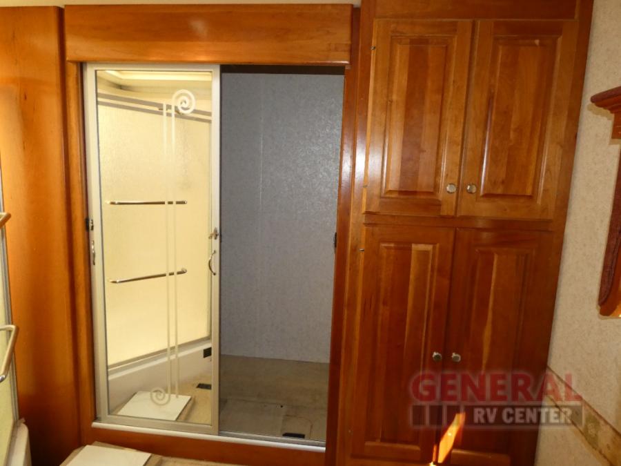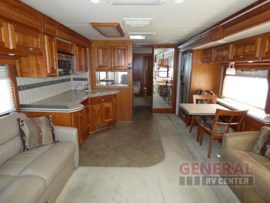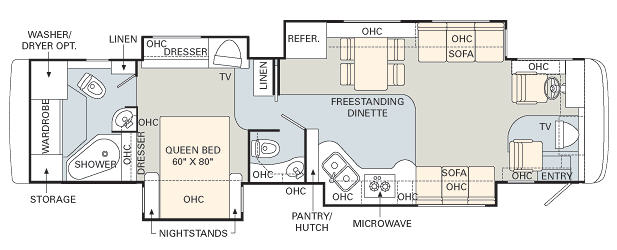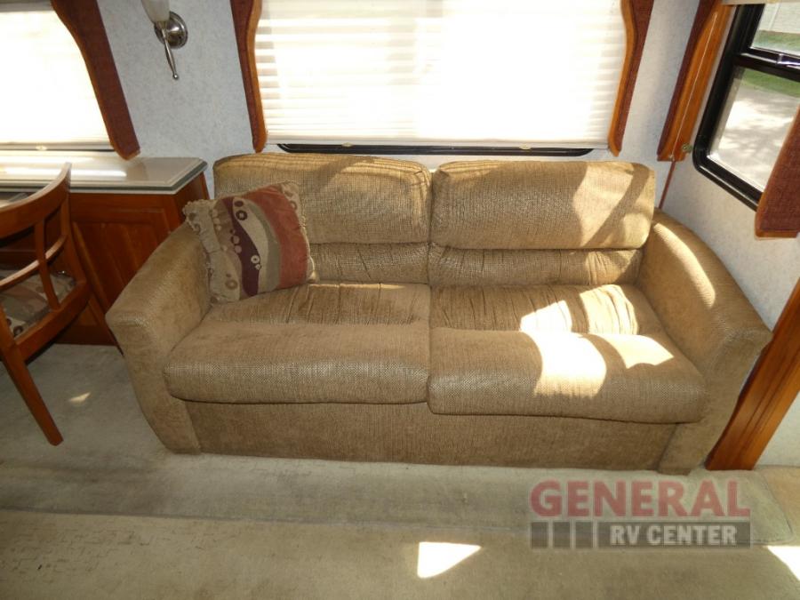 Quad Slide, Rear Bath., Wardrobe, Storage, Shower, Linen Cab., Bed Slideout w/Nightstands, Dresser/TV, 2nd Linen Cab., Seperate 1/2 Bath w/Lav., Pantry/Hutch, Dinette w/Chairs, Refrig., Double Sink, 2 Burner Range, 2 Sofas, TV Above Cab & Much More.