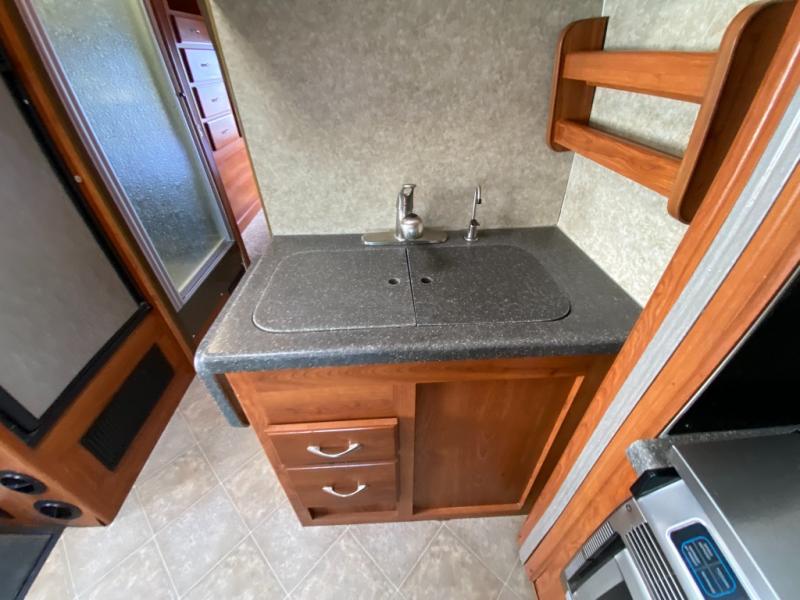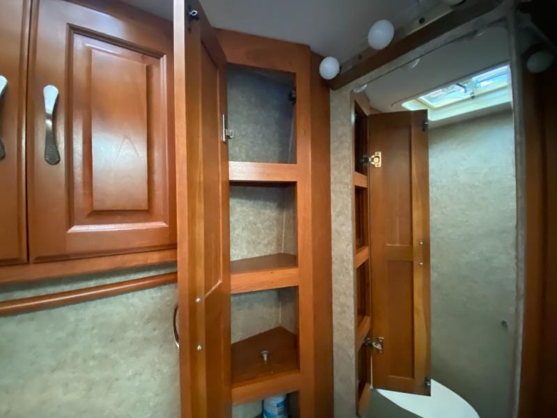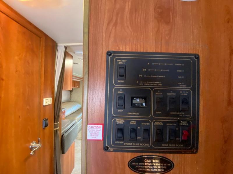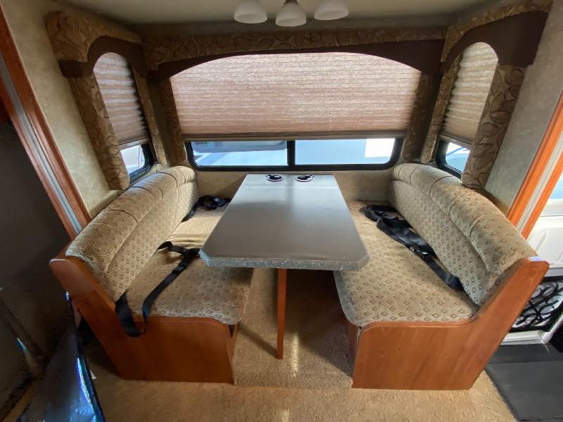 Triple Slide, Rear Queen Bed w/Dresser & TV Shelf, Shower, Stool Room w/Lav., & Linen Cabinet, Double Kitchen Sink, 3 Burner Range & Hide-A-Bed Slideout, Ent. Center w/LCD TV Above Cab Area, Booth Dinette Slideout, Refrigerator, Overhead Cabinets and Much More.
