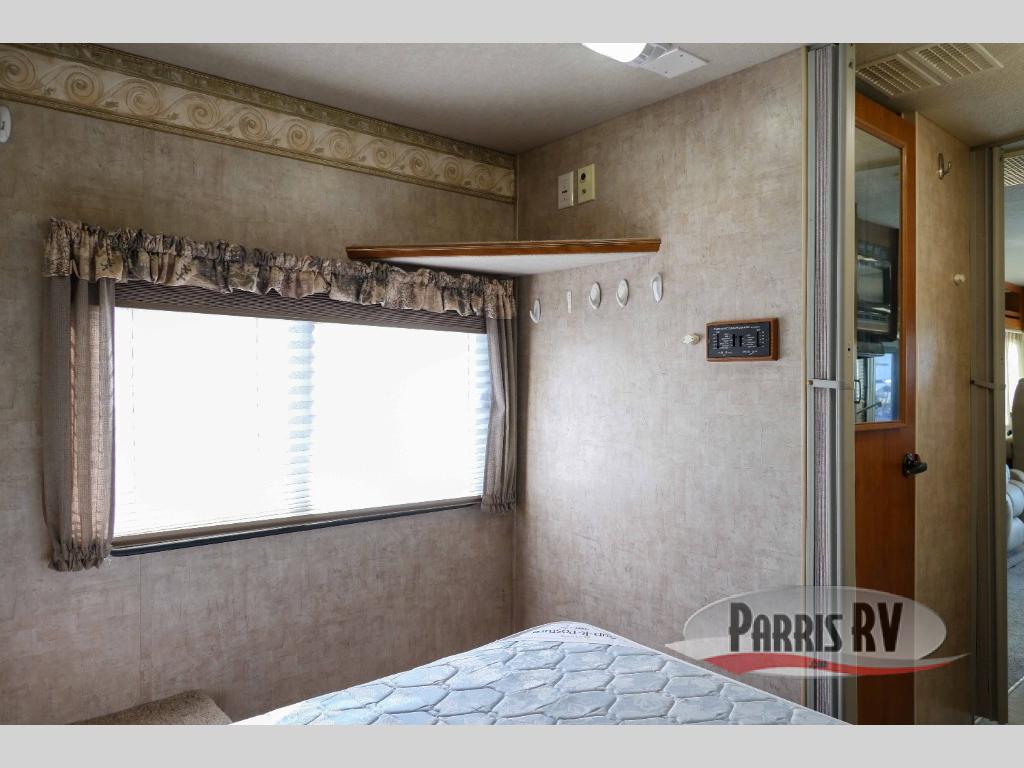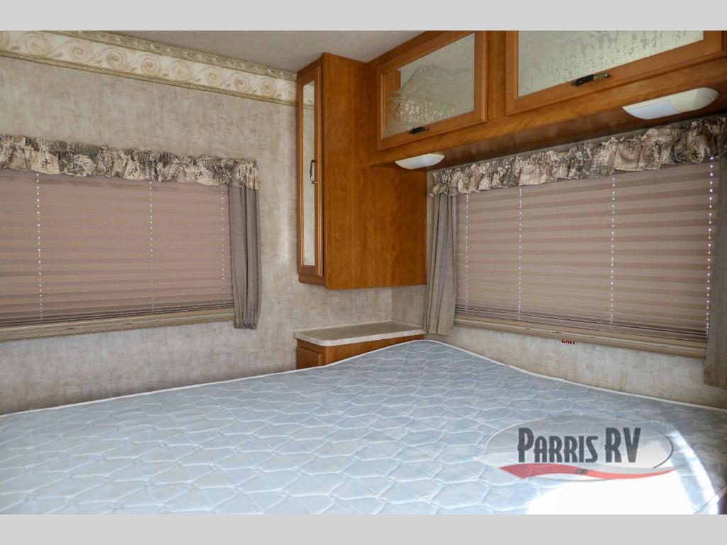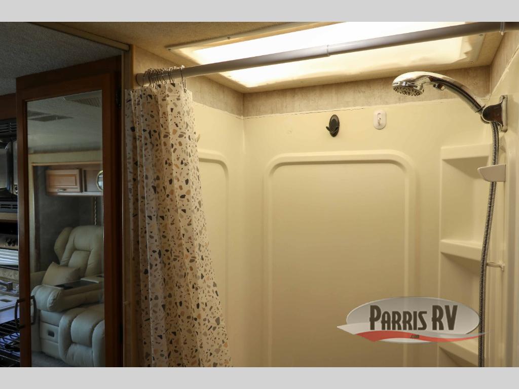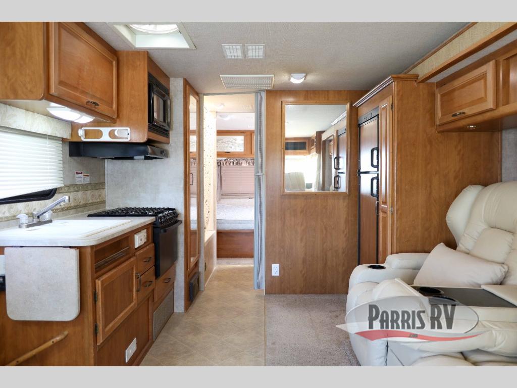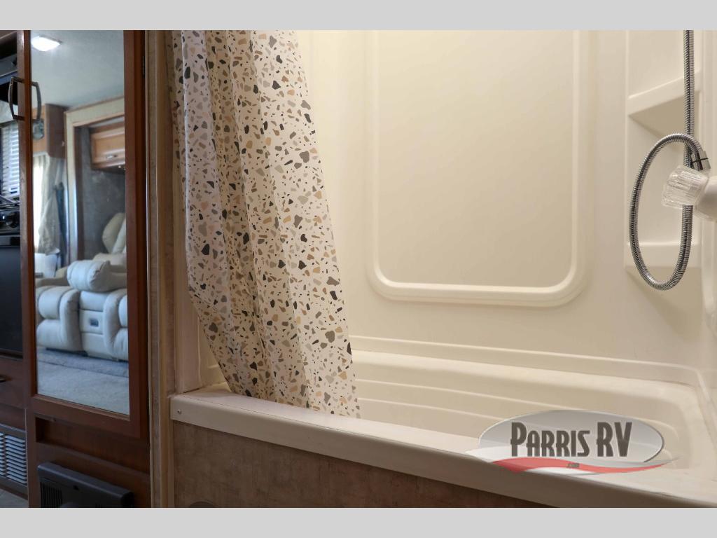 Single Slide, Rear Queen Bed w/Nightstands & Corner Shelf or Opt. Twin Beds w/Nighstand Between, Cabinet & TV Shelf, Tub/Shower, Stool Room w/Lav., Refrig. Pantry, Booth Dinette, Double Kitchen Sink, 3 Burner Range, Pantry, Overhead Cabinets, TV Above Cab Area, Eng. & Chassis Choice & Mor