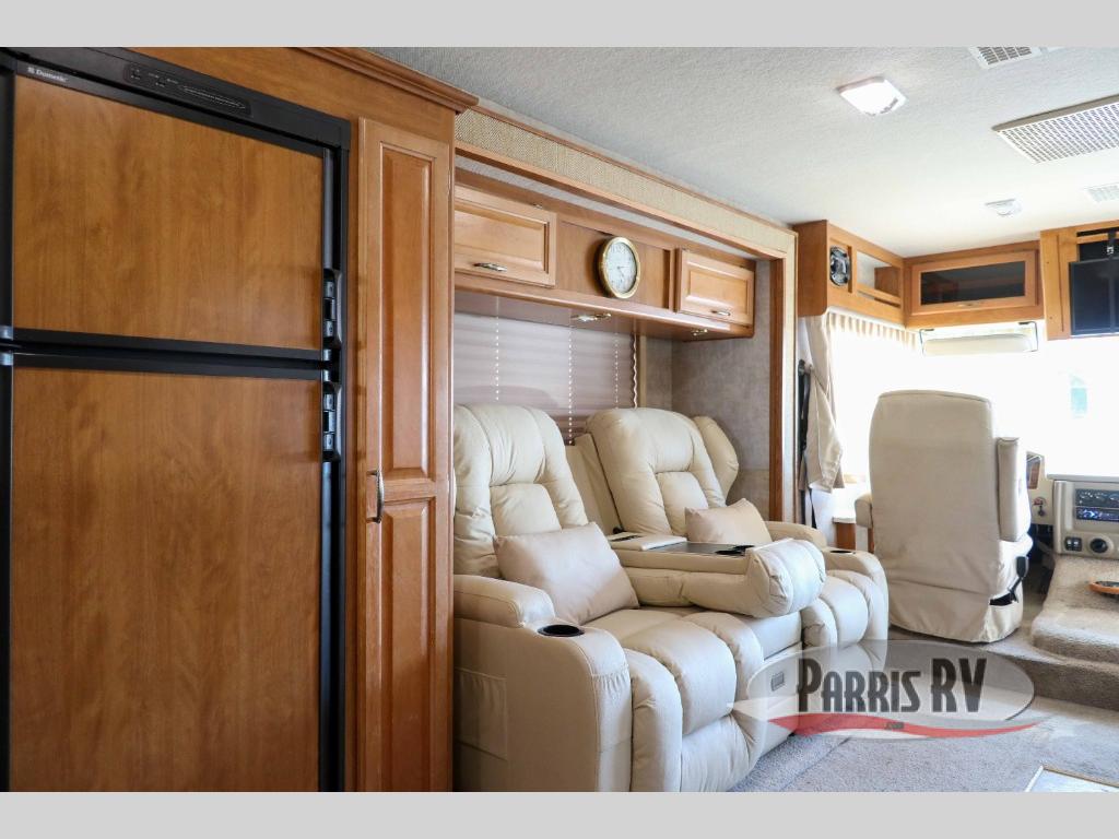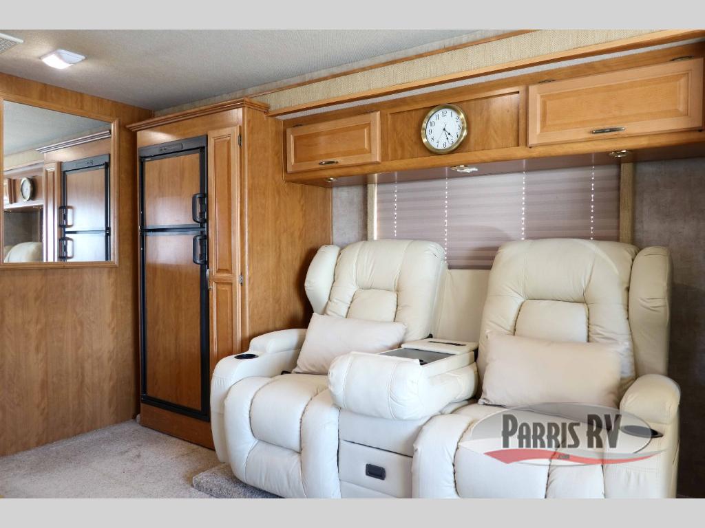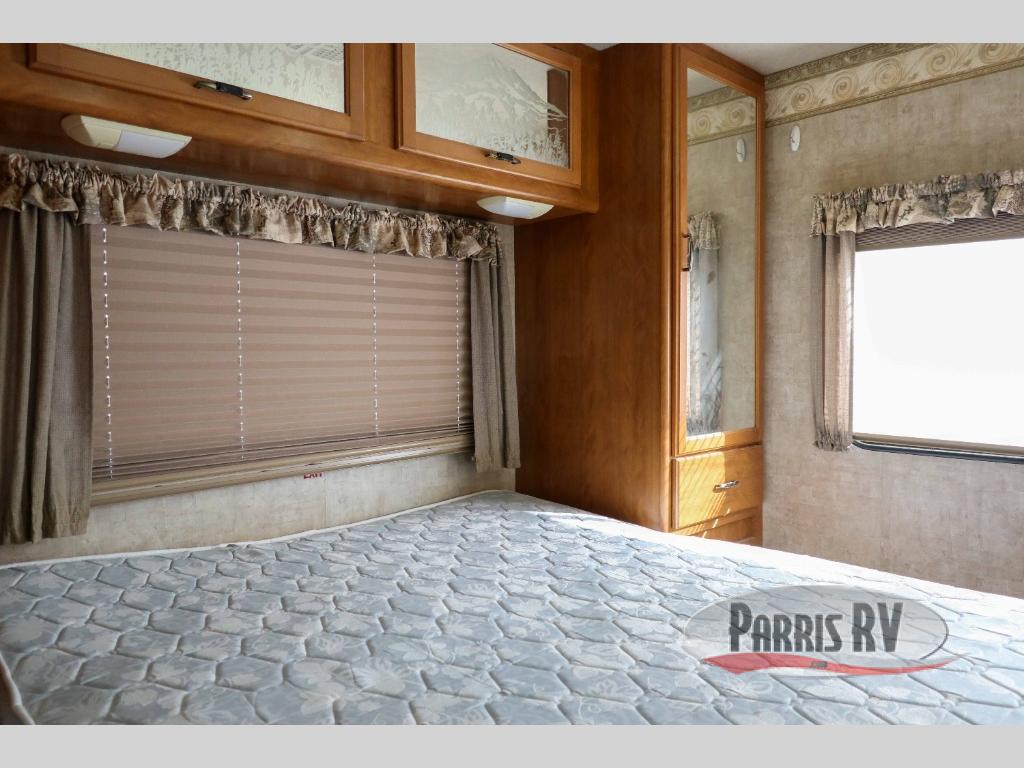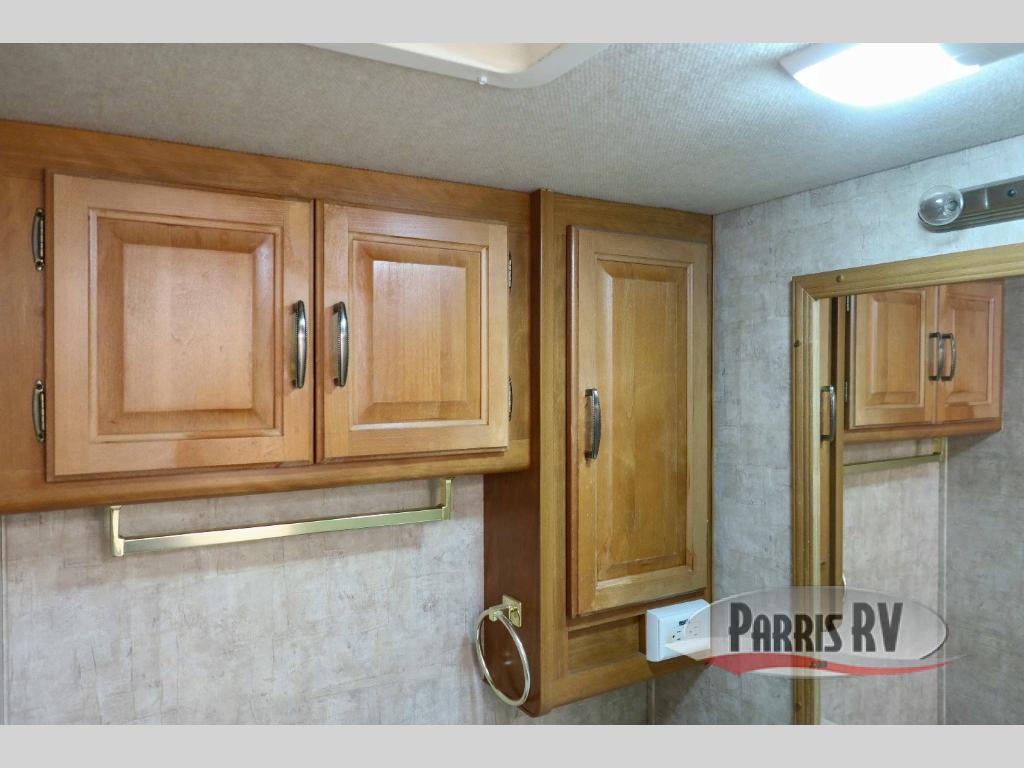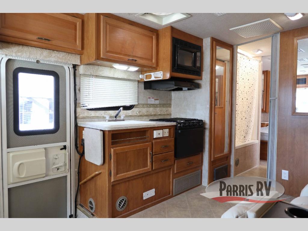 Single Slide, Rear Queen Bed w/Nightstands & Corner Shelf or Opt. Twin Beds w/Nighstand Between, Cabinet & TV Shelf, Tub/Shower, Stool Room w/Lav., Refrig. Pantry, Booth Dinette, Double Kitchen Sink, 3 Burner Range, Pantry, Overhead Cabinets, TV Above Cab Area, Eng. & Chassis Choice & Mor