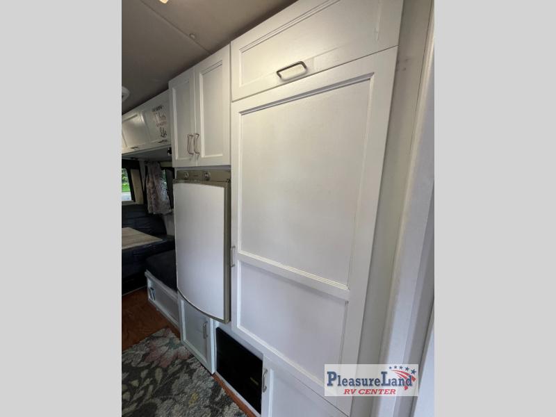 This Free Spirit class B diesel coach by Leisure Travel features a rear living layout, curved solid wood cabinetry, recessed LED lighting, and a wet bath. Not to mention that it is the most fuel efficient unit in this years lineup.