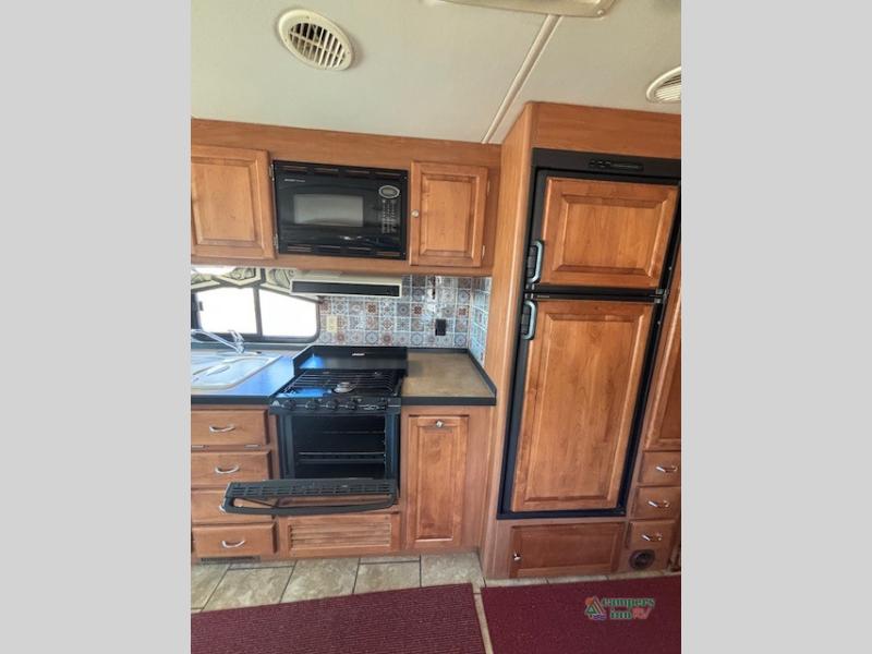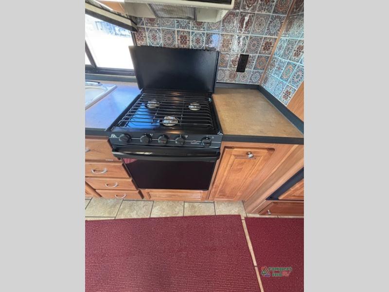 3-burner LP cooktop, oven, convection microwave, and refrigerator/freezer