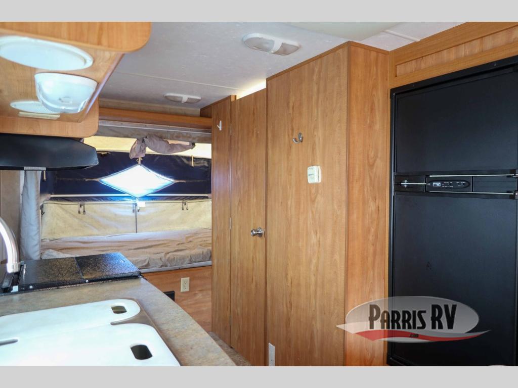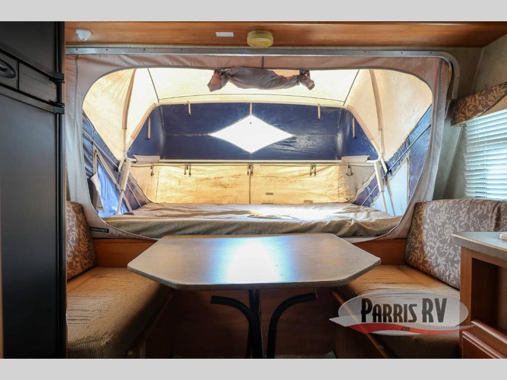 Expandable w/Rear 60" x 80" Queen Bed Tent End, Bathroom, Toilet, Sink, Tub, 3 Burner Range, Double Kitchen Sink, Refrigerator, TV Shelf, Booth Dinette, Front 60'' x 80'' Queen Bed Tent End, and More.