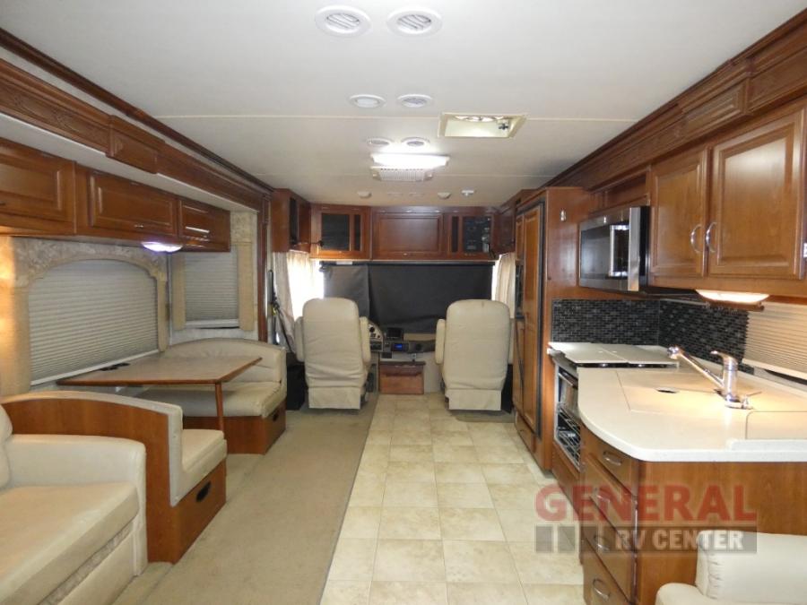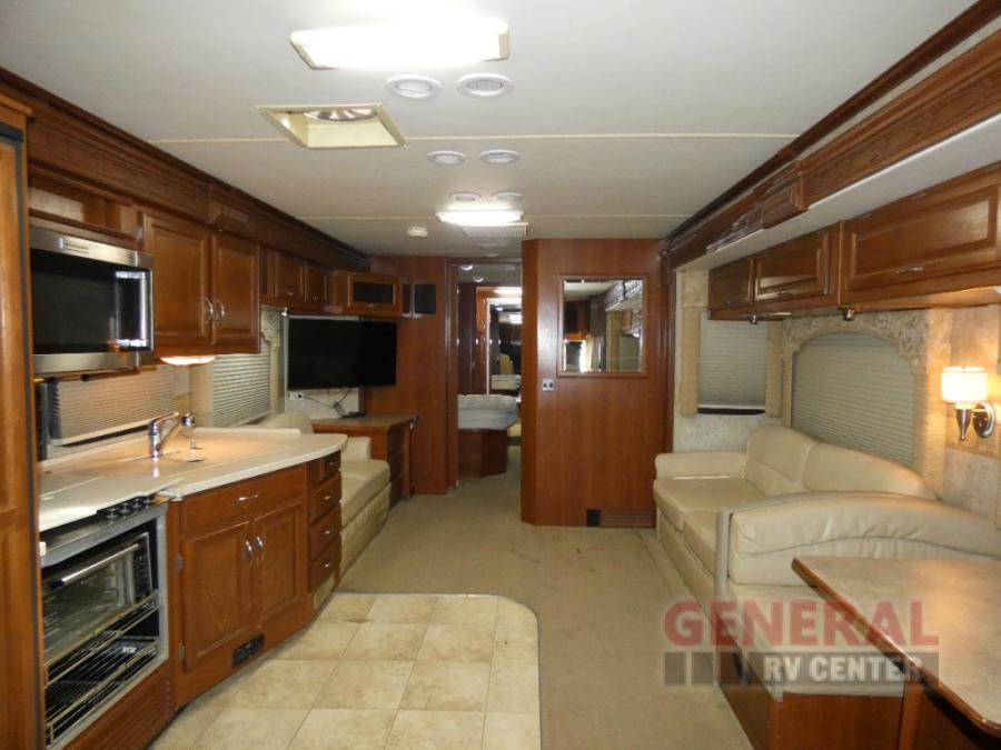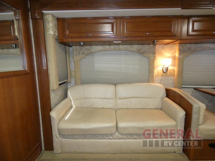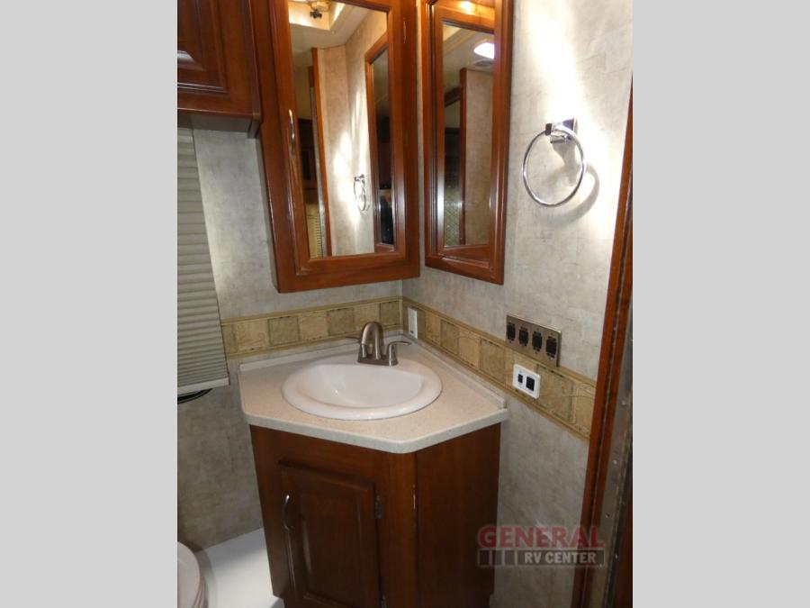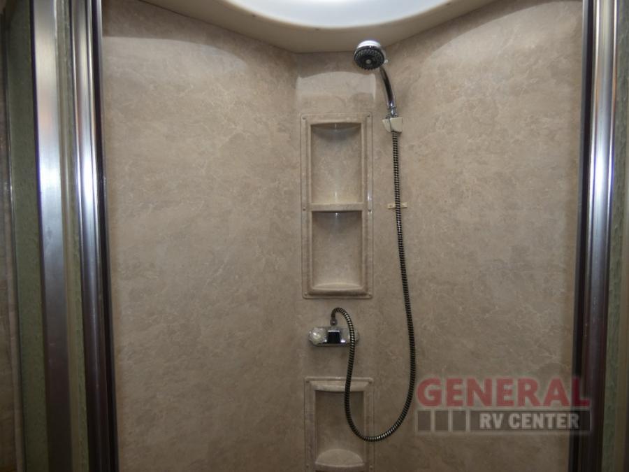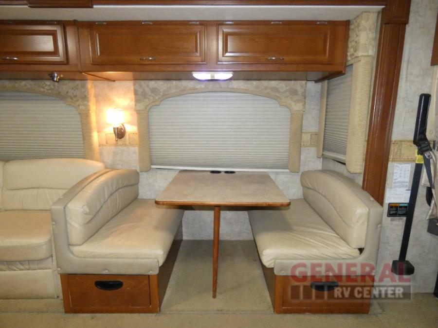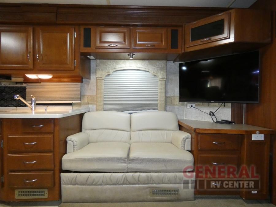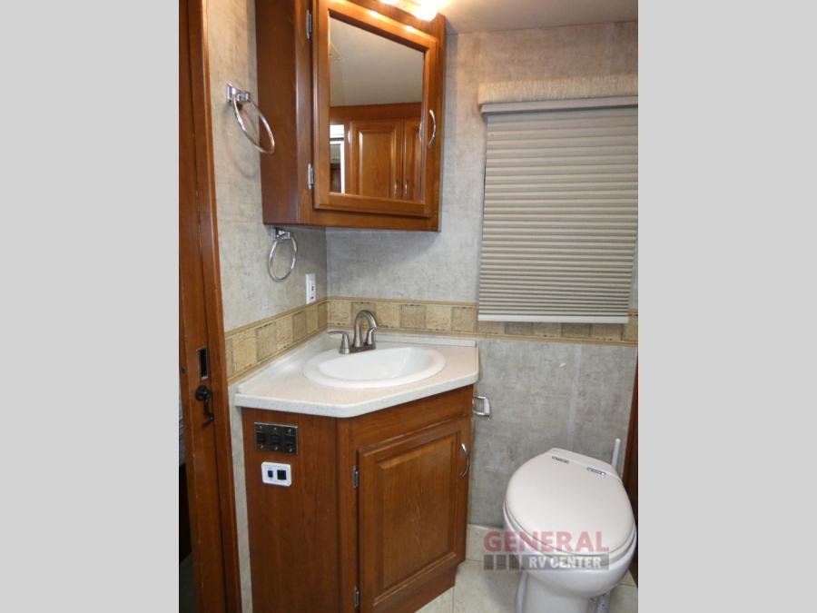 Triple Slide Class A Motor Home, Rear Bathroom w/Shower, Private Toilet Area w/Lavatory, Wardrobe, Slide Out Queen Bed, Dbl. Nightstands, Half Bath w/Toilet & Sink, Slide Out Enter. Center/Loveseat/Double Kitchen Sink/3 Burner Range/Refrigerator, Slide Out Sofa/Booth Dinette and More.