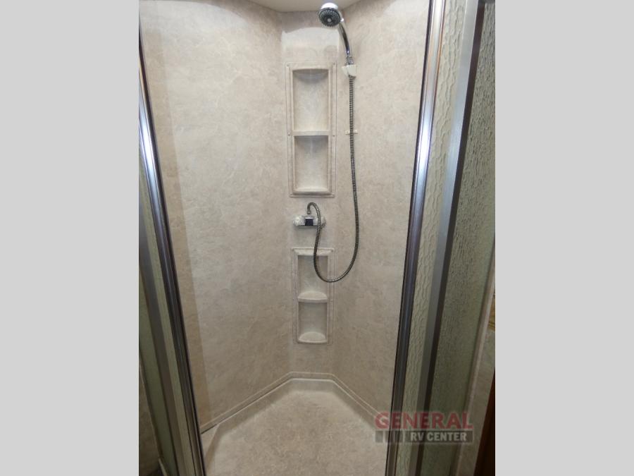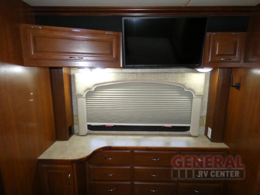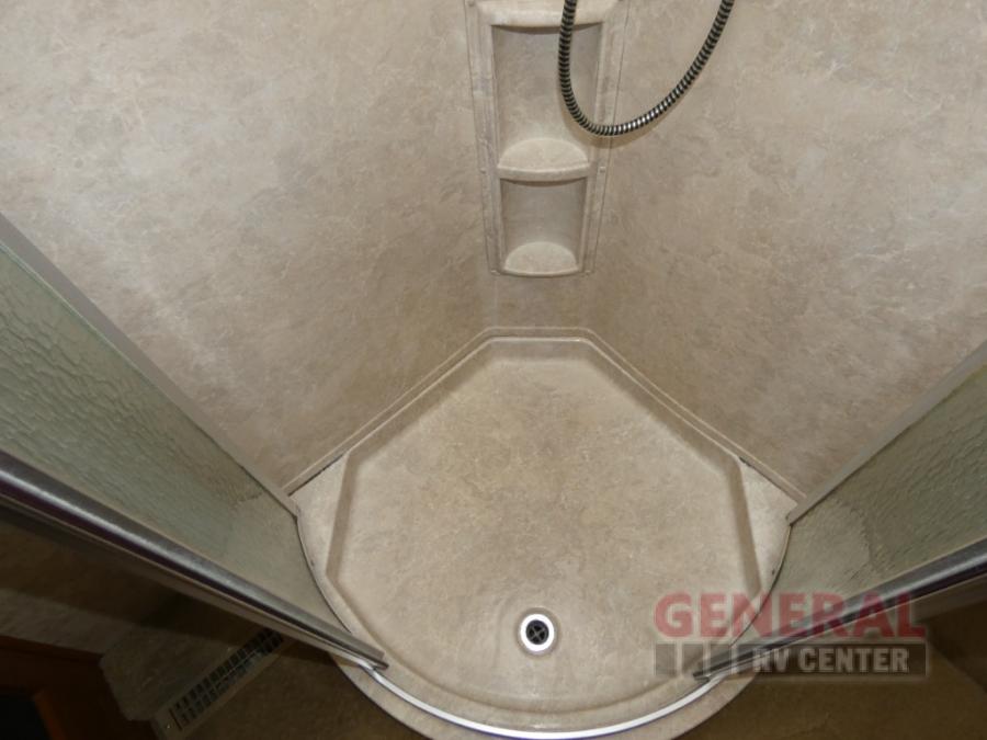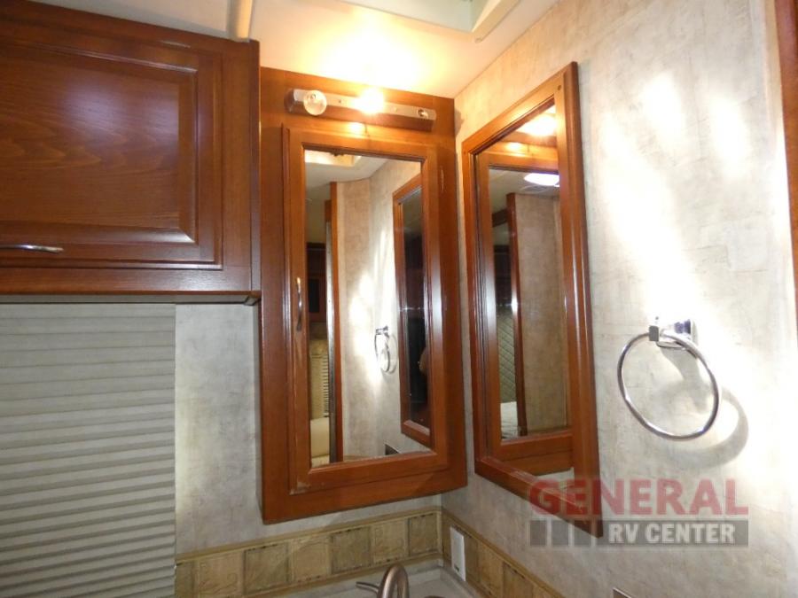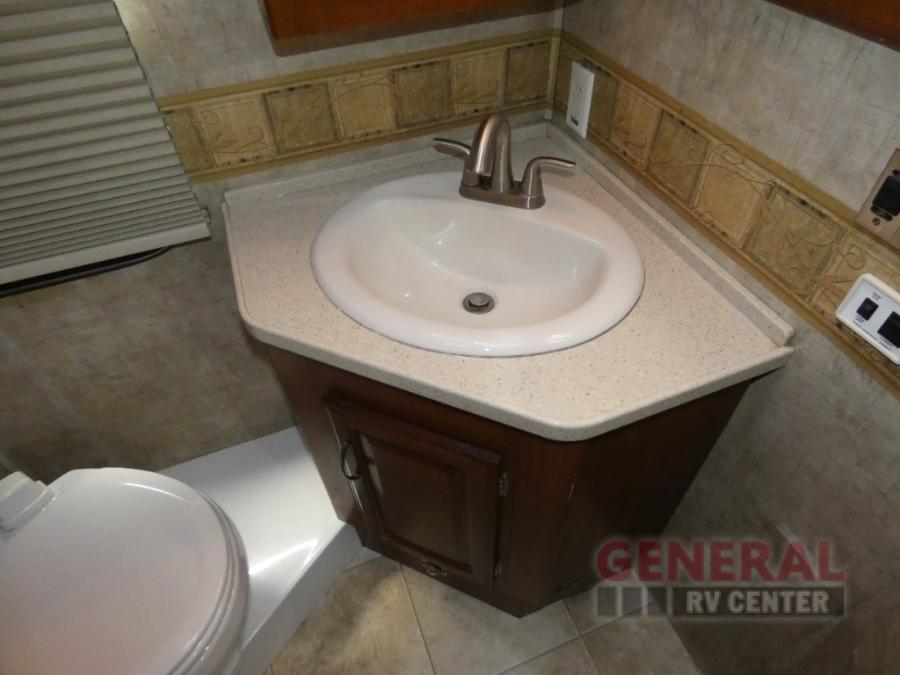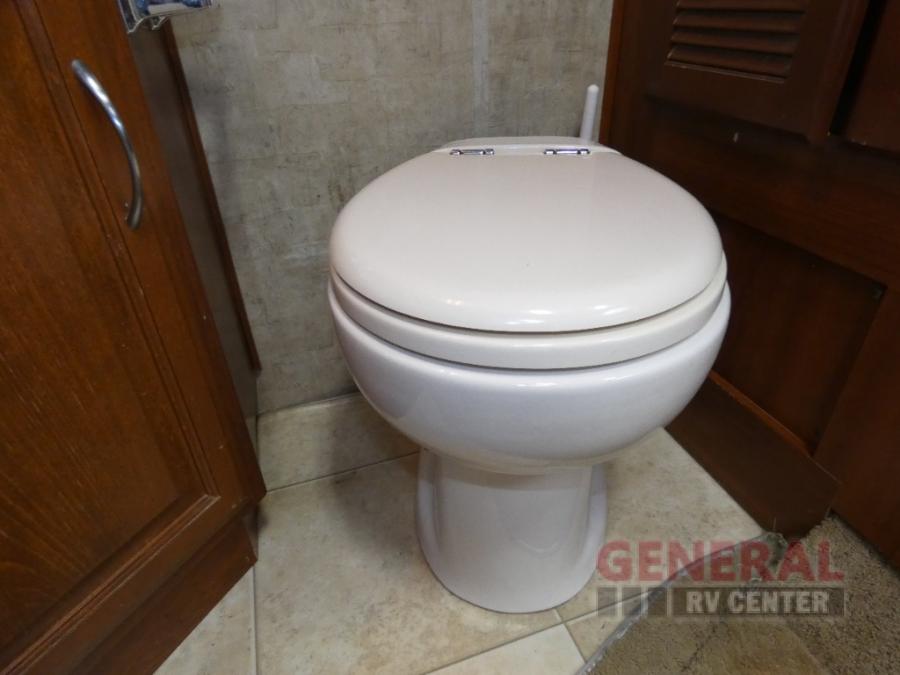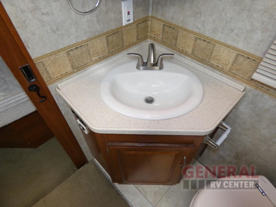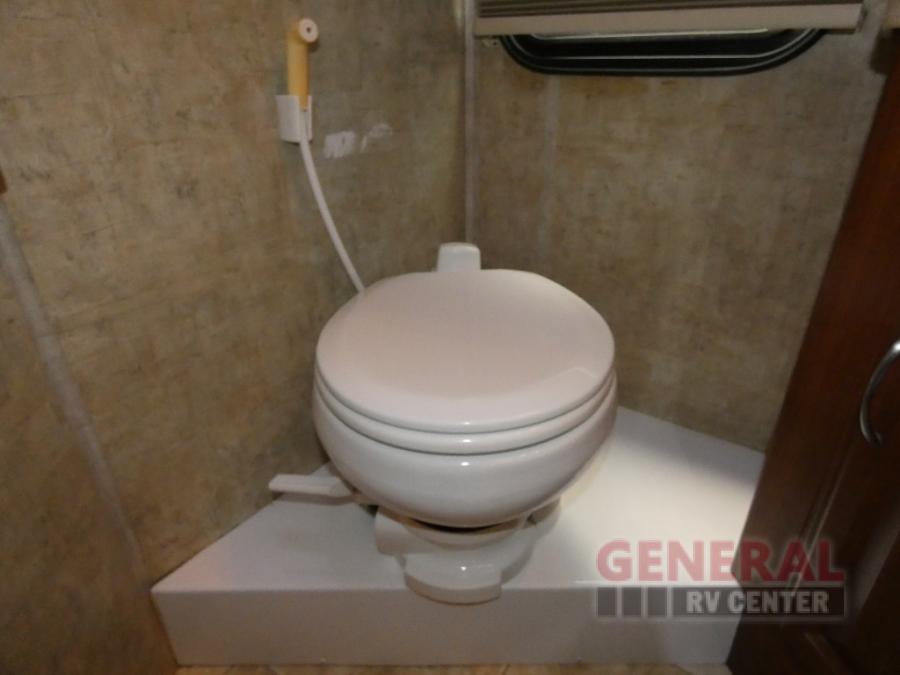 Triple Slide Class A Motor Home, Rear Bathroom w/Shower, Private Toilet Area w/Lavatory, Wardrobe, Slide Out Queen Bed, Dbl. Nightstands, Half Bath w/Toilet & Sink, Slide Out Enter. Center/Loveseat/Double Kitchen Sink/3 Burner Range/Refrigerator, Slide Out Sofa/Booth Dinette and More.