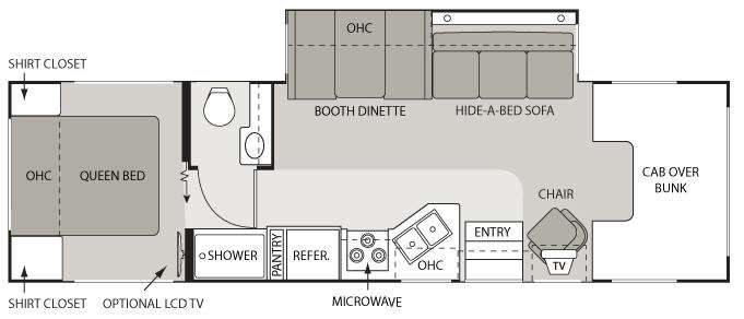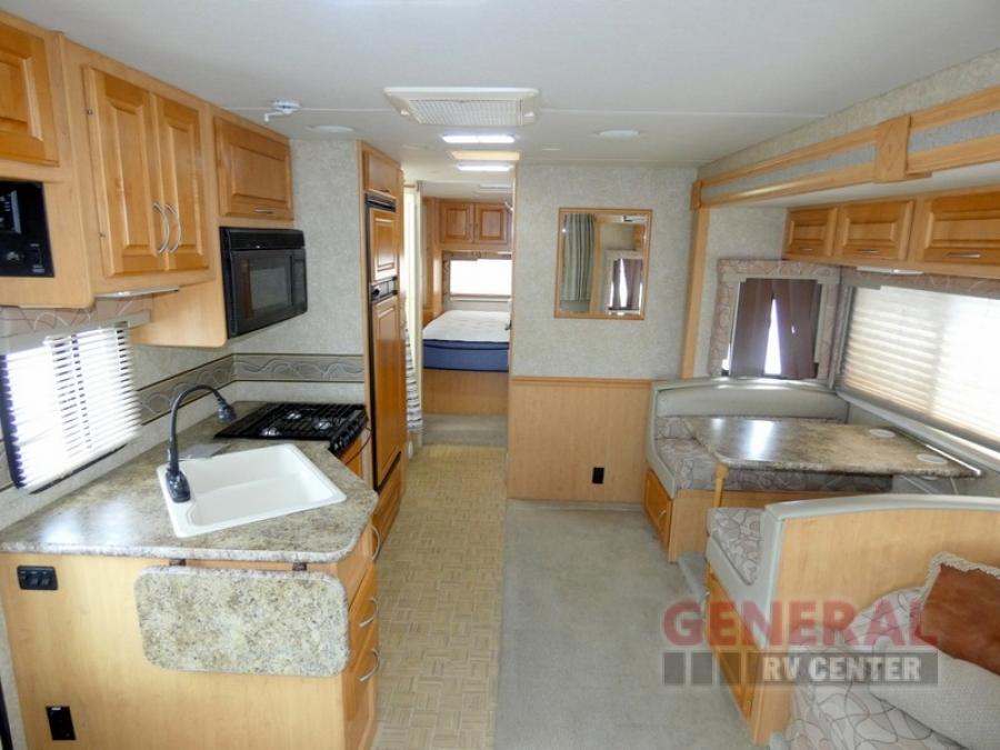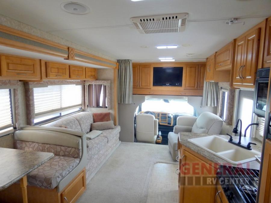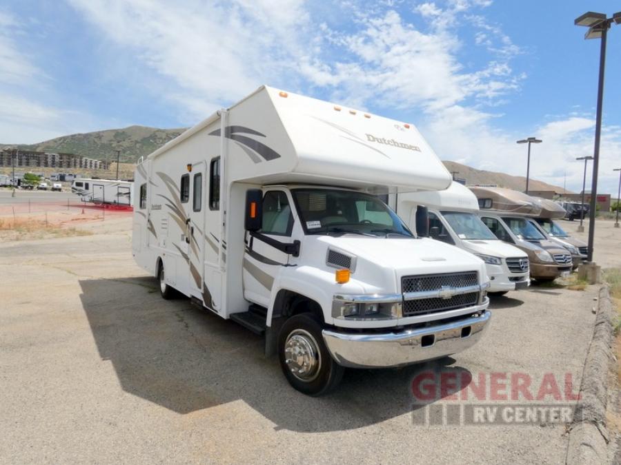 Dutchmen Kodiak Class C Coach w/Rear Queen Bed w/Shirt Closets, Private Toilet Area w/Vanity & Sink, Shower, Pantry, Refrigerator, 3 Burner Range, Microwave Oven, Double Kitchen Sink, Barrel Chair w/TV Above, Pull-Out Bunk, Hide-A-Bed Sofa & Booth Dinette Slideout, Exterior Shower and Much More.