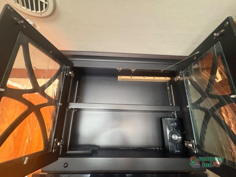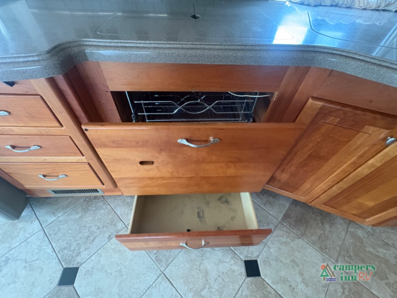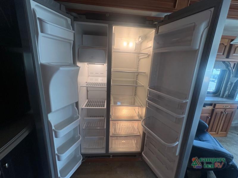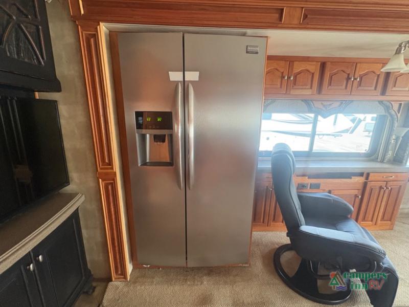 - Residential-style refrigerator with ice maker and water dispenser ensures you have fresh food and drinks on the road.