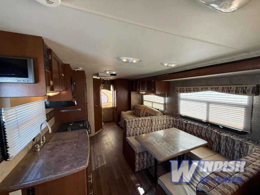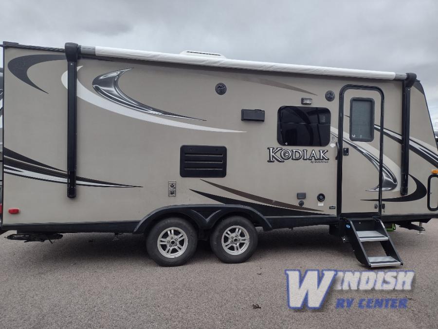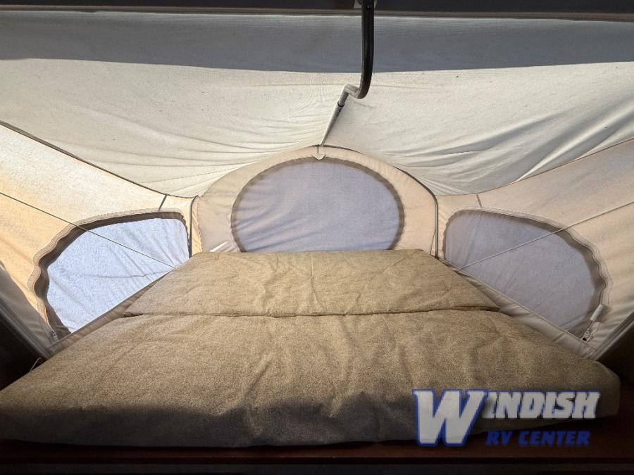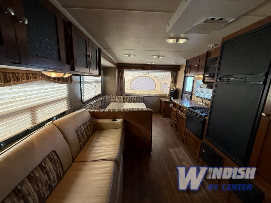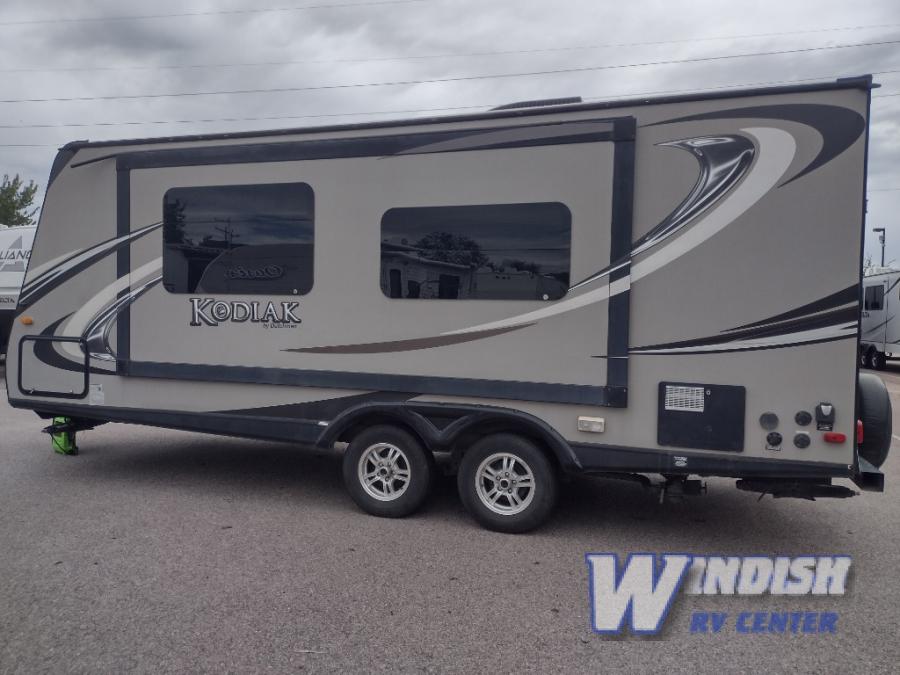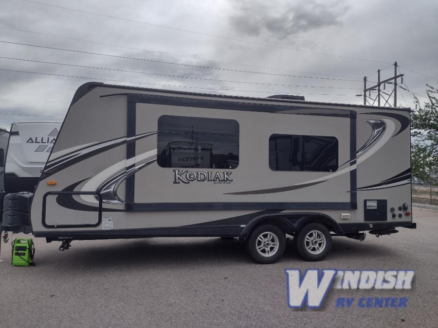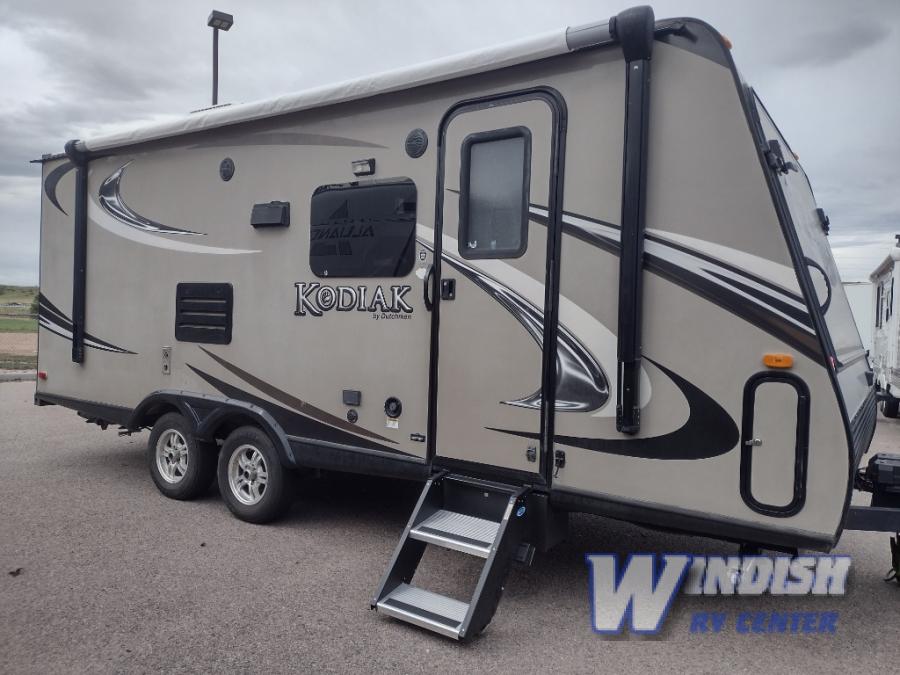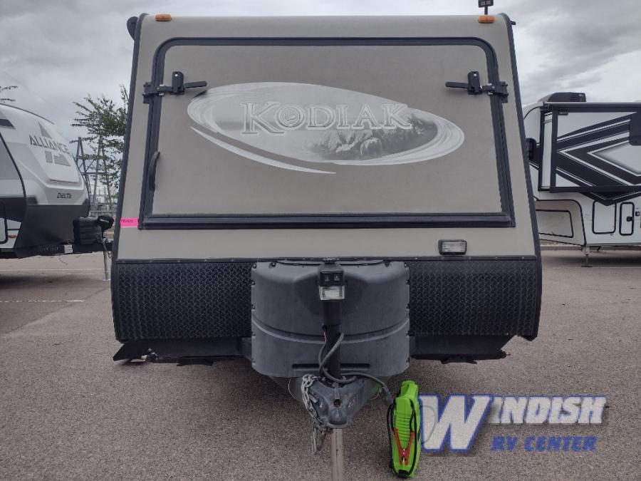 Single Slide Kodiak Expandable Travel Trailer w/Front & Rear Queen Tent End Beds w/Shelf, Bath Including Neo-Angle Shower w/Skylight, Sink w/Overhead Cab. & Toilet, Pantry, Refrigerator, 3 Burner Range, Dbl. Kitchen Sink, Wardrobe, Sofa Bed & U-Shaped Dinette Slideout, 2 Front End Tables Either Side w/TV and More!