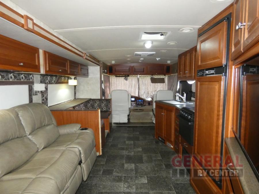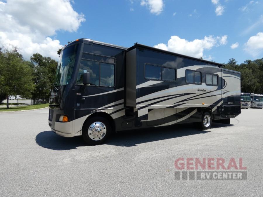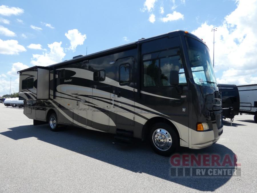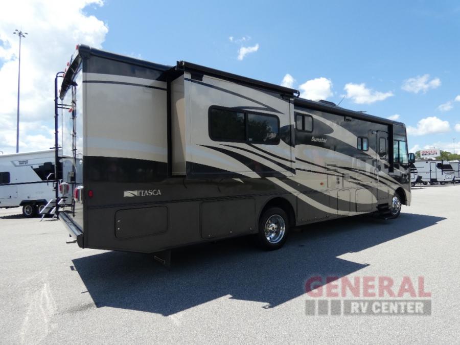 Itasca Sunstar Class A Motorhome w/1-1/2 Bath, Rear Full Bath Including Shower, Vanity w/Sink, Toilet & Overhead Cabinet, Sliding Door to Bedroom w/Slideout Queen Bed & Nightstands, Wardrobe, Chest of Drawers, 2nd Wardrobe, Sliding Door to Living Area, L-Shaped Extendable Sectional Sofa & Booth Dinette Slide, 1/2 Bath, 32" LCD TV, Refrig., 3 Burner Range, Dbl. Kitchen Sink and Much Much More!