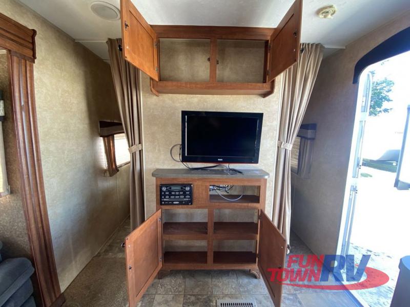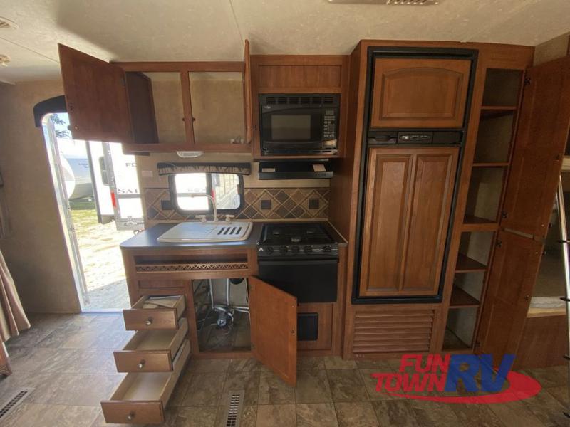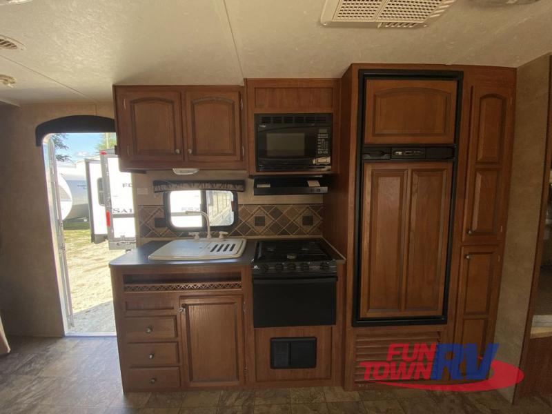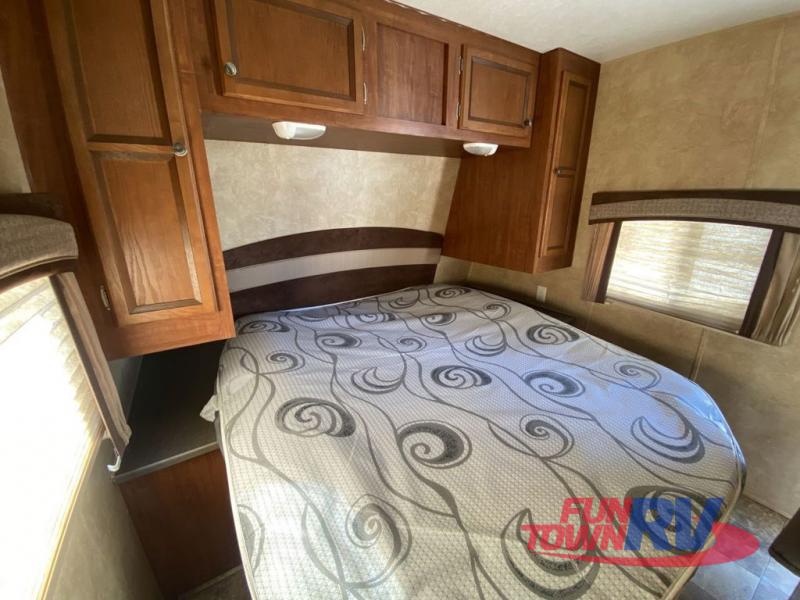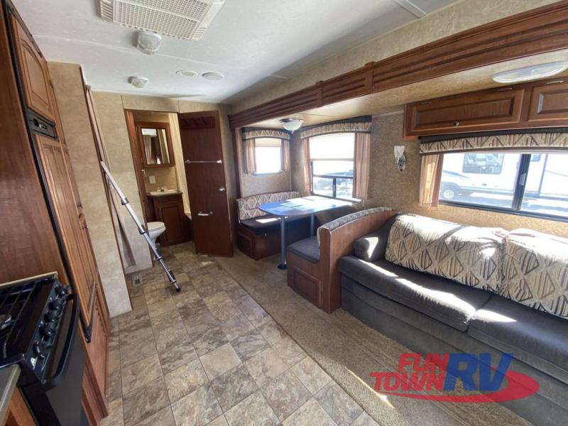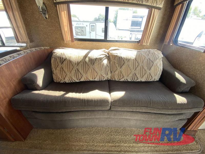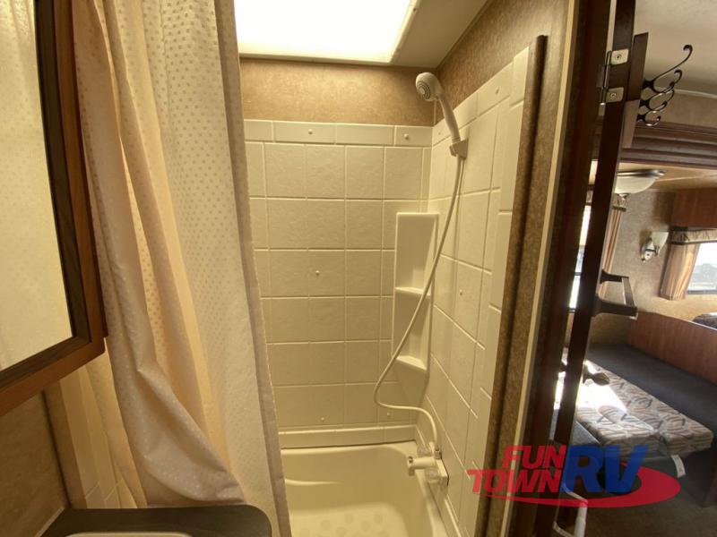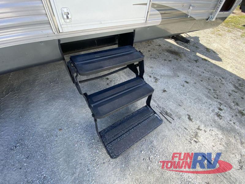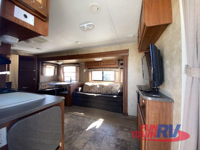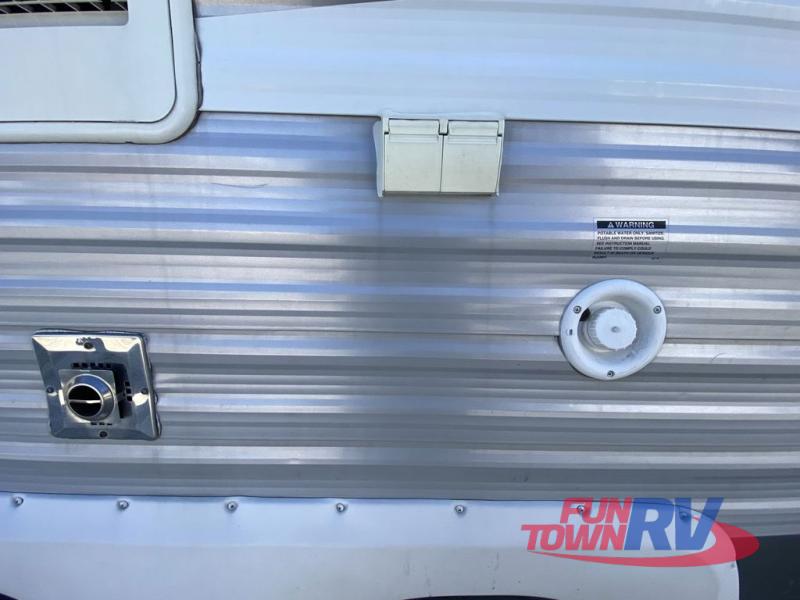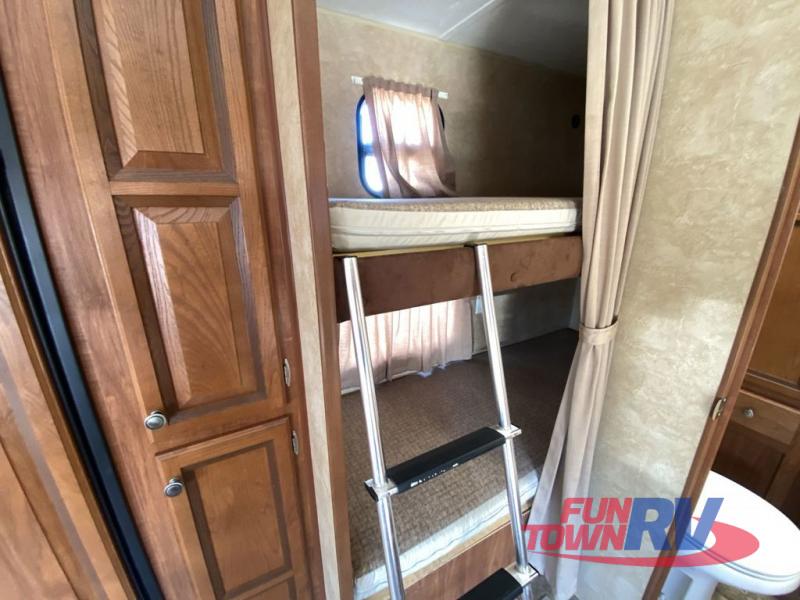 Single Slide Jay Flight, Rear Bathroom, Tub/Shower, Lav, Med. Cab., Toilet, Bunk Beds, Pantry, Refrigerator, Microwave, 3 Burner Range, Double Kitchen Sink, Flip Up Shelf, Slideout Booth Dinette/J-Steel Sofa, Ent. Center, Front Bedroom w/Queen Bed, Dbl. Wardrobes, Pass Thru Storage, 16' Awning and More. Available Options May Include: Free-Standing Table & Chairs, Hide-A-Bed.