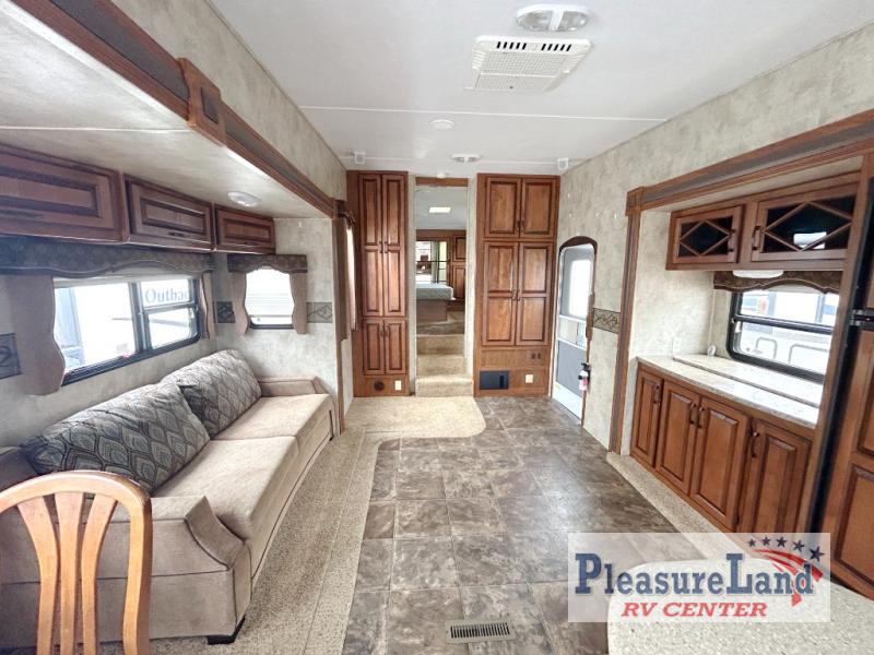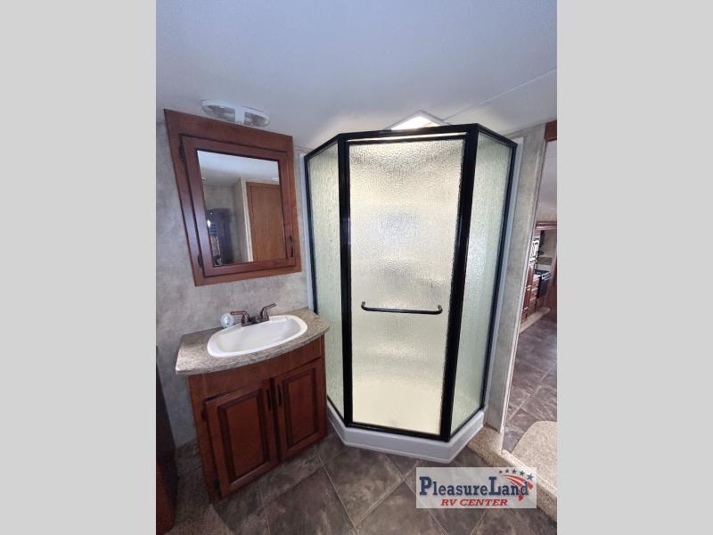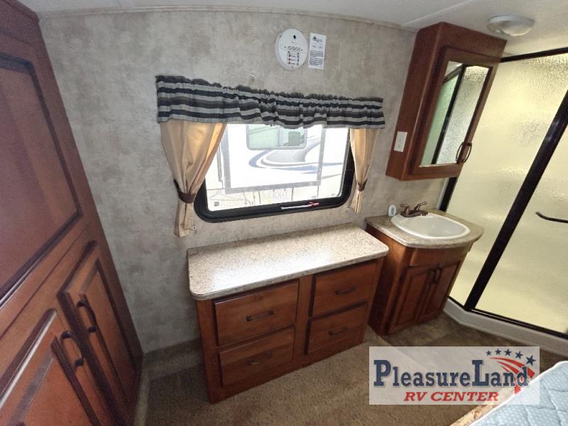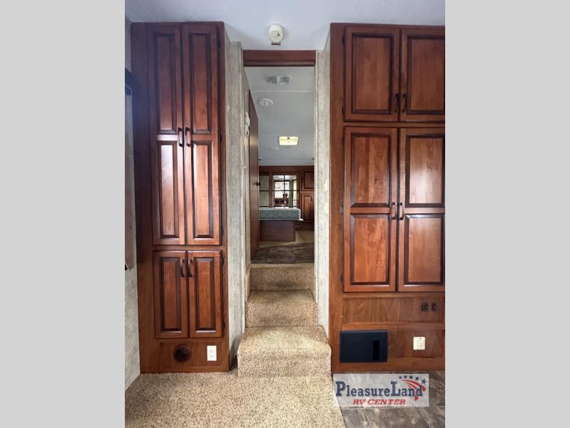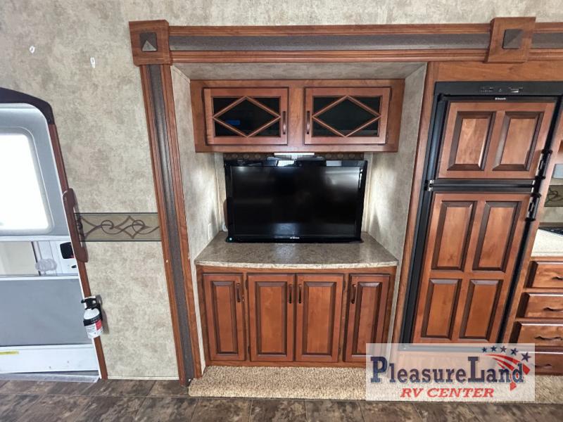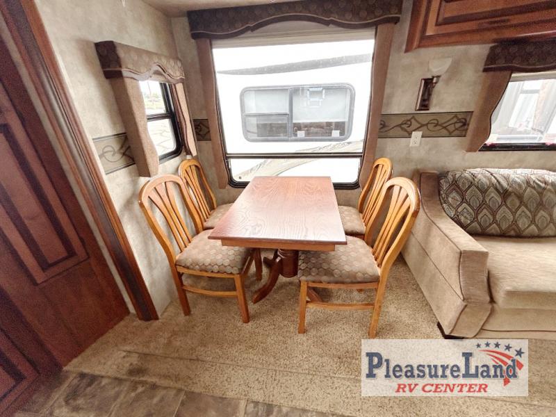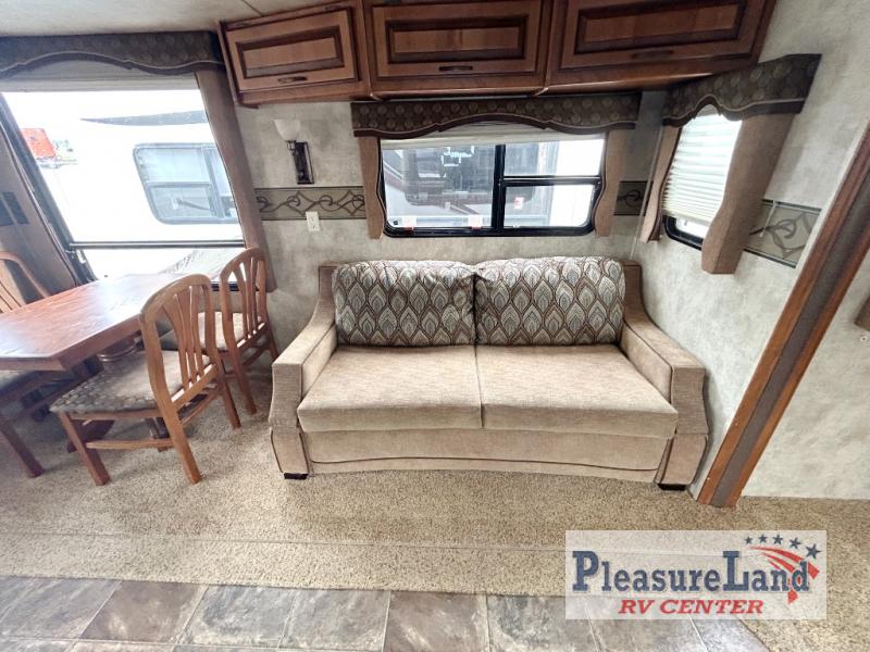Keystone Laredo FW w/Rear Kitchen Including: 2 Pantry's, Dbl. Kitchen Sink, Overhead Storage, Kitchen Island, 3 Burner Range/Refrigerator & Ent. Center w/Overhead Storage Slideout, Free Standing Dinette & Air Mattress Sofa Sleeper Slide, Lounge Chair, Shelves, Ent. Center, Step Up to Bed & Bath w/Private Toilet Area, Angle Shower, Sink, Dresser, TV/Wardrobe, Master Closets w/Sliding Doors & Queen Bed Slide and More!